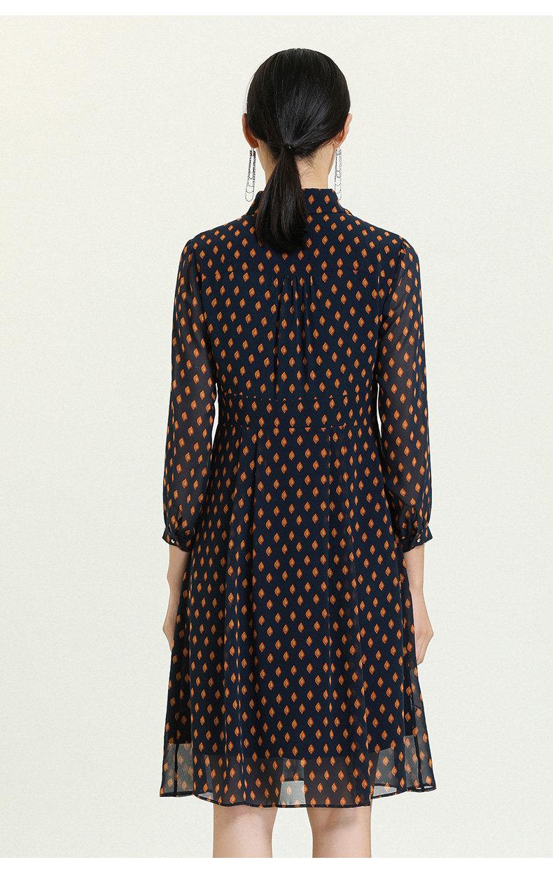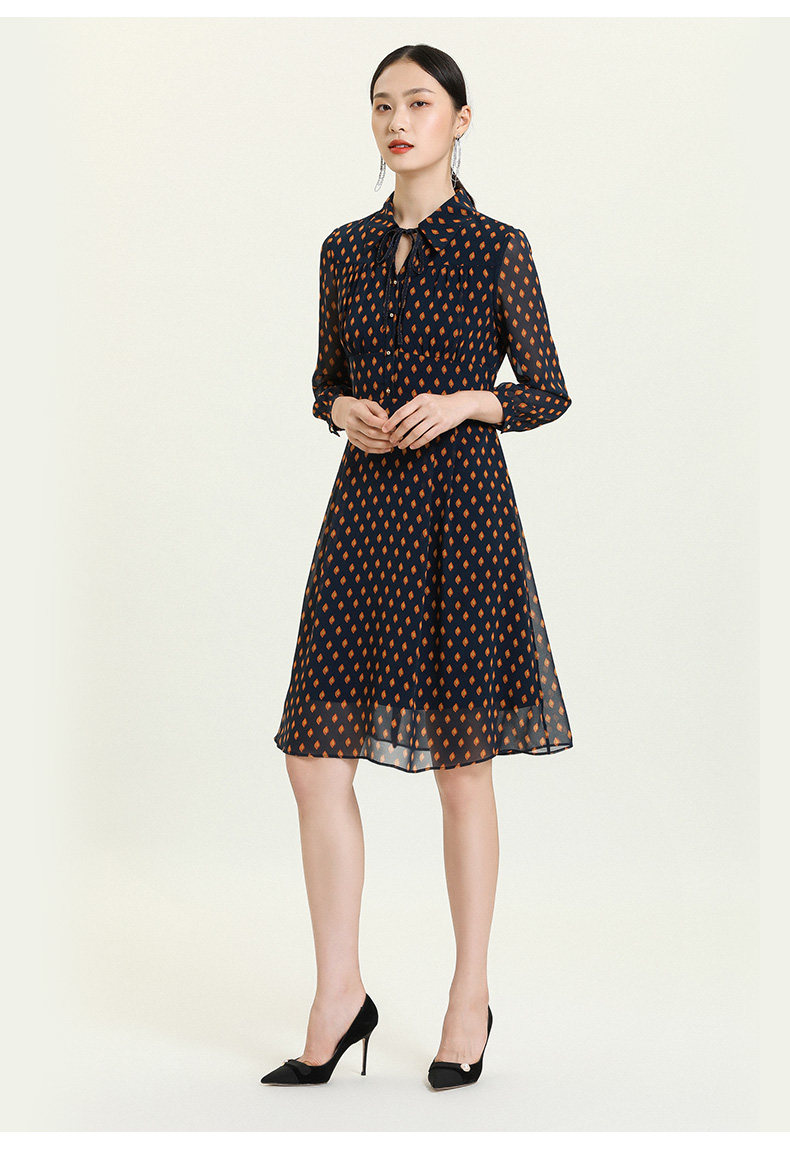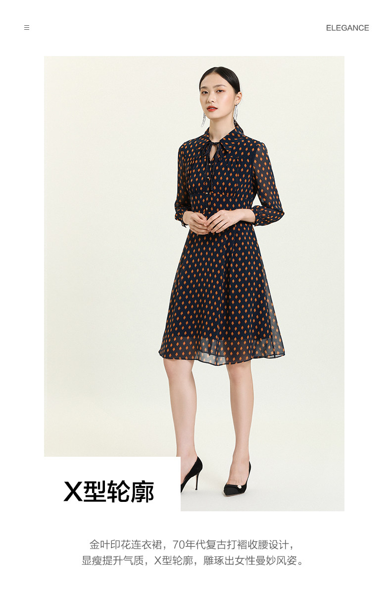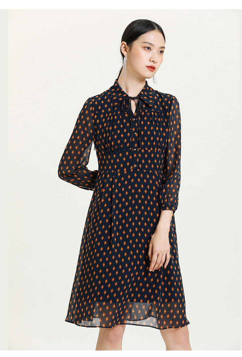 乔万尼新款秋装长袖高腰气质通勤收腰显瘦时尚系带连衣裙女ES3E500