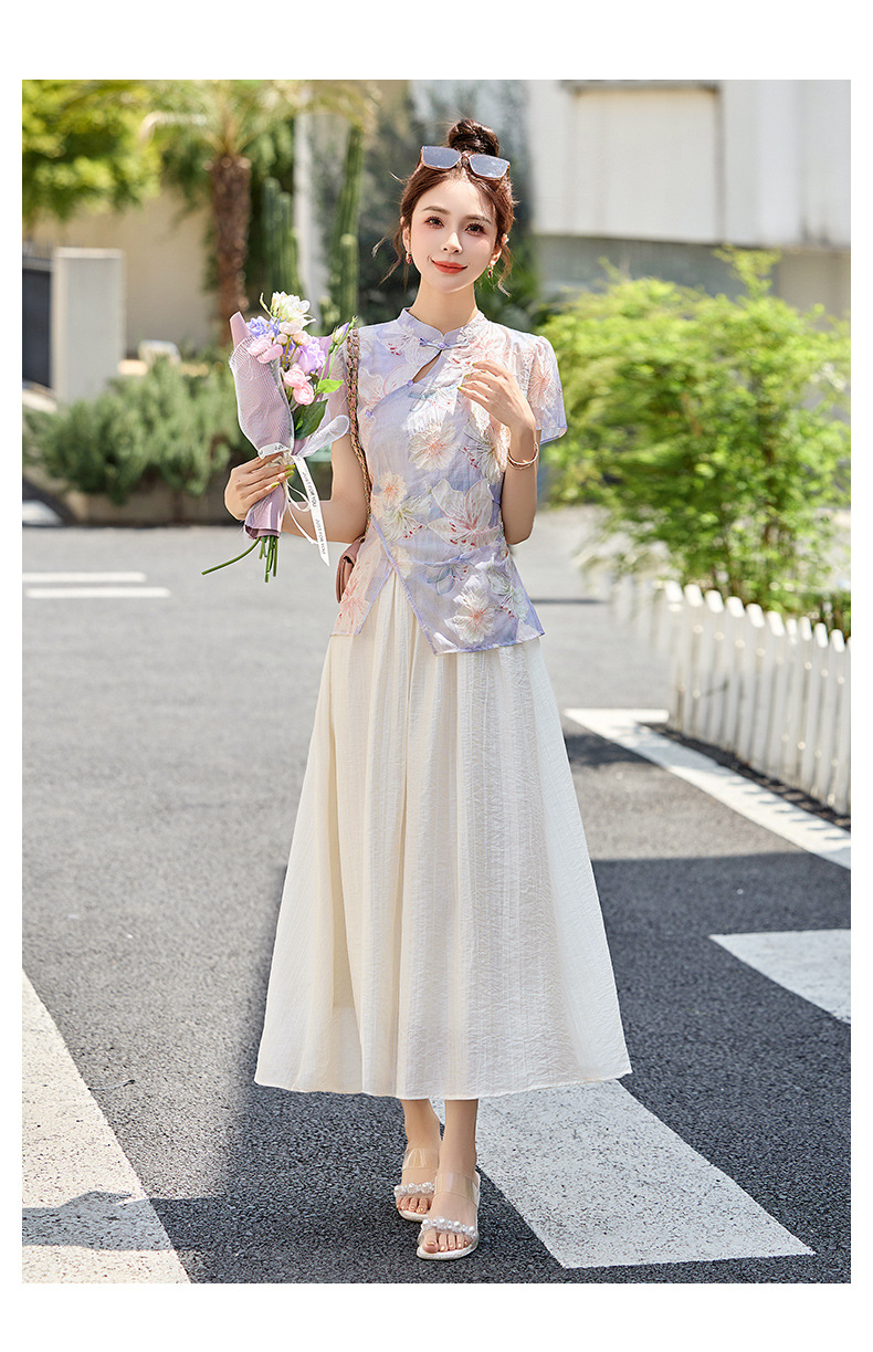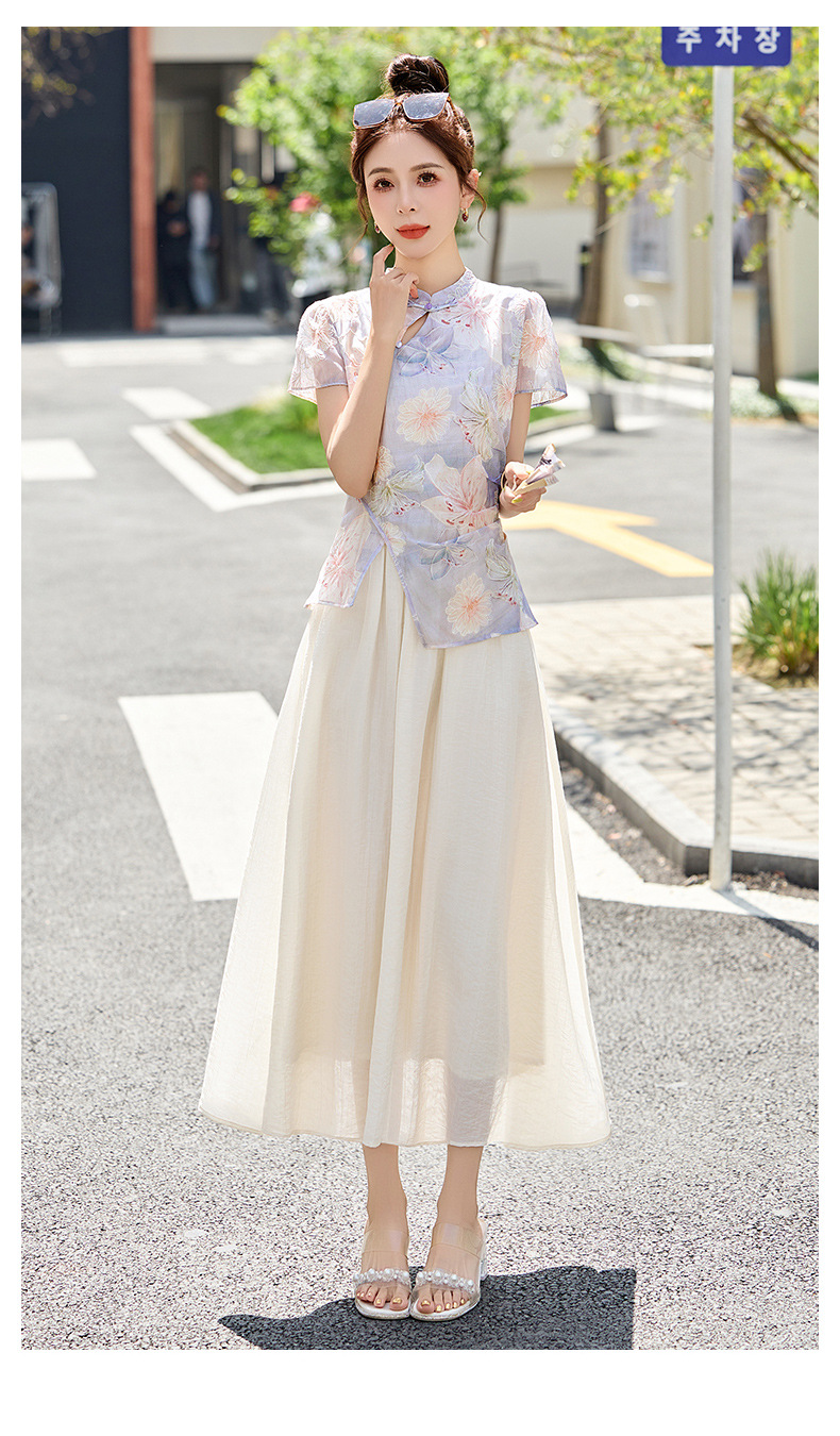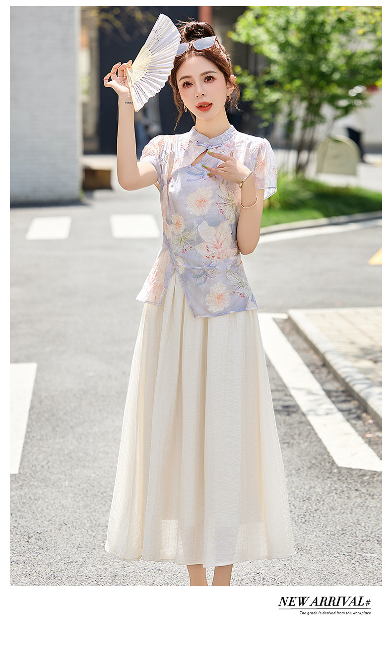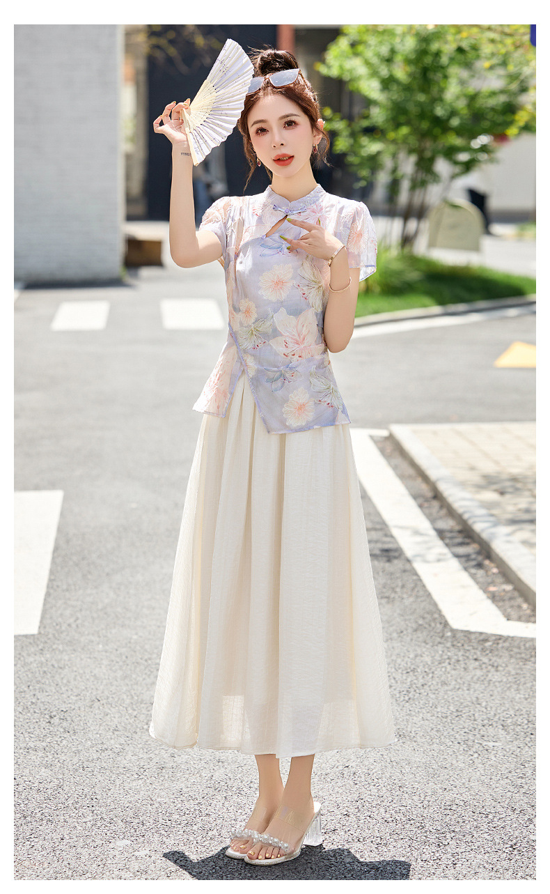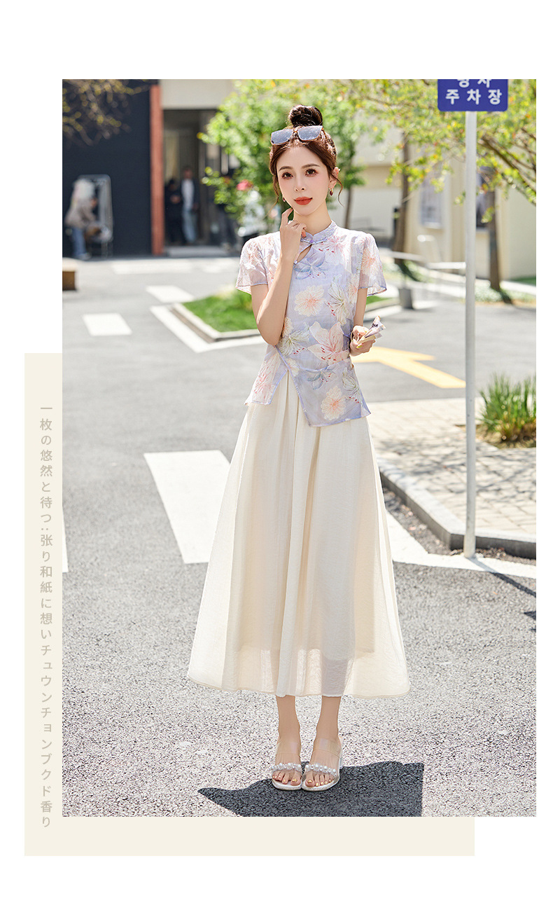新中式风禅意复古,盘扣上衣碎花半身裙HR-BBL2559