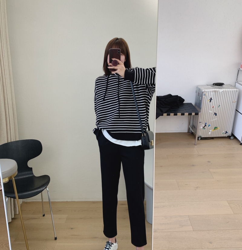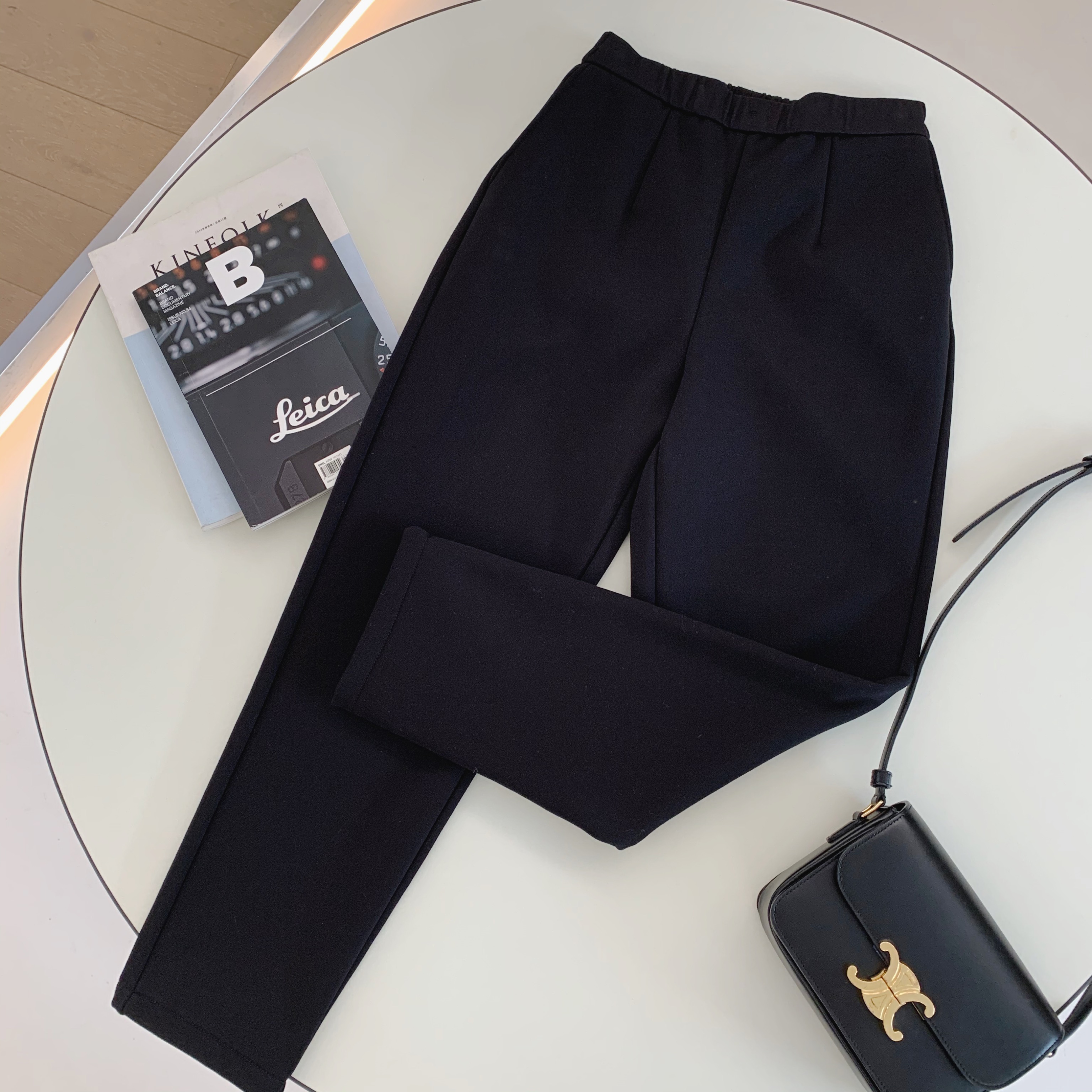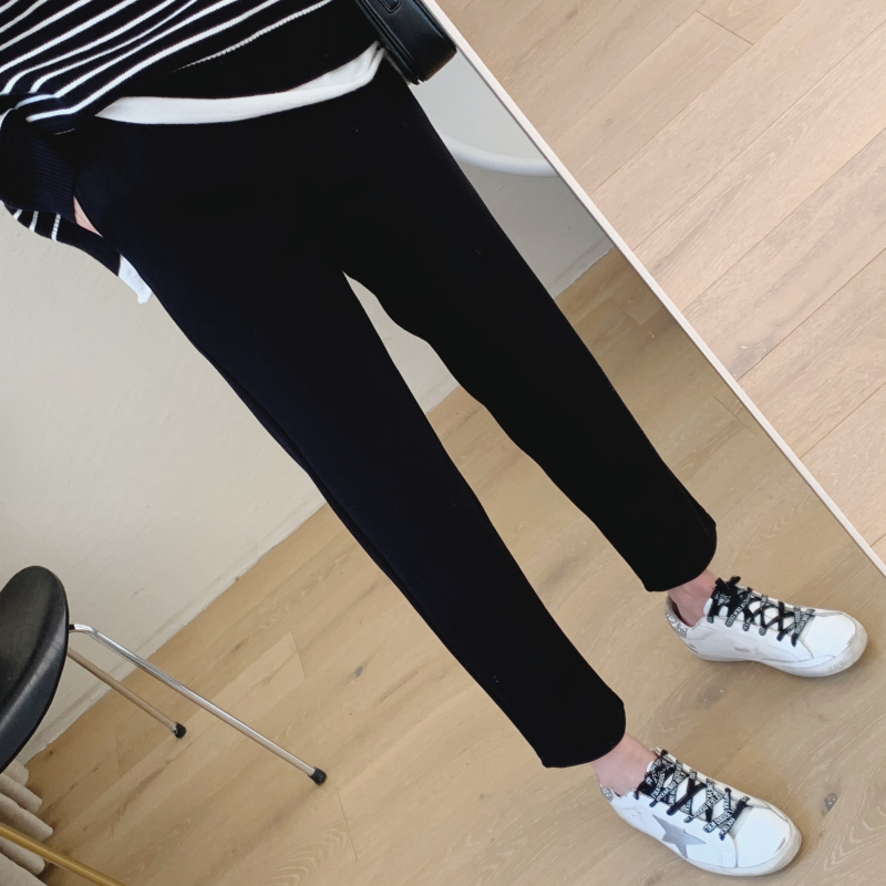 中高腰的很舒服哦炒鸡显瘦的裤子,修身的小直筒版型,上身效果很赞,敲显瘦啊,而且可以把腿部线条修饰的很好,又长又直~整条裤子的剪裁很到位,修饰腿型又显瘦,腰部松紧腰的设计配上中高腰的版型,可以分分钟拉长腿部比例,穿脱也方便,适合更多人群,前片捏省设计给臀部留有余量,很好的修饰胯大和小肚子大的问题,藏肉小能手名不虚传