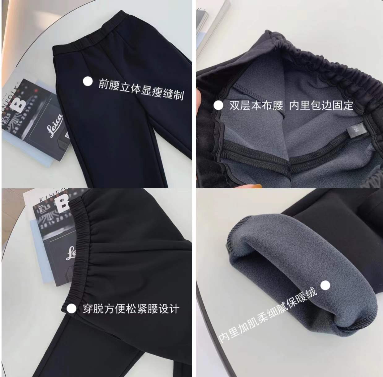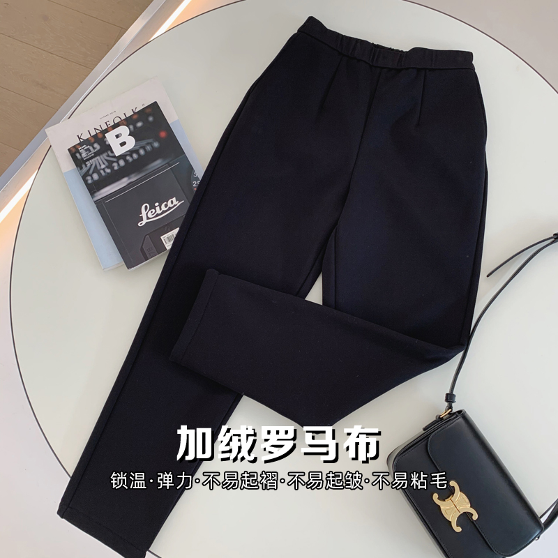 王炸品质的那种罗马布,有穿过这个面料的老粉都知道,有多优秀不是我一个人说了算的,这款内里加绒的方便冬天怕冷的姑娘们,这次是做的有点小直筒的版型,更减龄,年龄跨度更大,主要是显瘦 修饰腿型。有口袋 还有假的前门。松紧腰的 非常不挑人,简约通勤的休闲烟管裤版型修饰腿型,立体剪裁利落显瘦,定制面料的髙织加绒罗马布大家都知道哈,就是有点滑滑的那种,上身没有任何臃肿感,面料伸缩性超好,不变形不起球不勾丝不缩水不易粘毛不易起辙又弹性很大,内里加了很是亲肤的绒绒,保暖锁温的同时不易掉毛的那种,保暖防寒效果好到没话讲,持久锁住热量有效抵御寒风入侵,在寒冷的冬天添加一丝暖意,总之这款定制面料就是要解决这些难题。