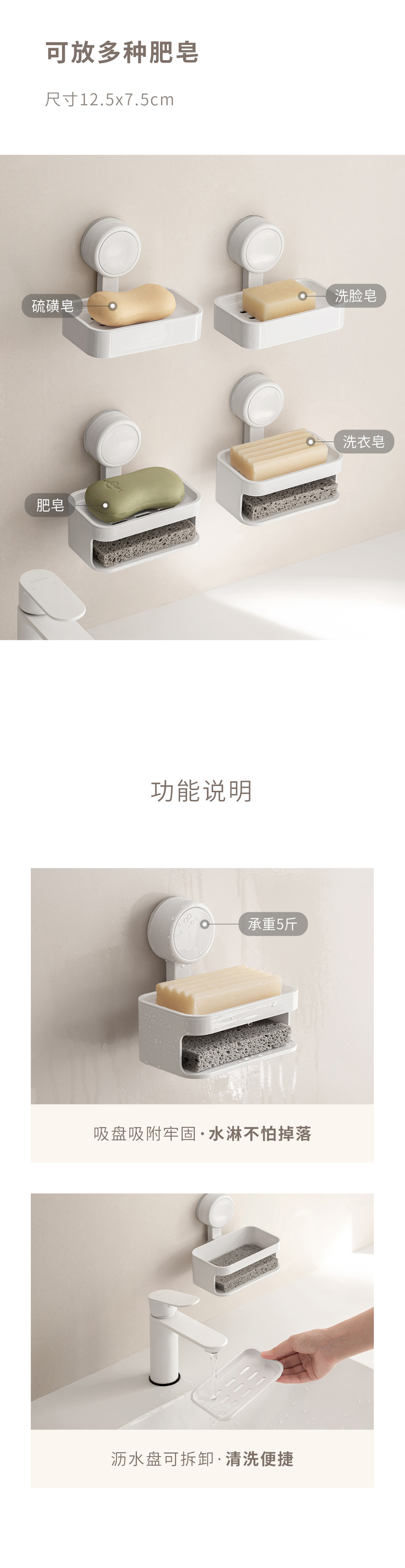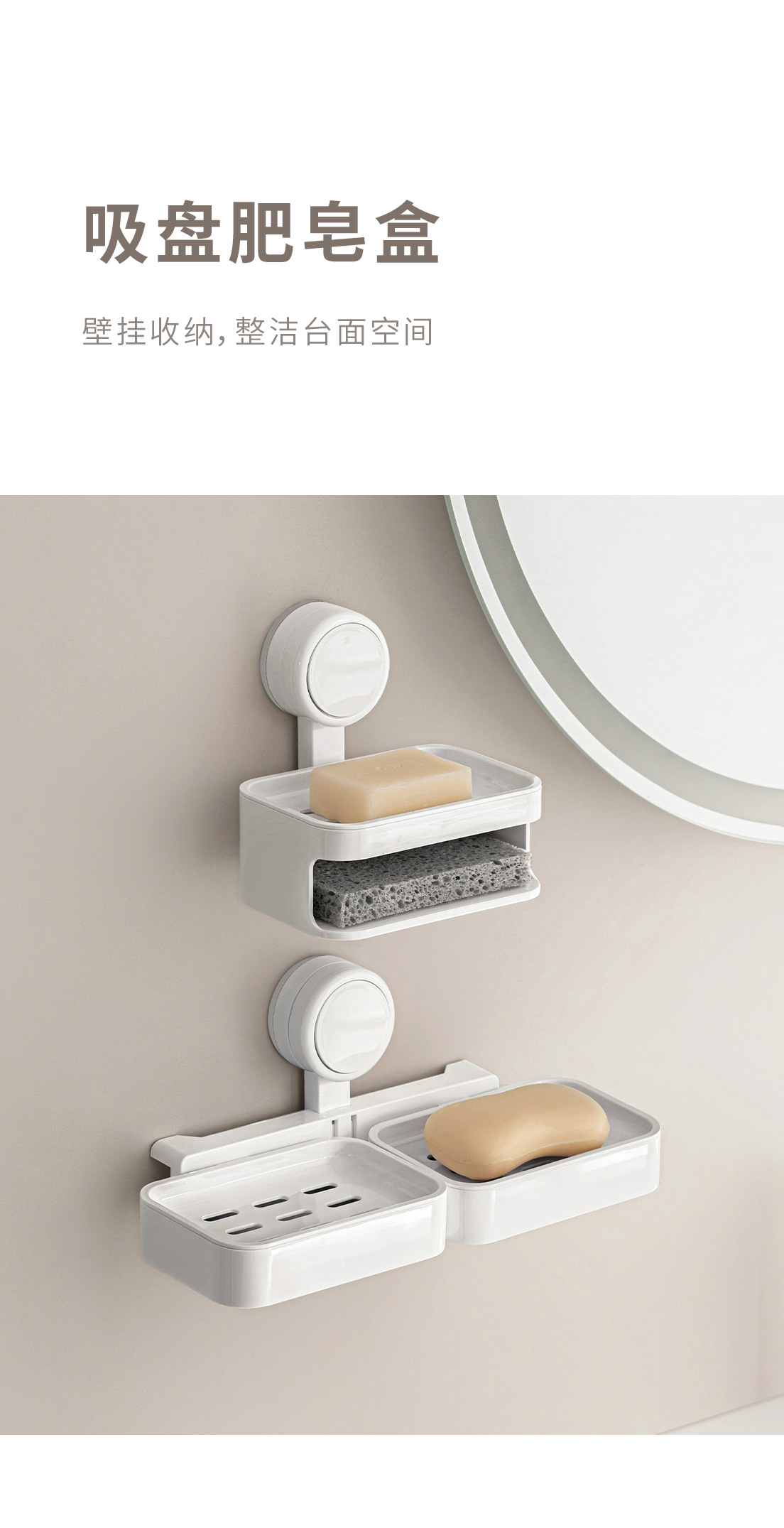 懒角落肥皂盒壁挂式香皂吸盘置物架免打孔沥水收纳浴室2025新款