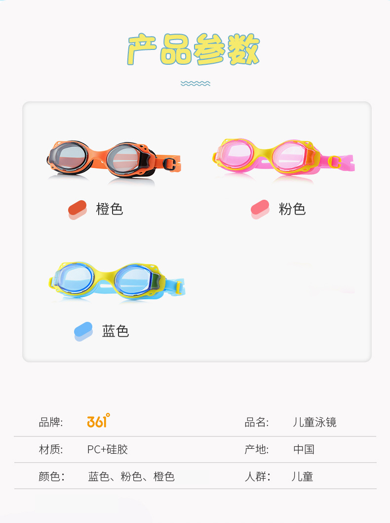 测评优品-361度儿童泳镜 男女童 防雾高清 专业游泳 柔软贴合 教练推荐 防渗水防晒