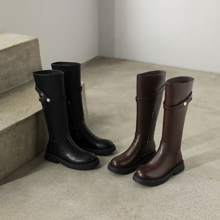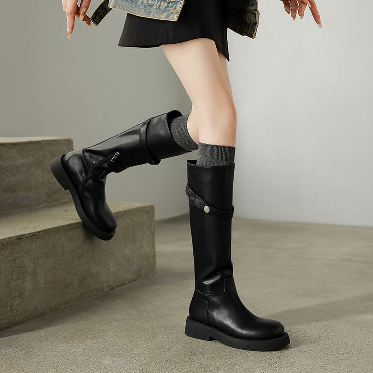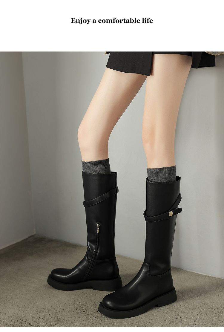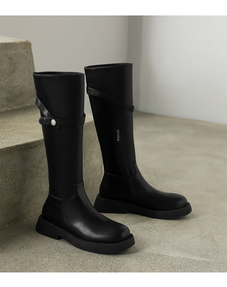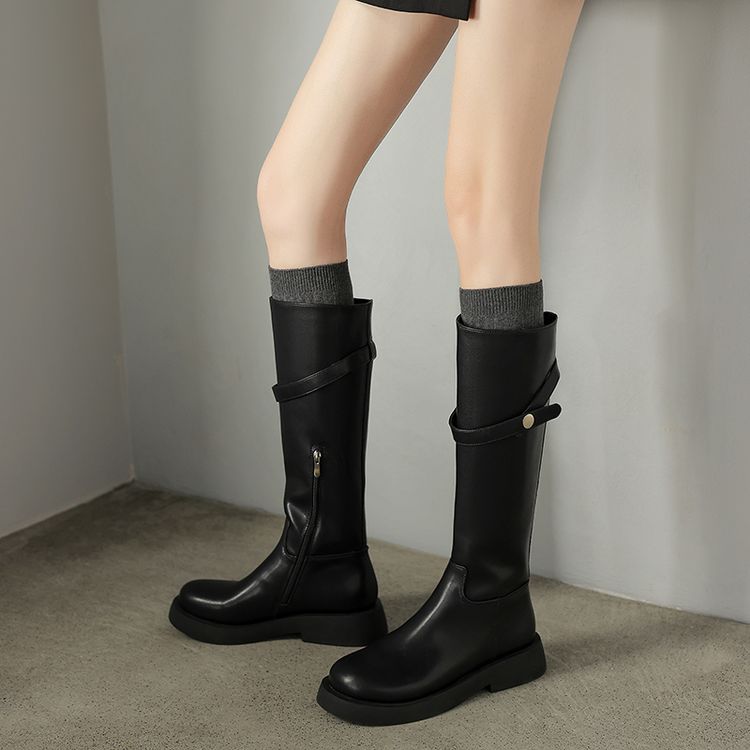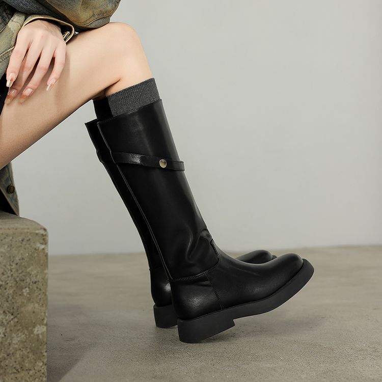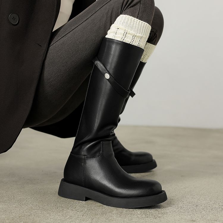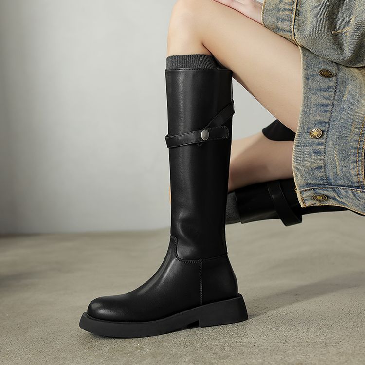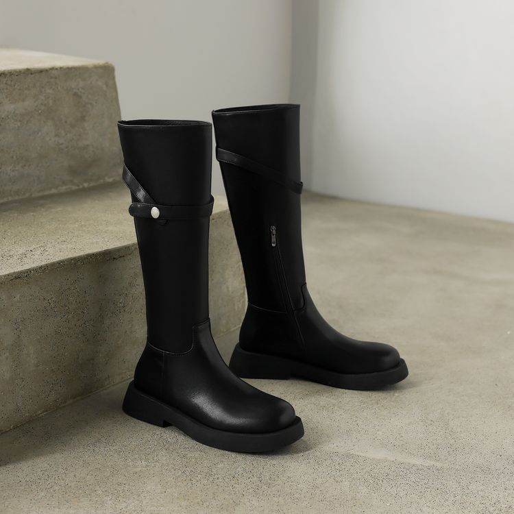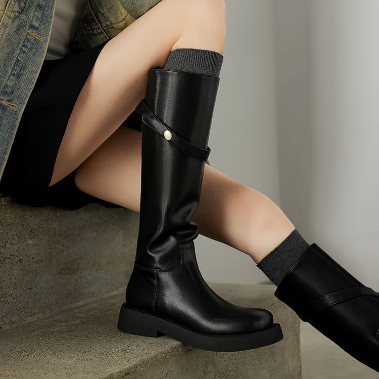 【预售7天】粗跟圆头厚底骑士靴女秋冬新款直筒靴英伦风皮带扣长靴不过膝MX&mx88732