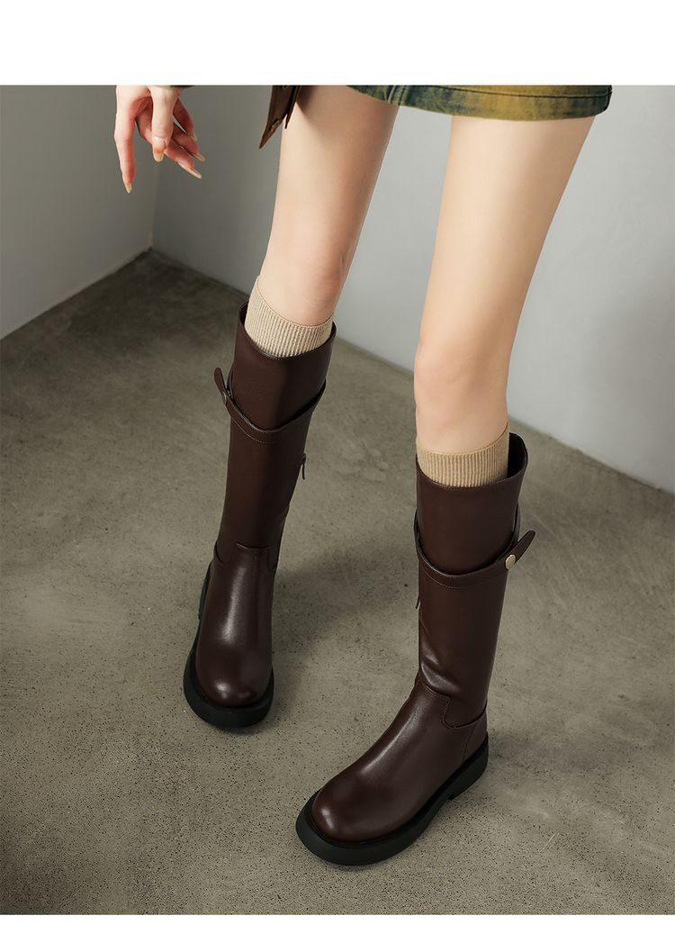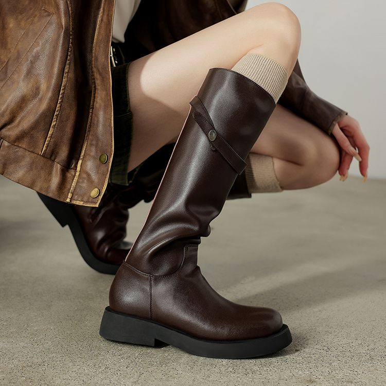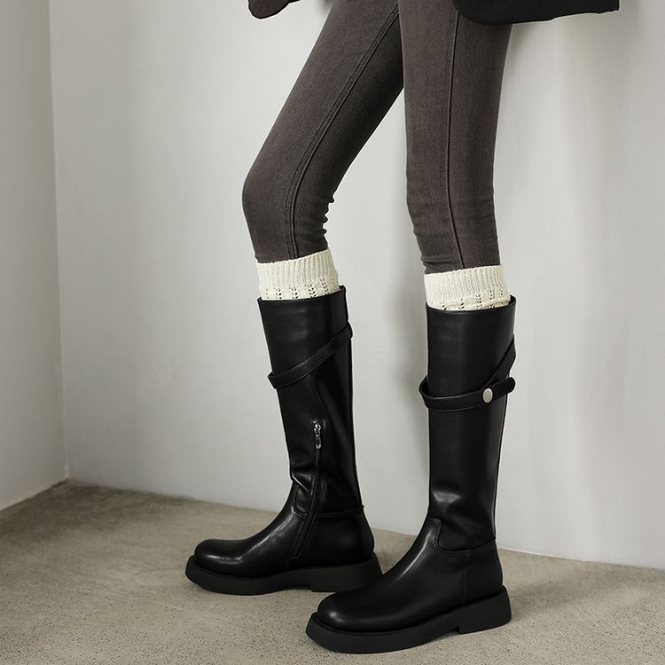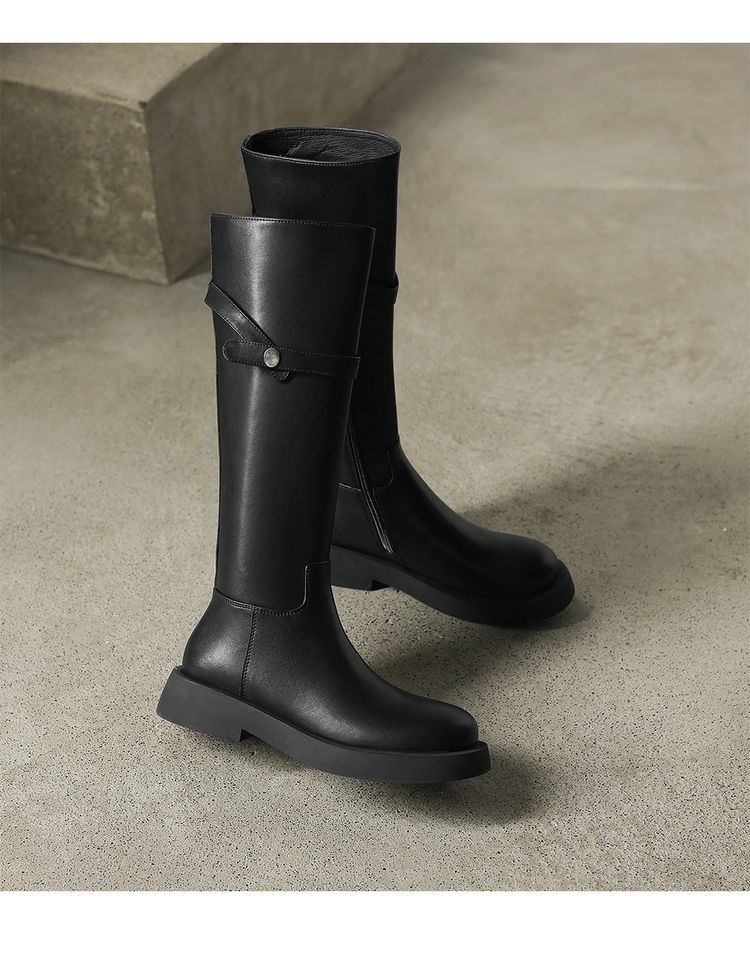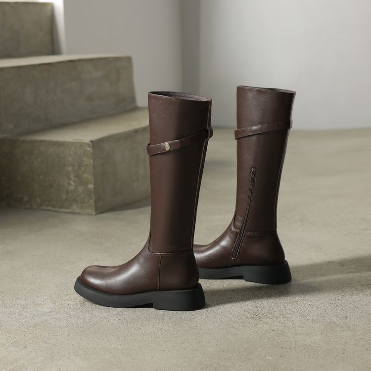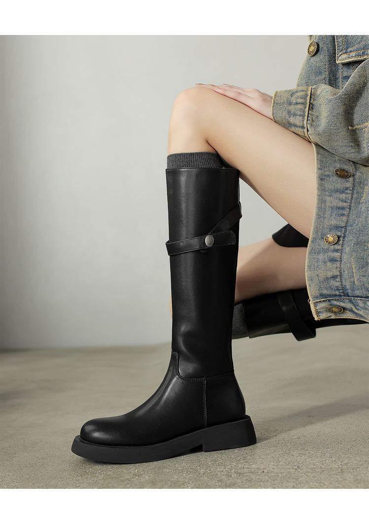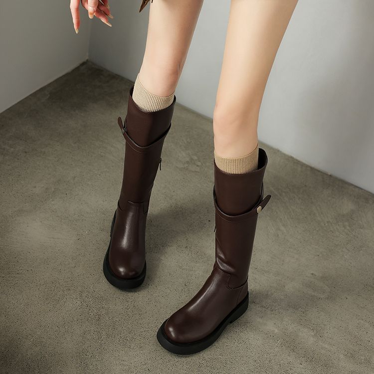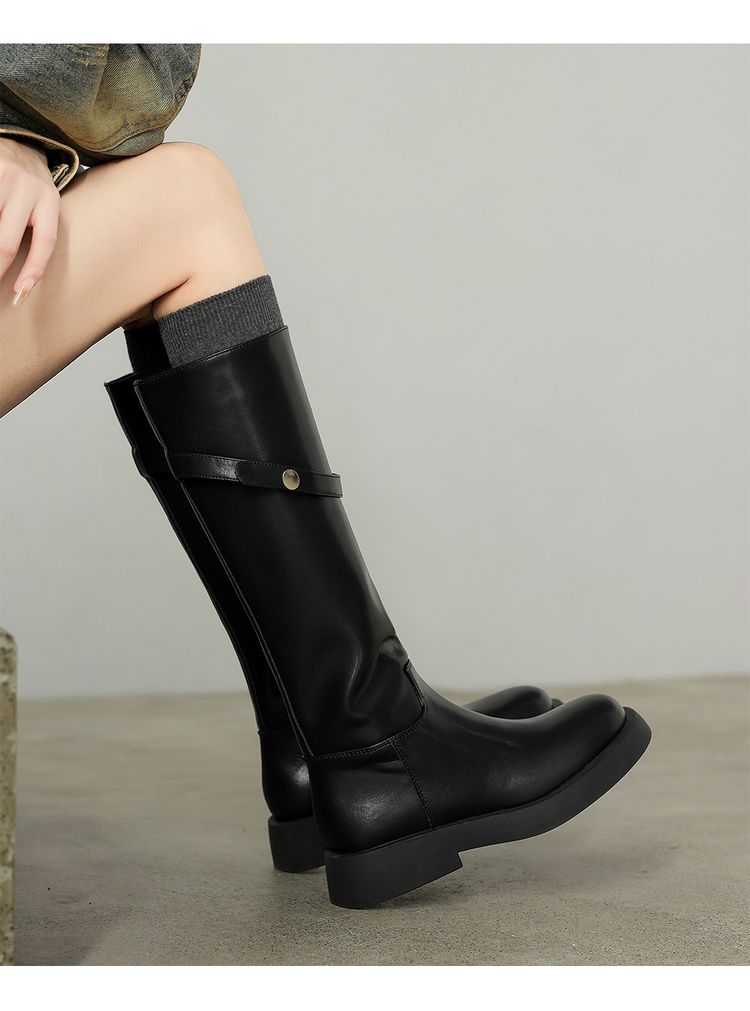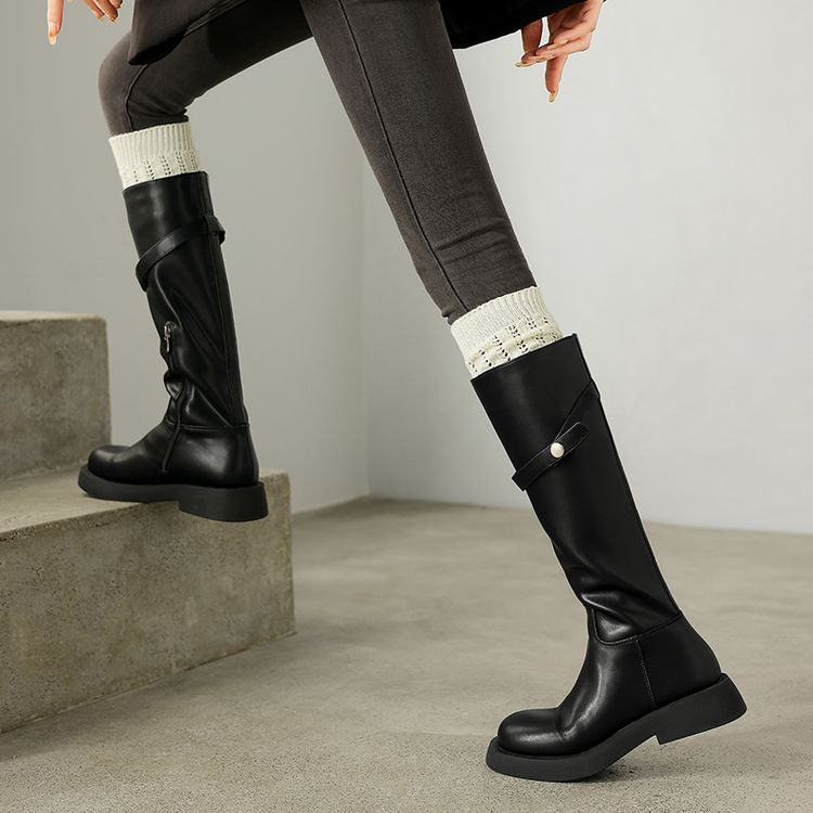 【预售7天】粗跟圆头厚底骑士靴女秋冬新款直筒靴英伦风皮带扣长靴不过膝MX&mx88732