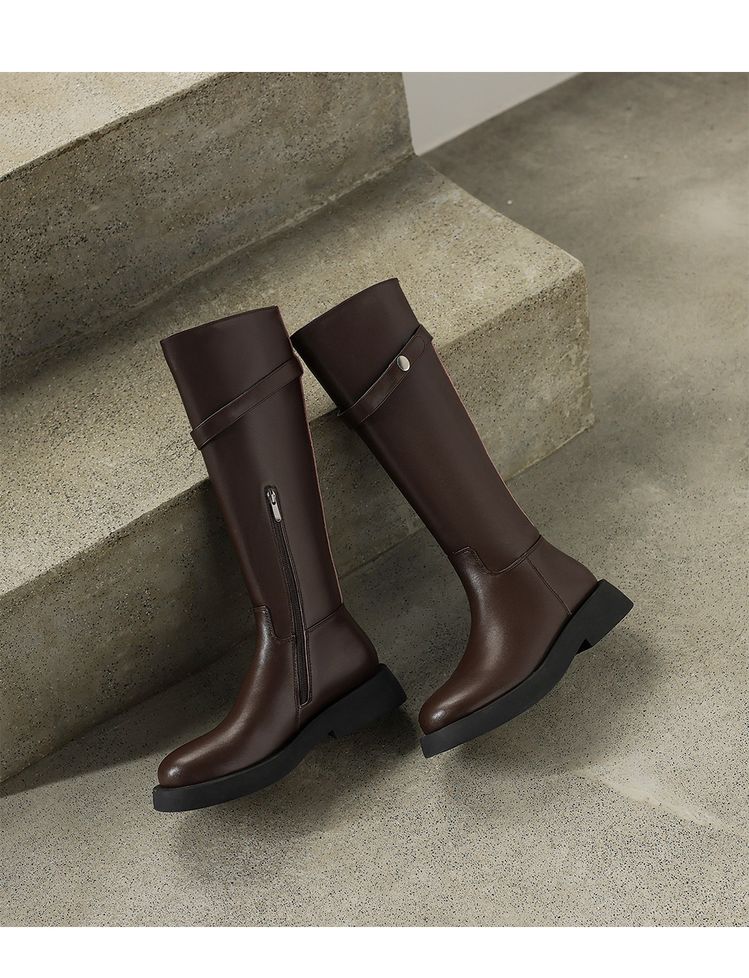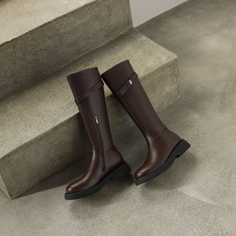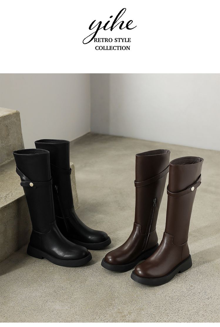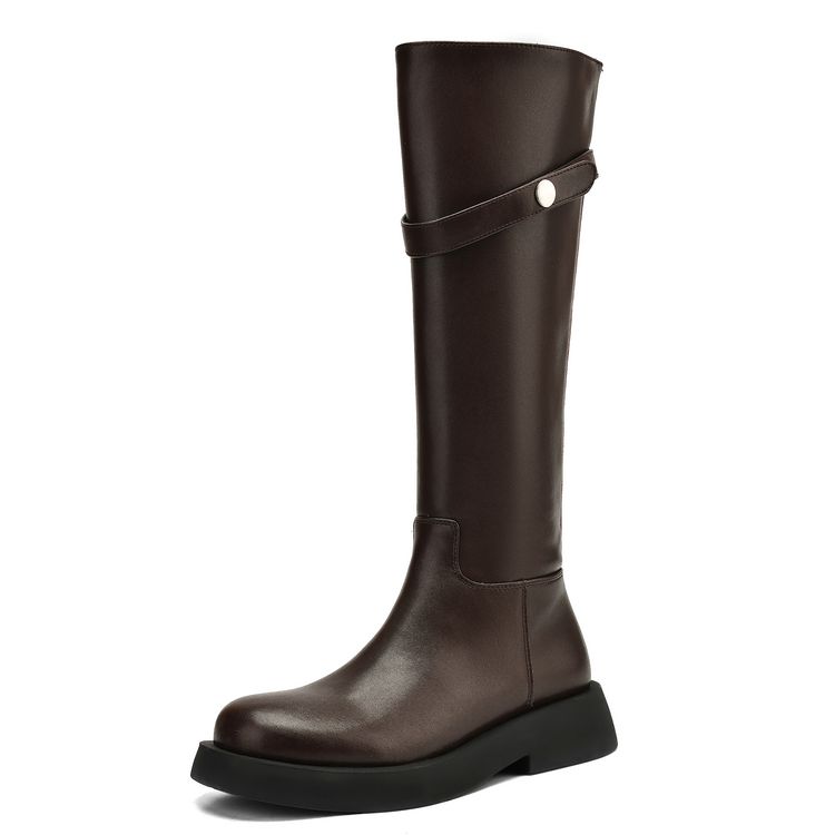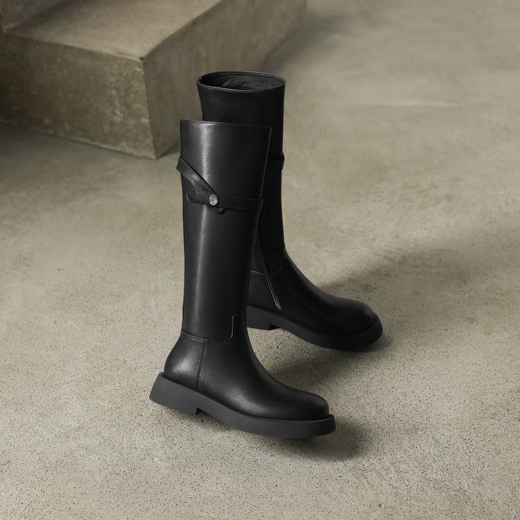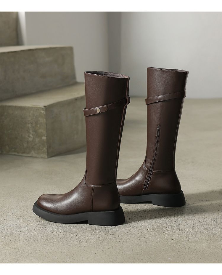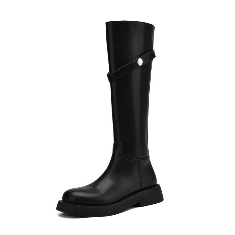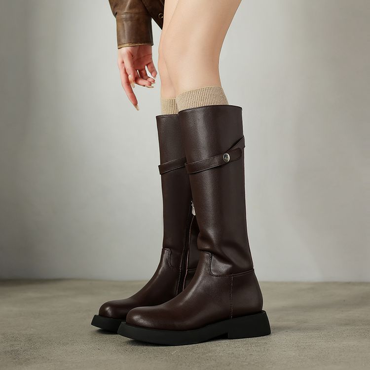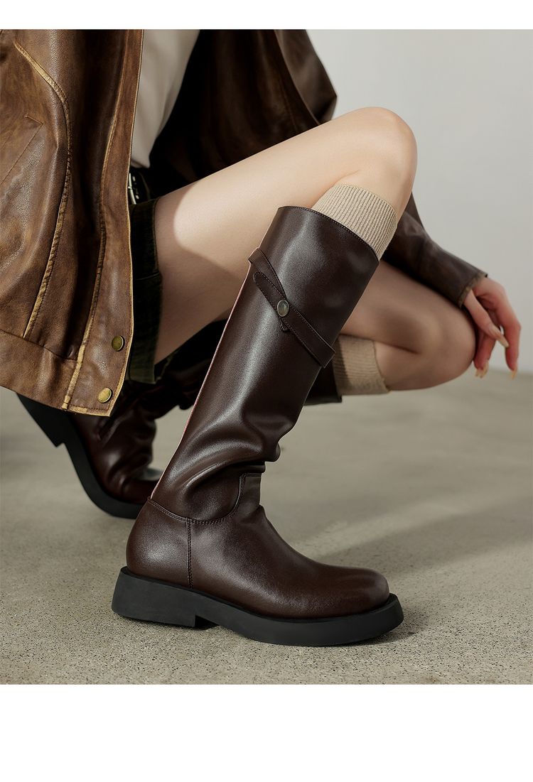 【预售7天】粗跟圆头厚底骑士靴女秋冬新款直筒靴英伦风皮带扣长靴不过膝MX&mx88732