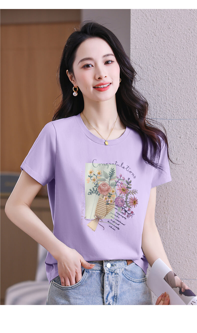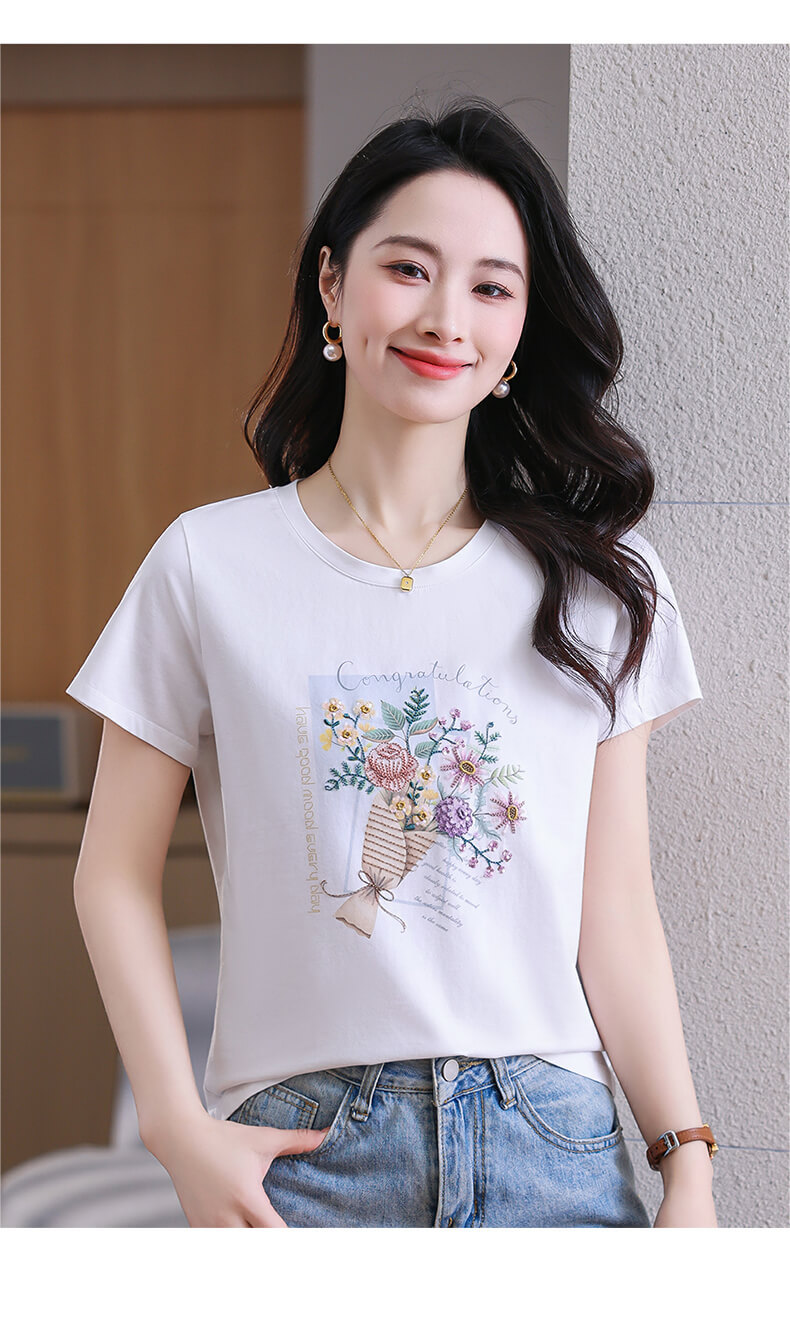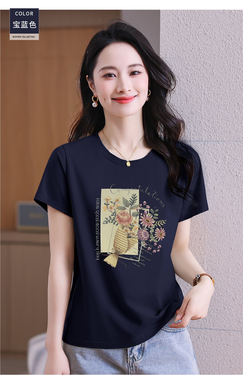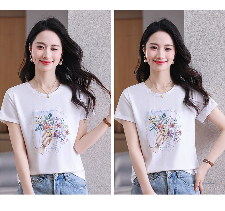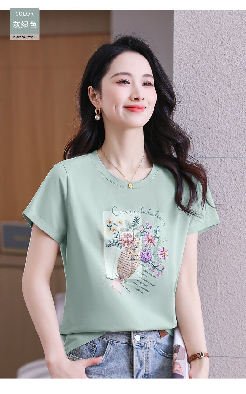 雀说圆领宽松正肩短袖t恤新款减龄爆款时尚显瘦半袖体恤AL20026