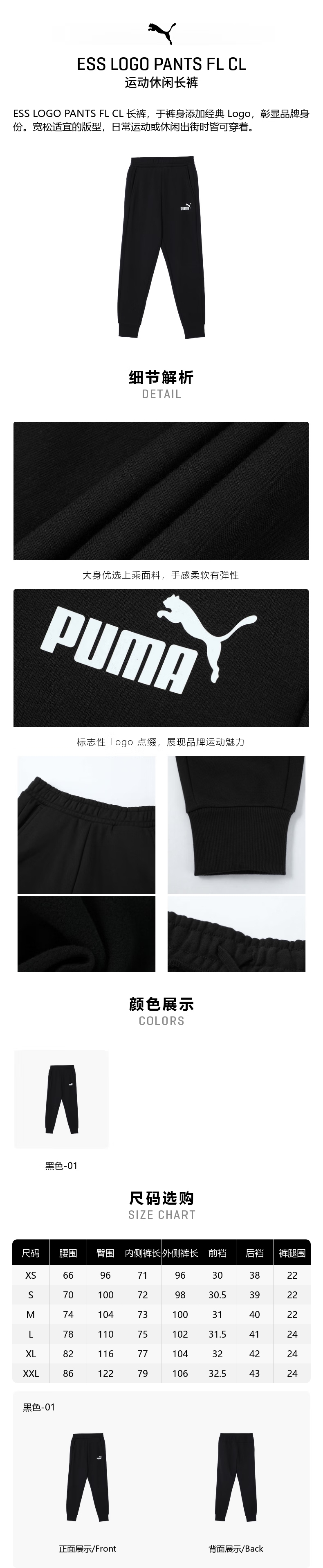PUMA彪马 男女同款针织长裤-加绒 682724-01