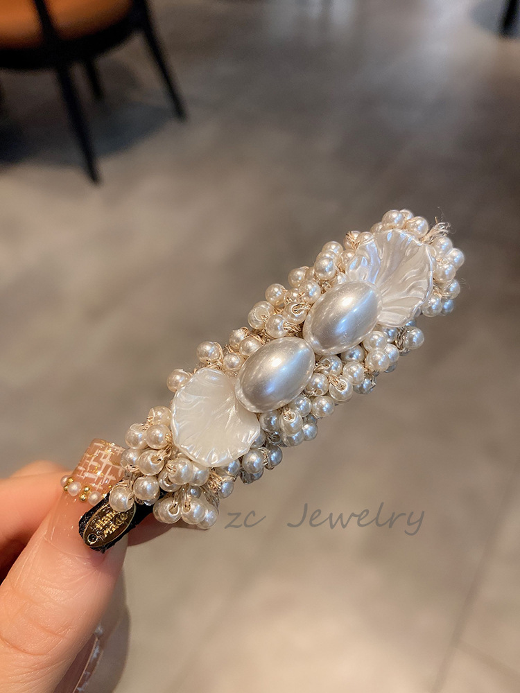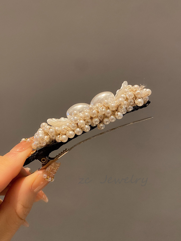 丁摩 法式小香风仿珍珠边夹女高级感重工碎发鸭嘴夹新款发卡发饰5ZF-151