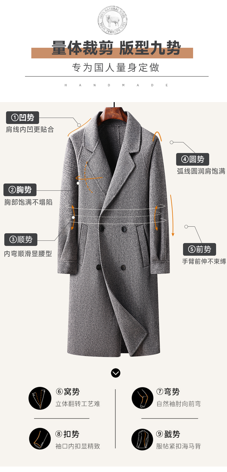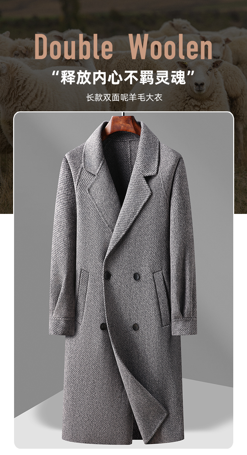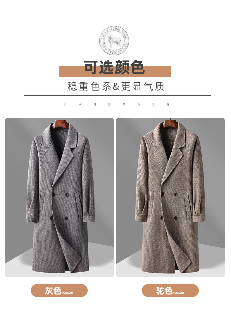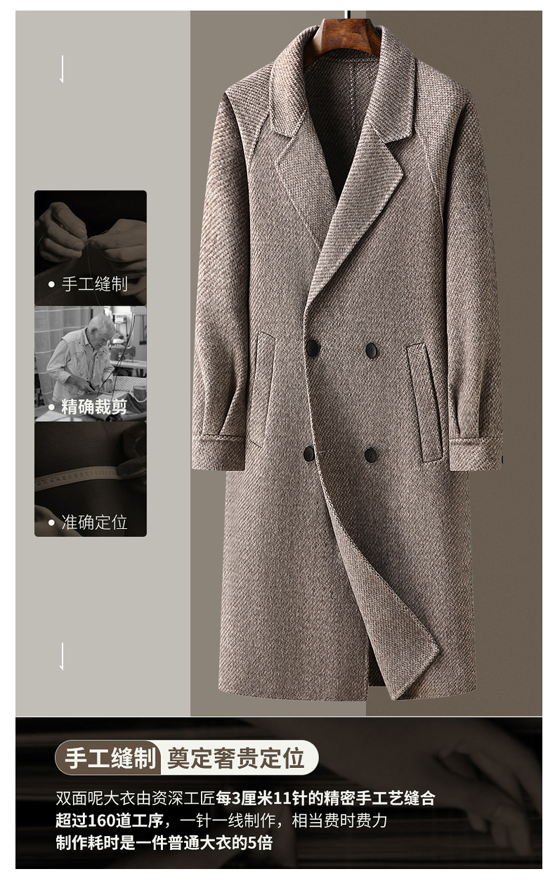 【新款DAB】大依优型大码男装羊毛呢双面呢大衣大衣外套手工呢子中长款胖子休闲男士
