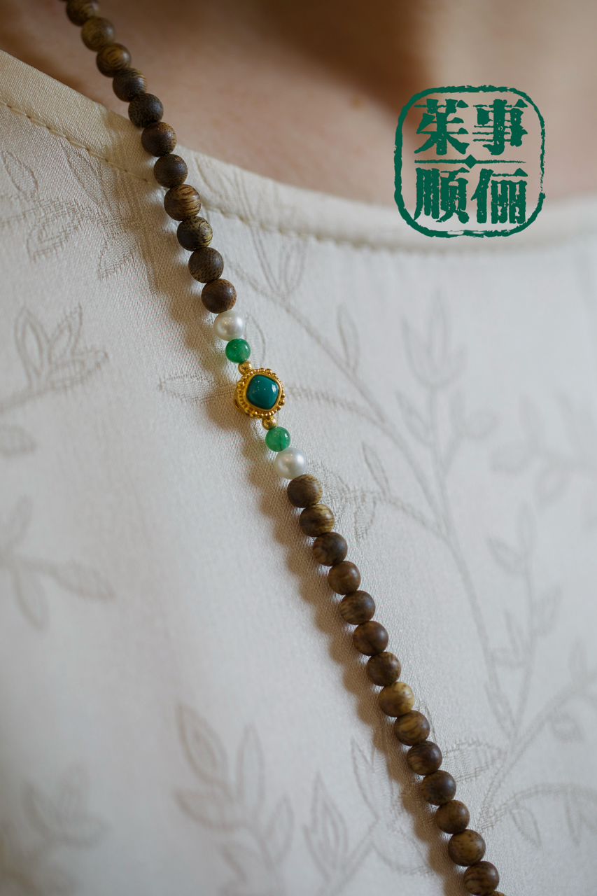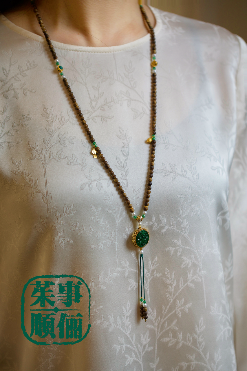 【茱事顺俪】18k金沉香翡翠珍珠项链