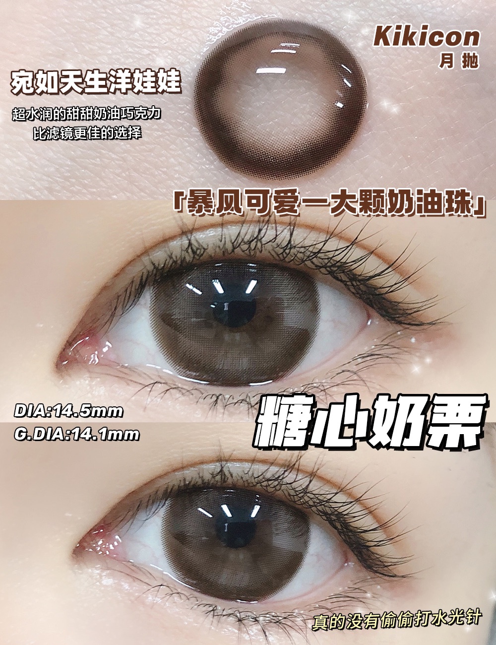 kikicon 月抛 糖心奶栗 棕 14.5mm 2片装 含硅水凝胶