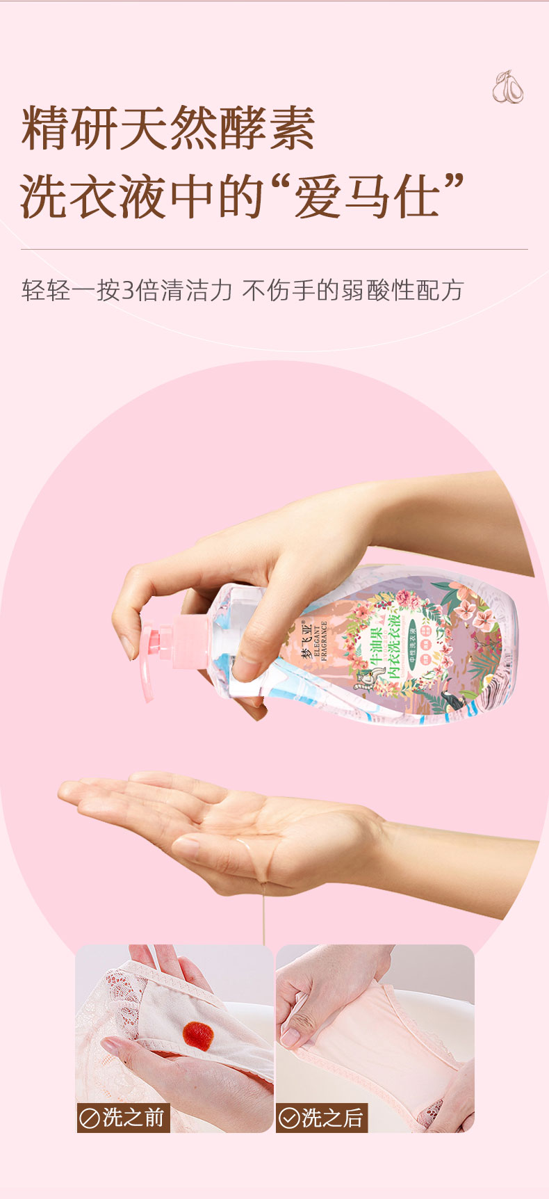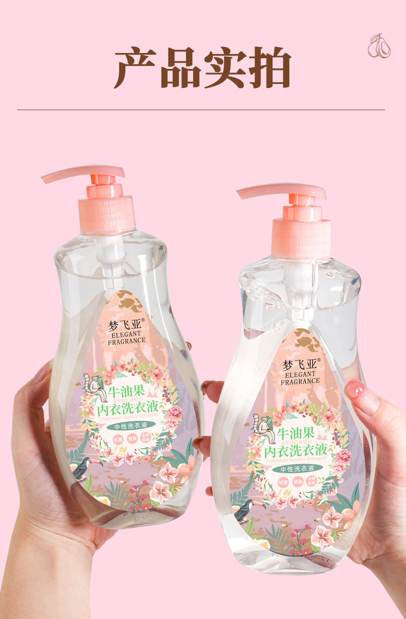 拍1发4!牛油果内衣清洗液 植物配方 中性弱酸不伤手 去渍留香 500ML/瓶