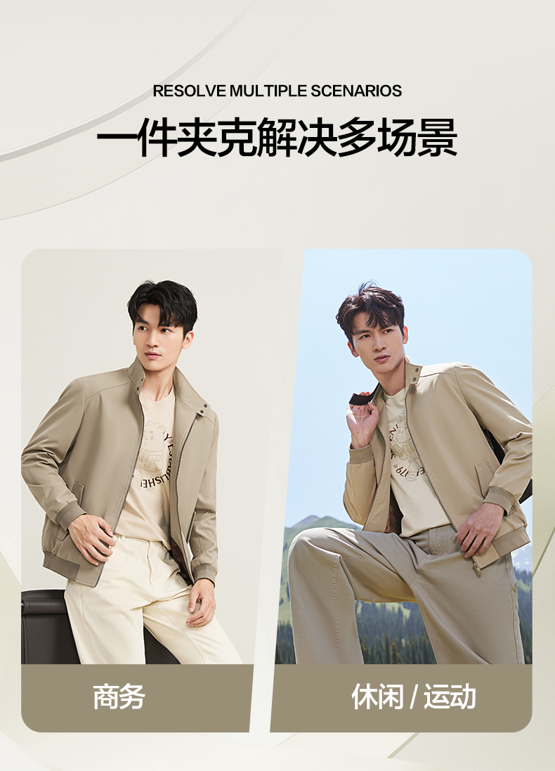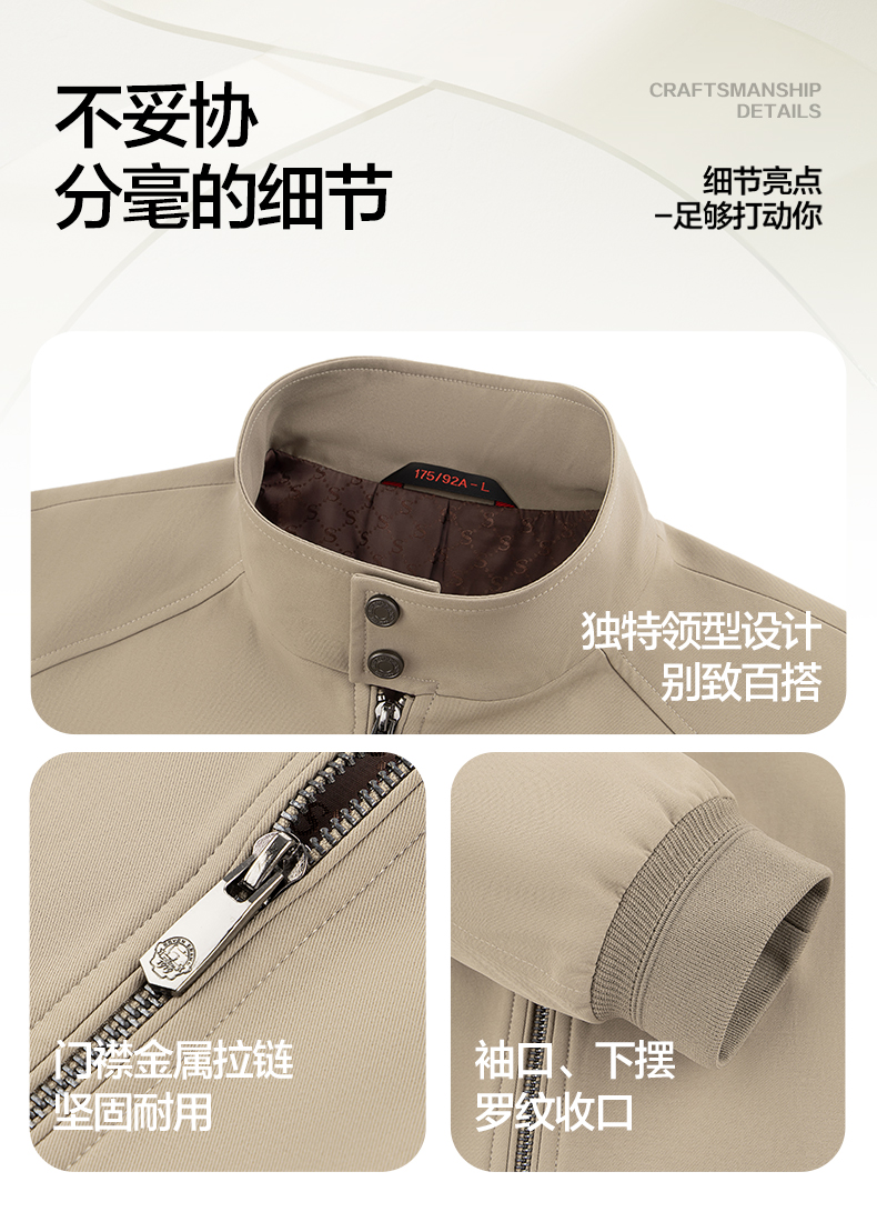 【哈灵顿茄克】柒牌男式夹克休闲百搭通勤外套斜纹肌理立领茄克129K70870