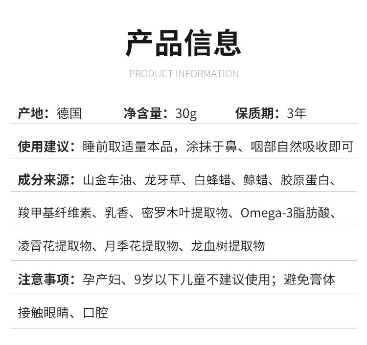 【德国进口 轻松止鼾】Silenus止鼾膏 德国原装进囗 睡前一抹 告别睡眠呼吸不畅 天然温和 30g/瓶