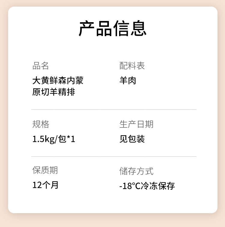 大黄鲜森 内蒙古原切羊精排1.5kg