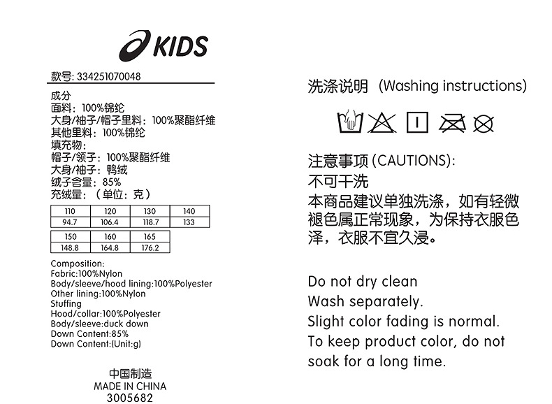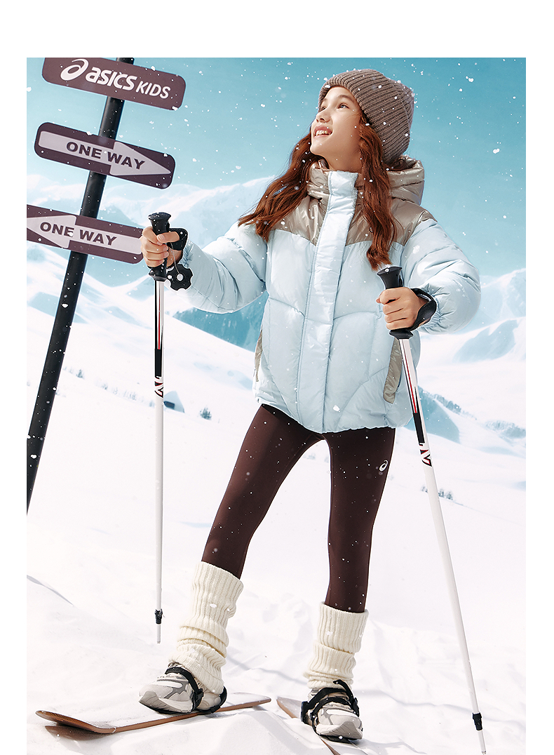 ASICS/亚瑟士儿童25年女童短款连帽羽绒服轻量保暖柔软舒适防泼水