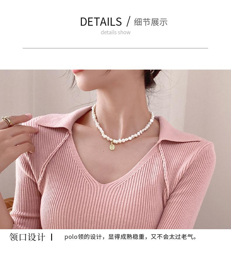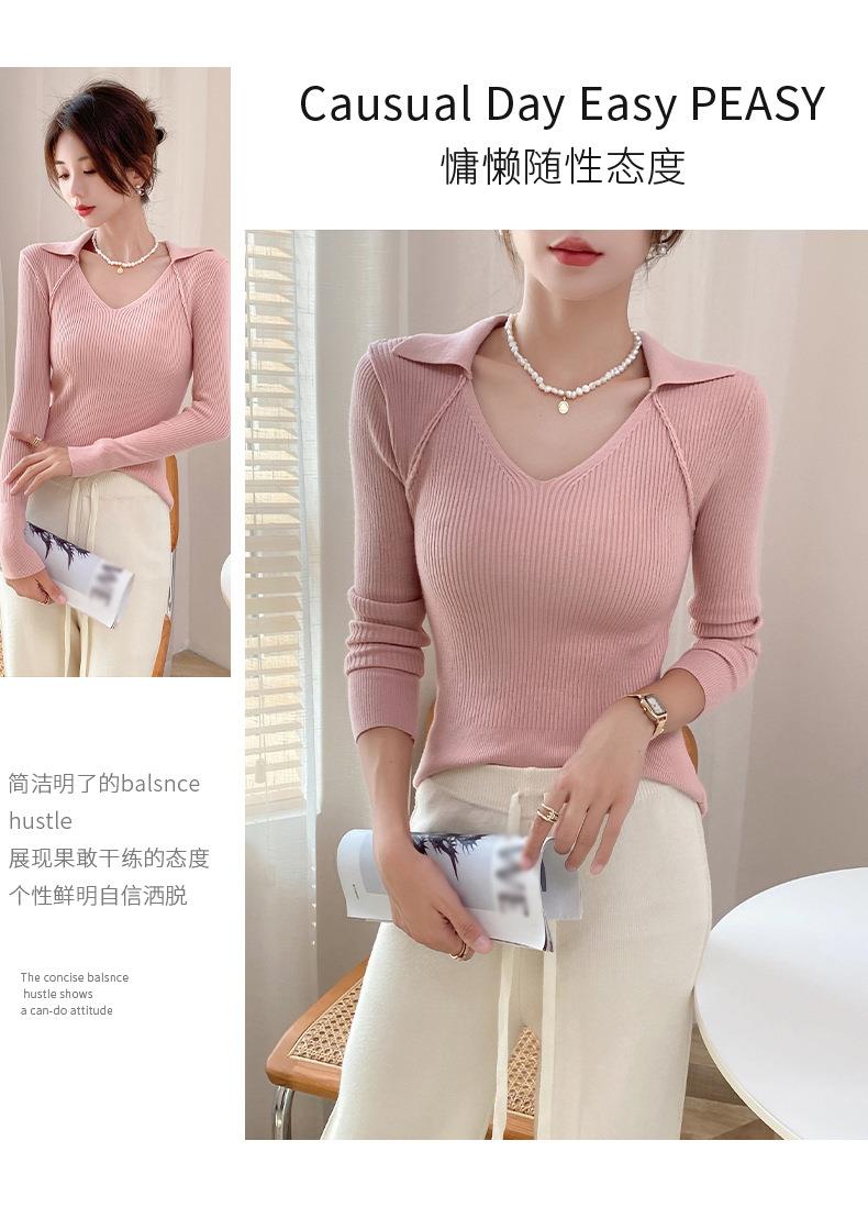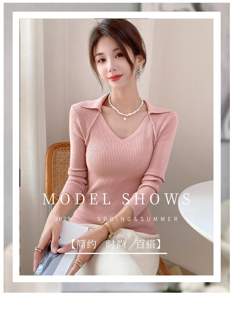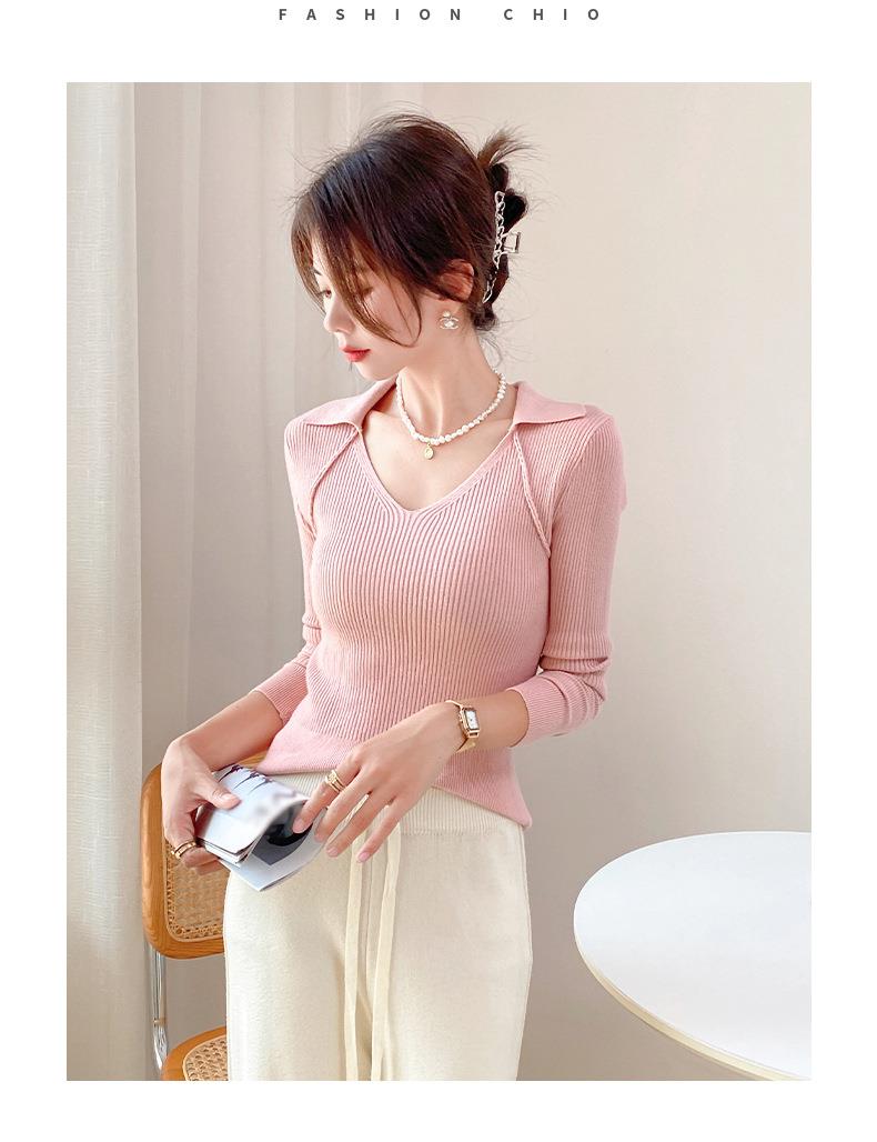 长袖毛衣设计感女小众2023秋季新款翻领针织衫气质温柔上衣打底衫