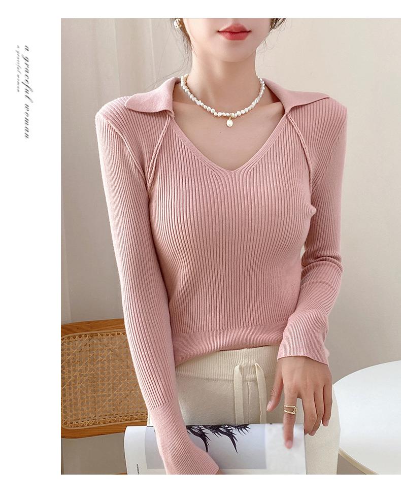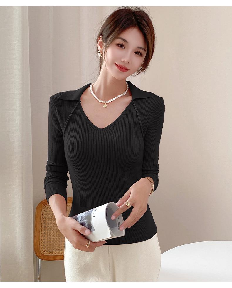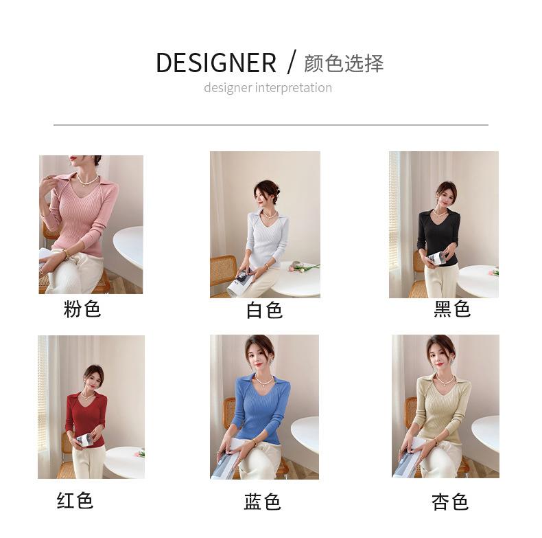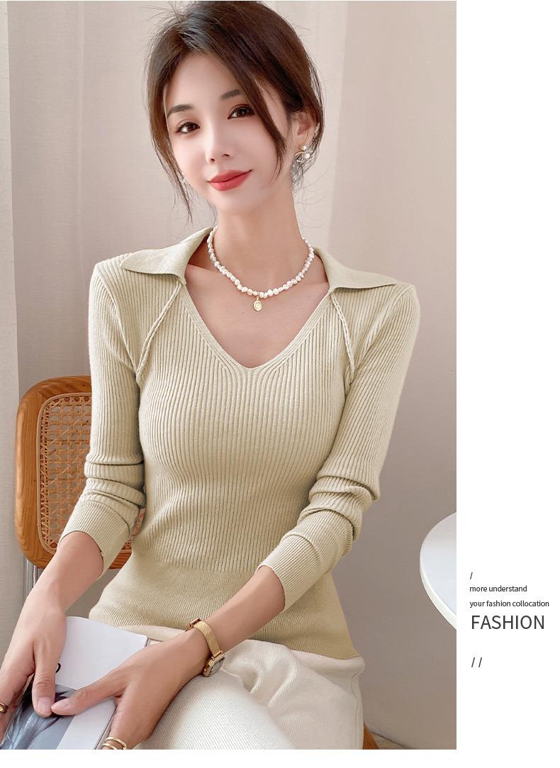 长袖毛衣设计感女小众2023秋季新款翻领针织衫气质温柔上衣打底衫