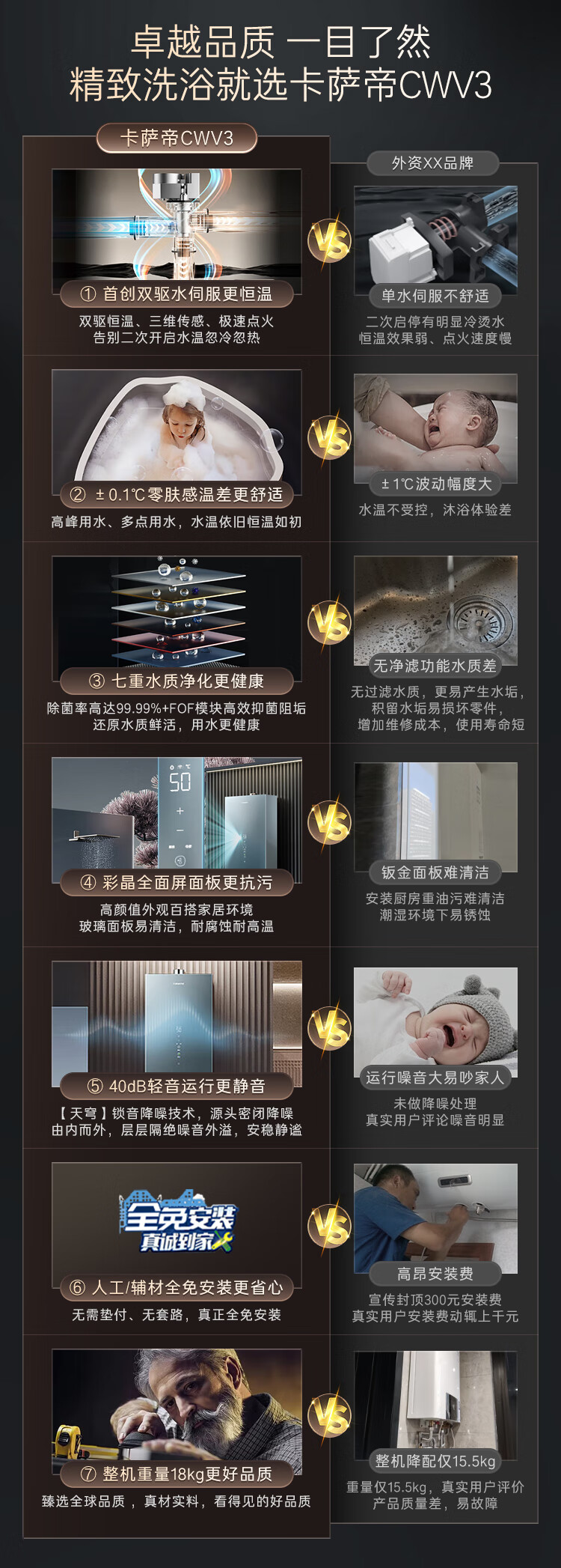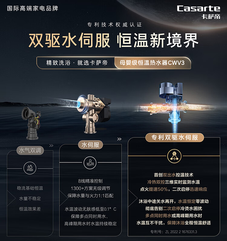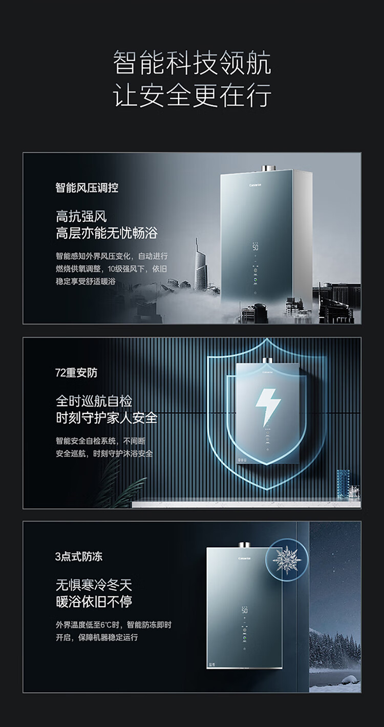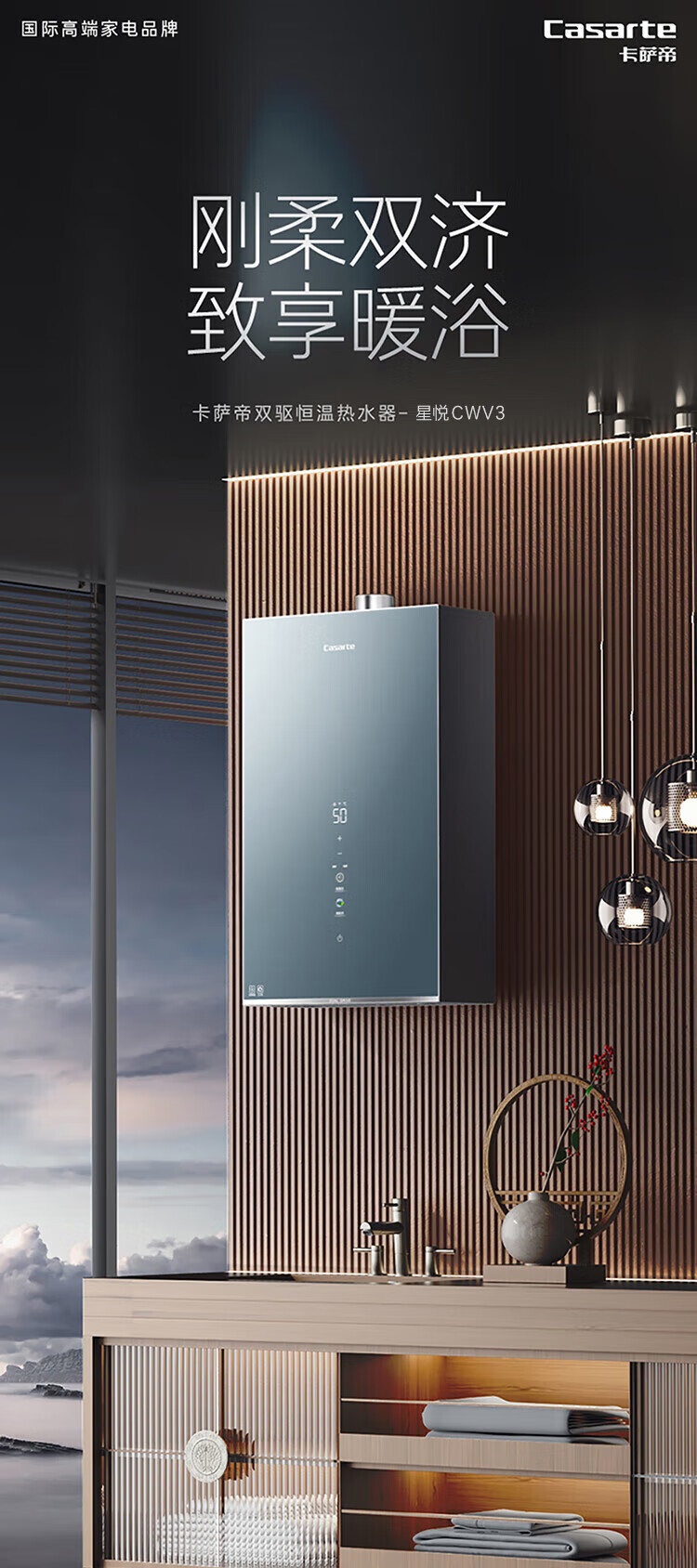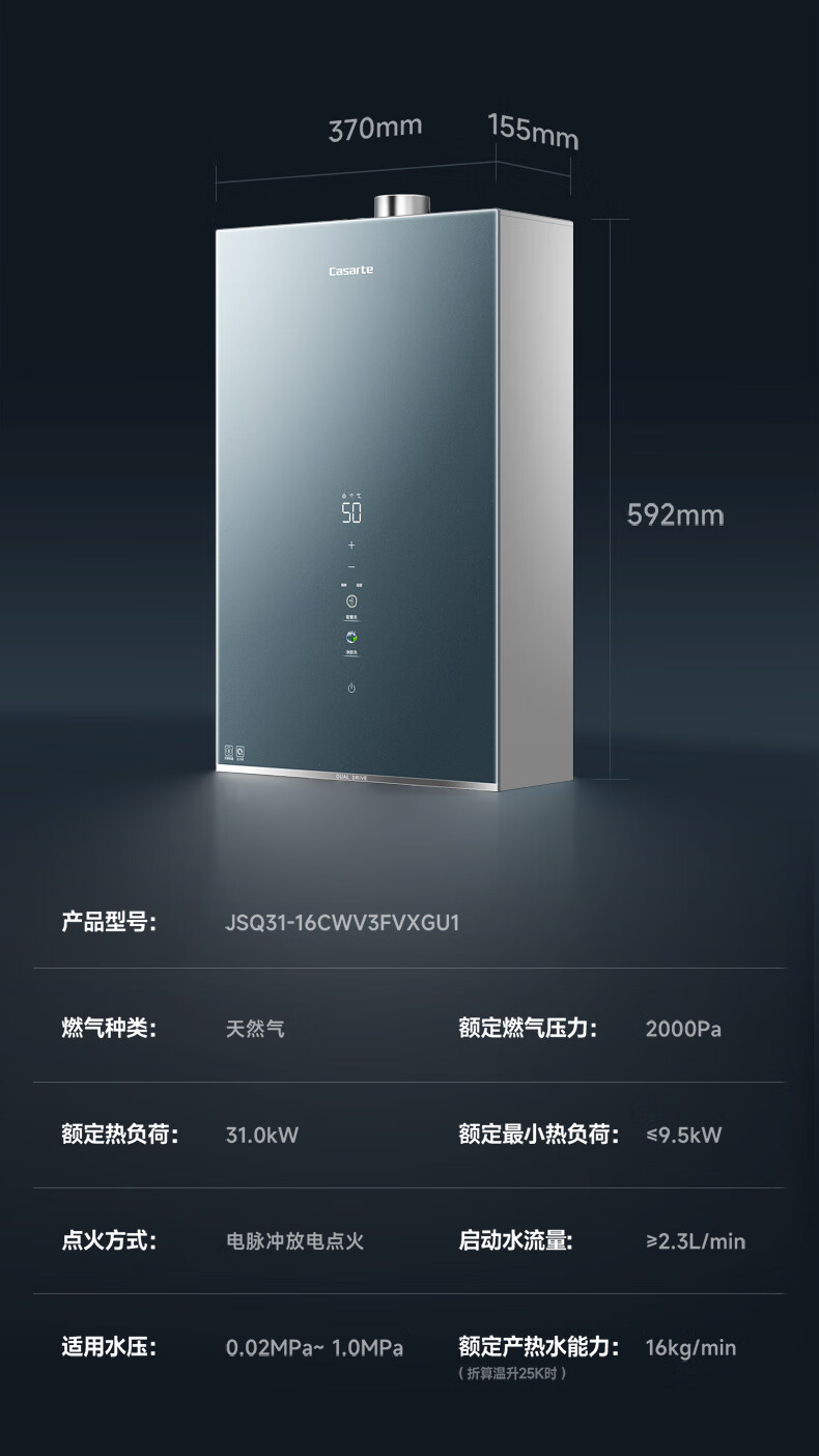 卡萨帝(Casarte)16升燃气热水器天然气【CWV3】 双驱水伺服 母婴级恒温 静音下置风机 JSQ31-16CWV3FVXGU1