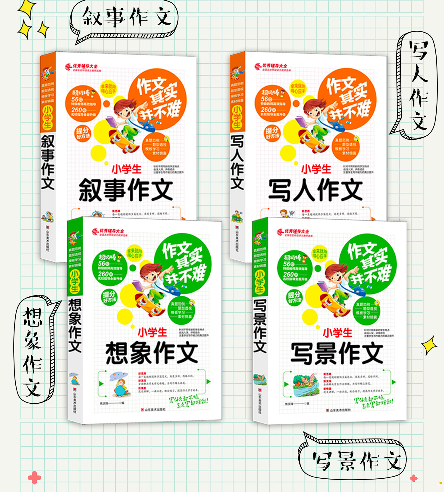 全4册小学生作文书3-6年级作文大全 三年级四五六年级辅导写景写人物的叙事获奖分类满分作文起步人教版老师推荐必读 阅读上册
