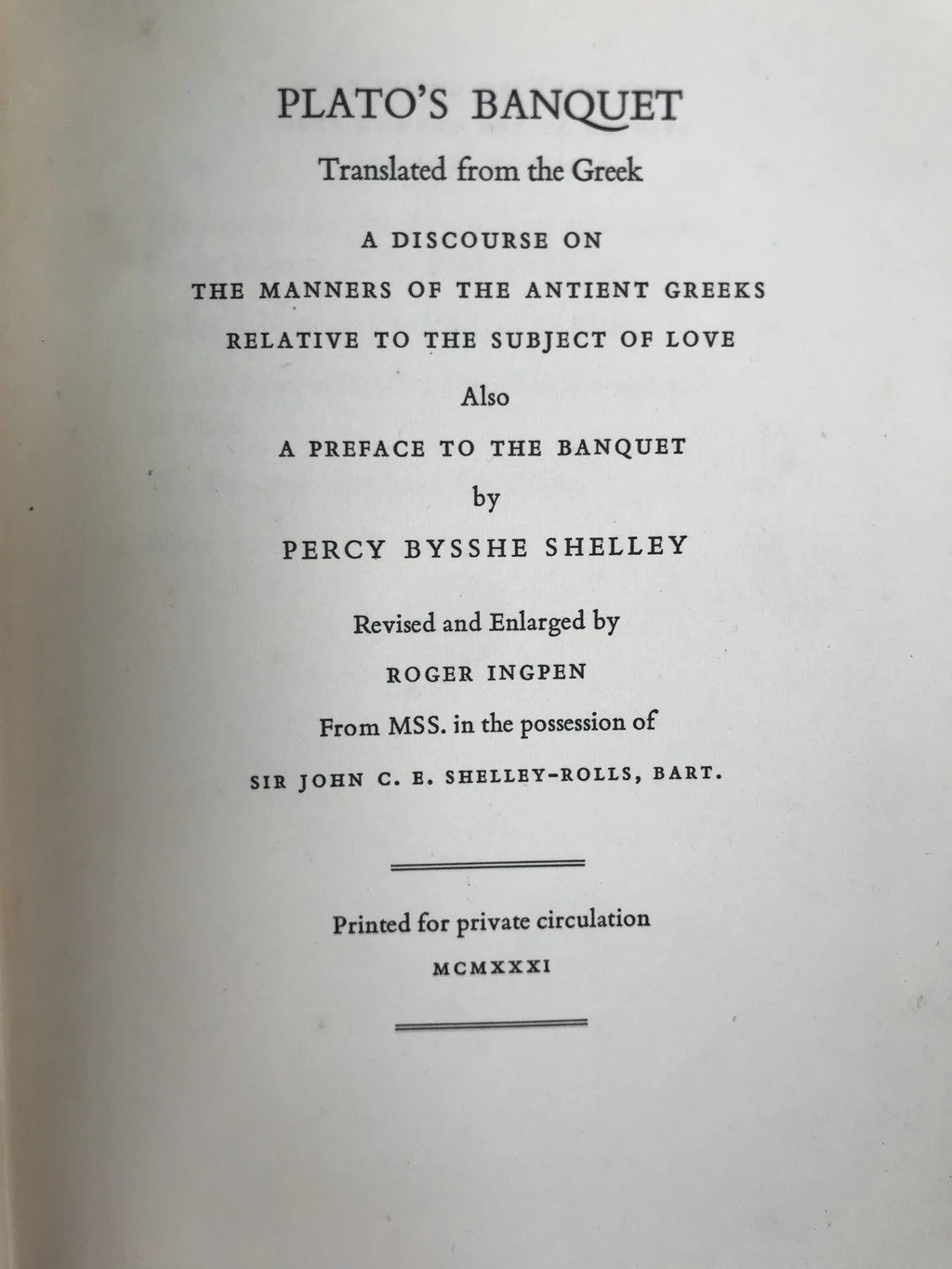 1931年 柏拉图《会饮篇》 雪莱作序 漆布精装32开