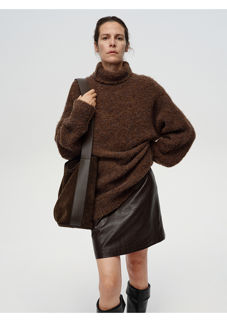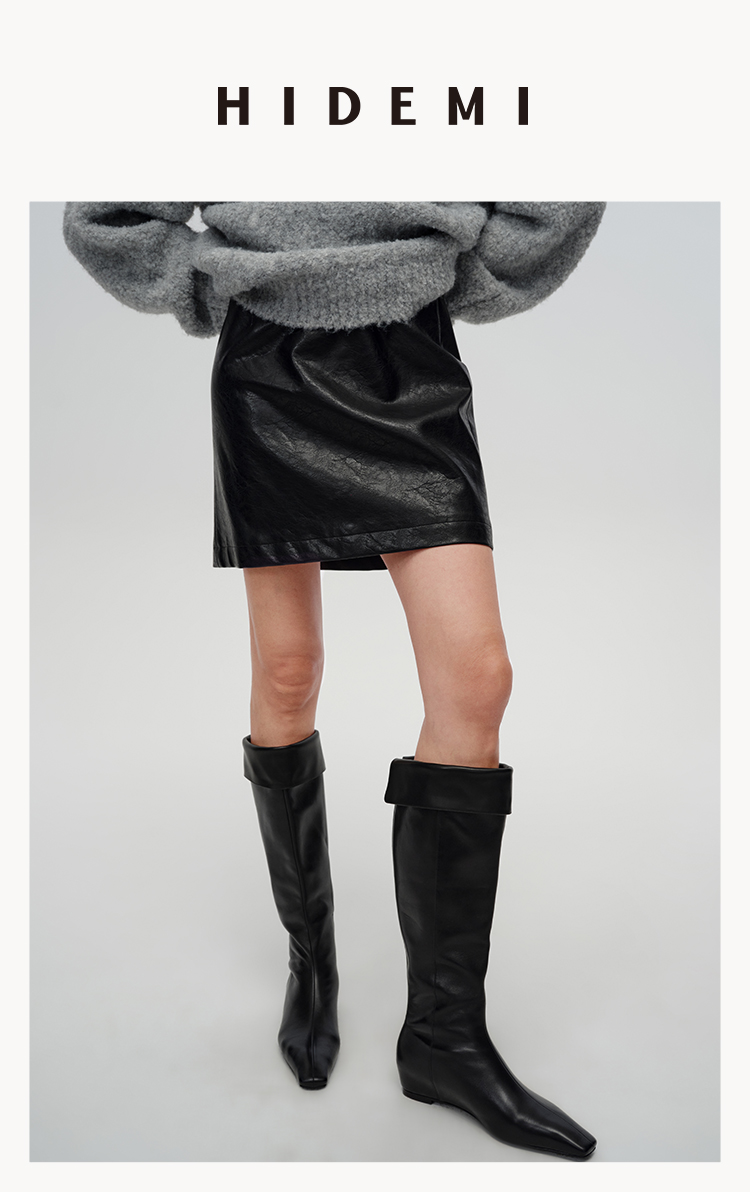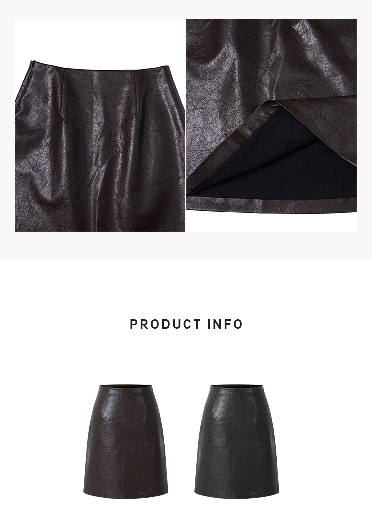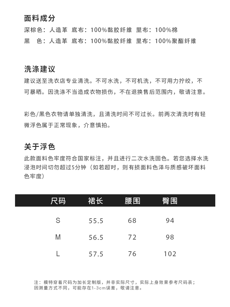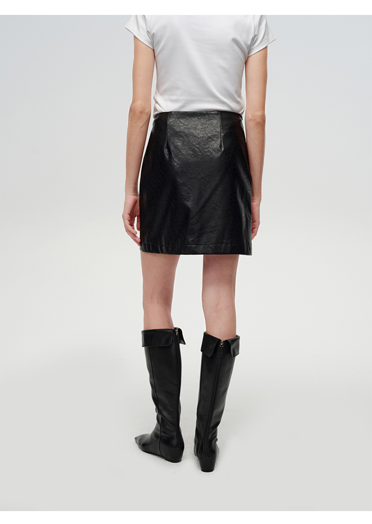 HIDEMI 【董生活同款】超显瘦中腰款可再生蛋白皮环保皮水洗做旧感立裁半身裙a字短裙皮裙 黑色/深棕色