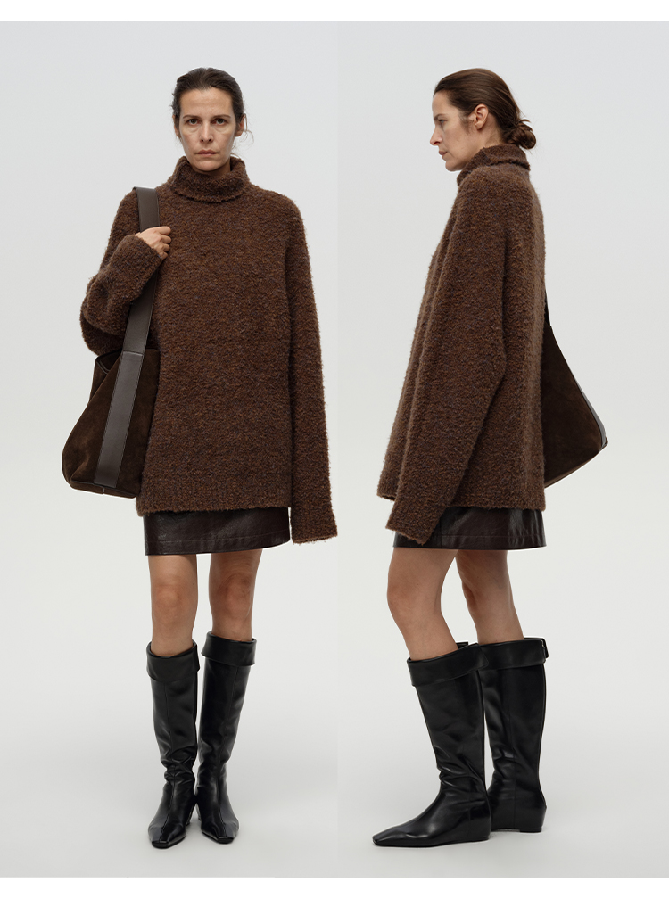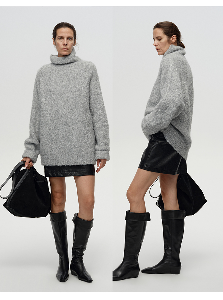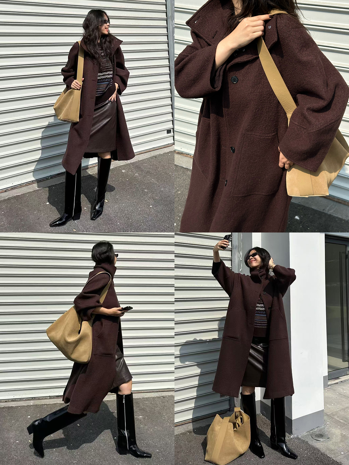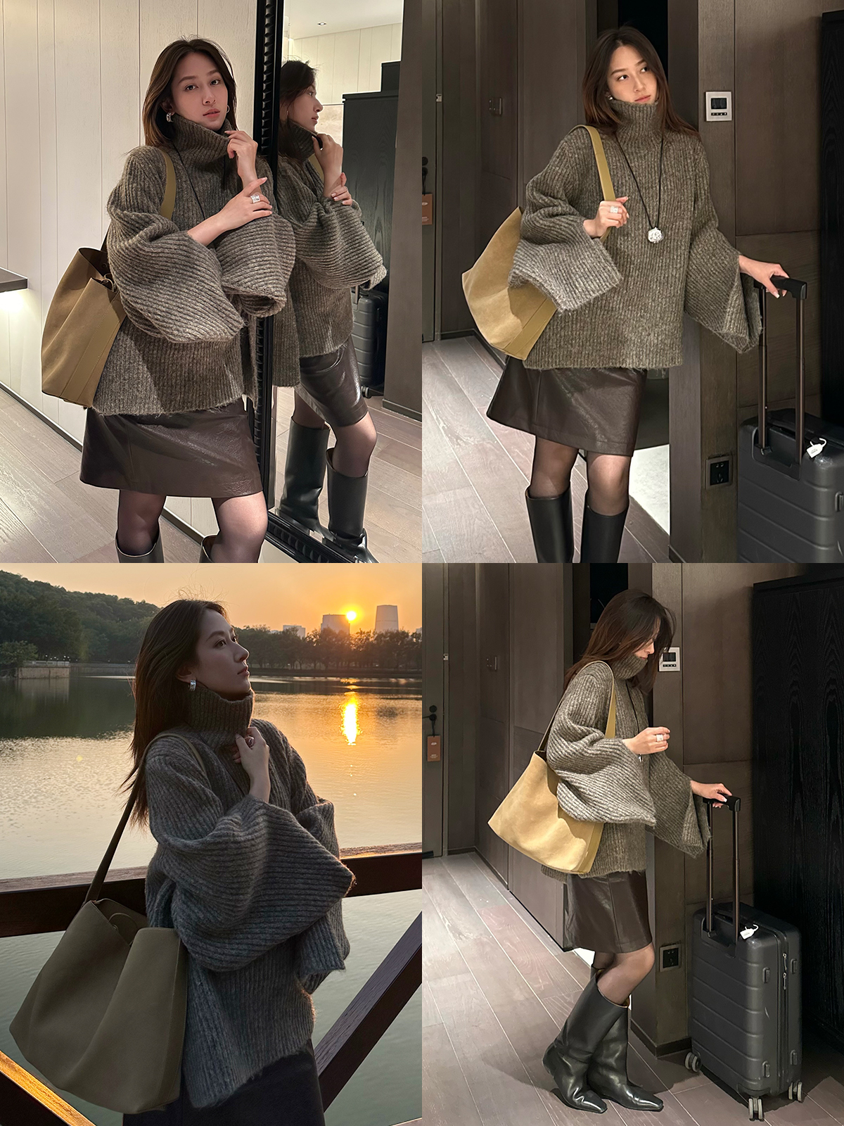 HIDEMI 【董生活同款】超显瘦中腰款可再生蛋白皮环保皮水洗做旧感立裁半身裙a字短裙皮裙 黑色/深棕色