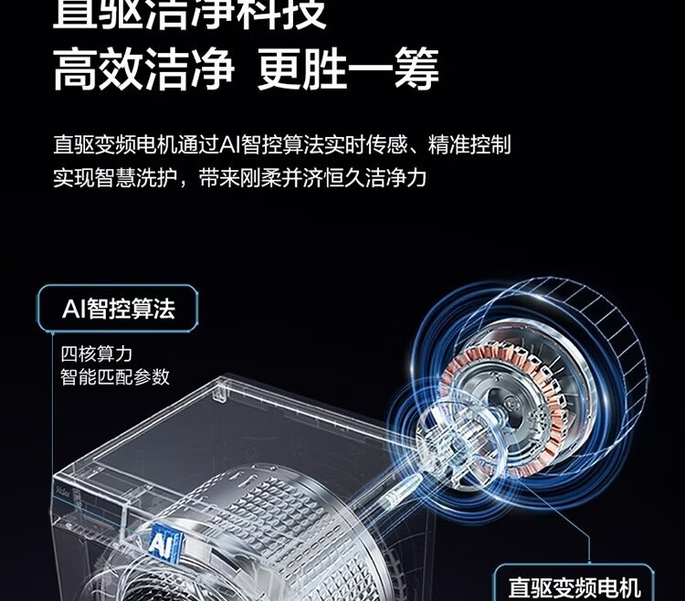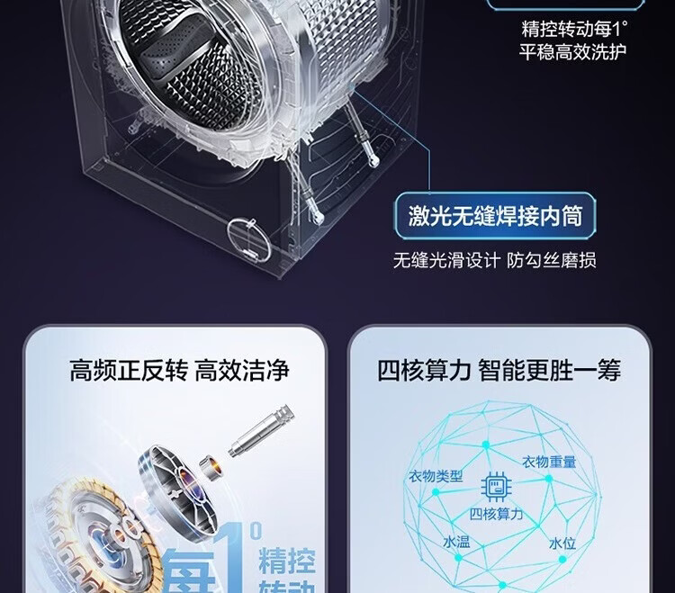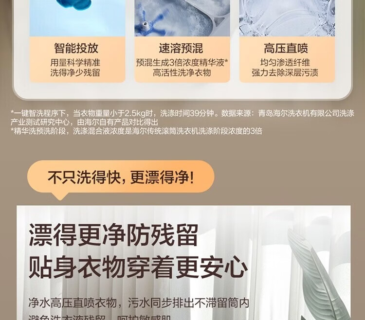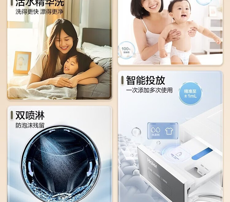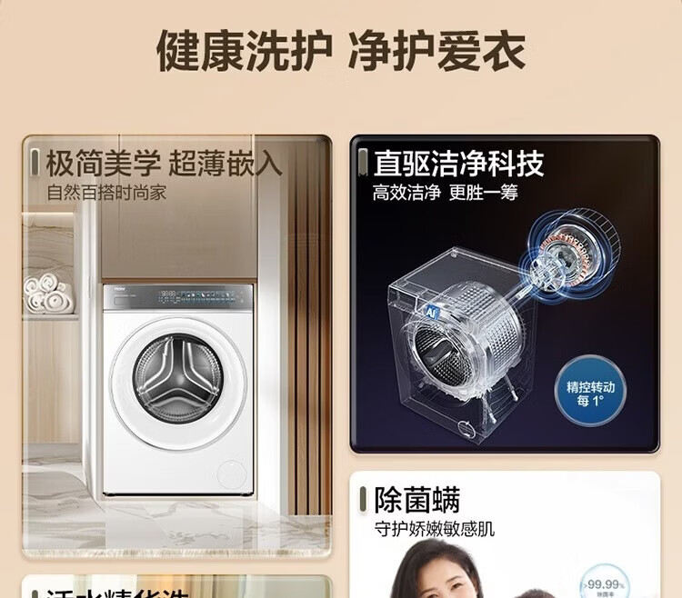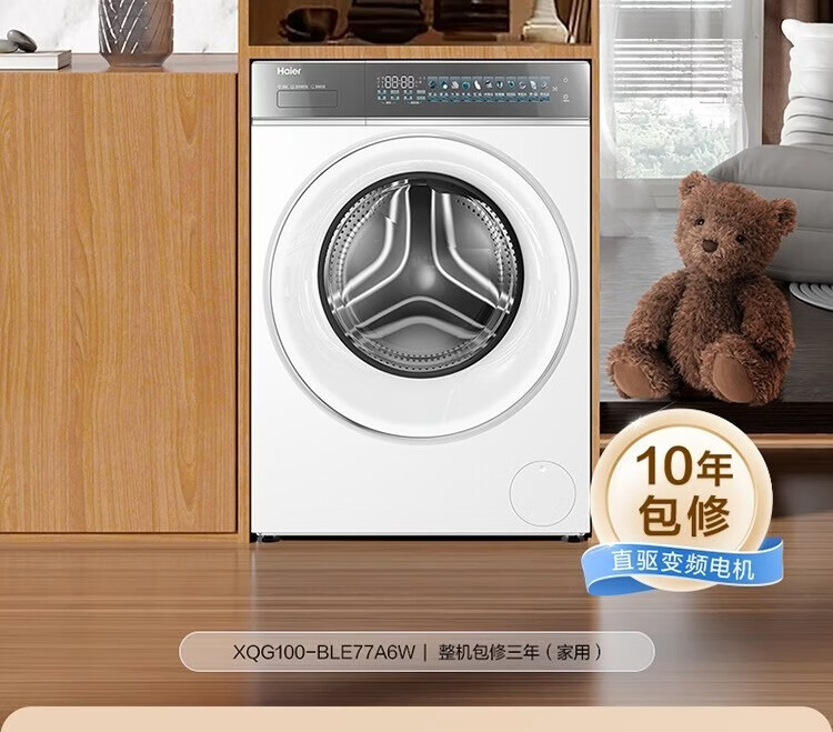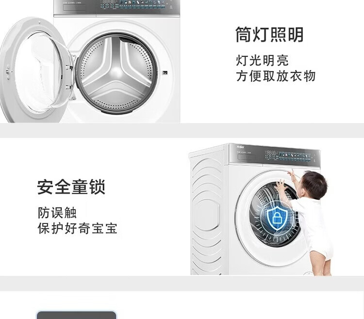 海尔滚筒洗衣机10KG 白色云溪2.0 全自动直驱一级变频+537超薄平嵌+智投精华洗+晶彩屏XQG100-BLE77A6W