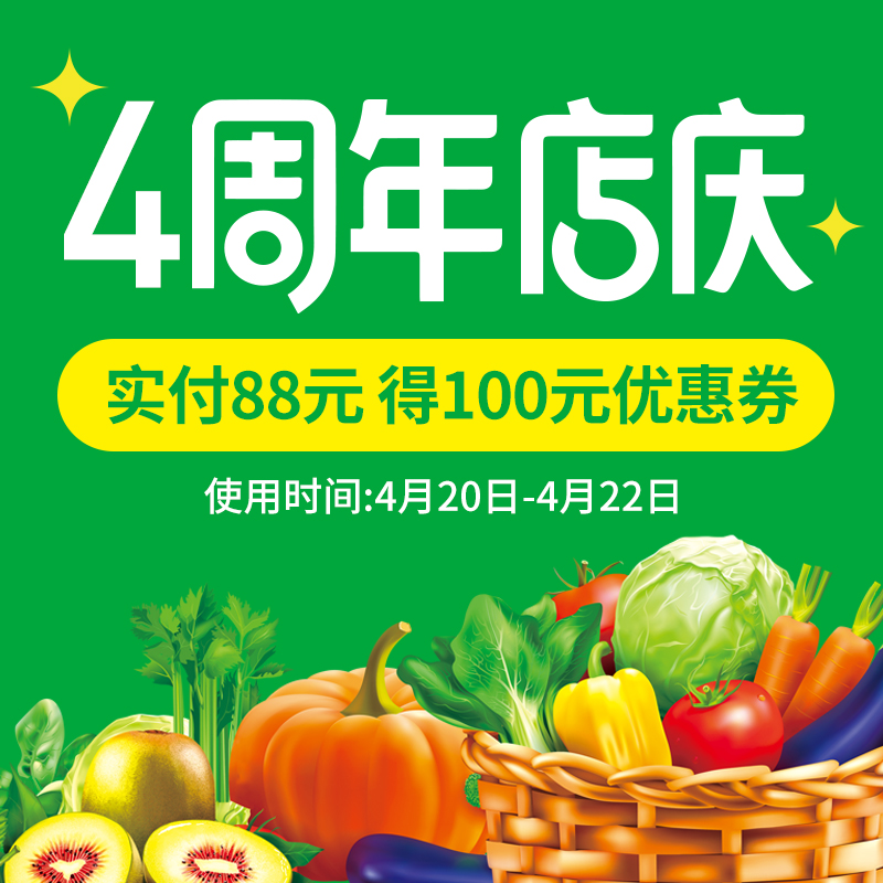 88元购买100元代金券,全店产品均可享用,代金券仅限周年庆期间4月20-22日使用,购买后请及时使用。
