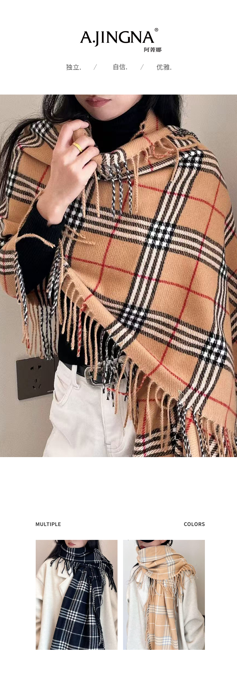 【积分兑换】阿菁娜冬季千鸟格格纹围巾F30D320001