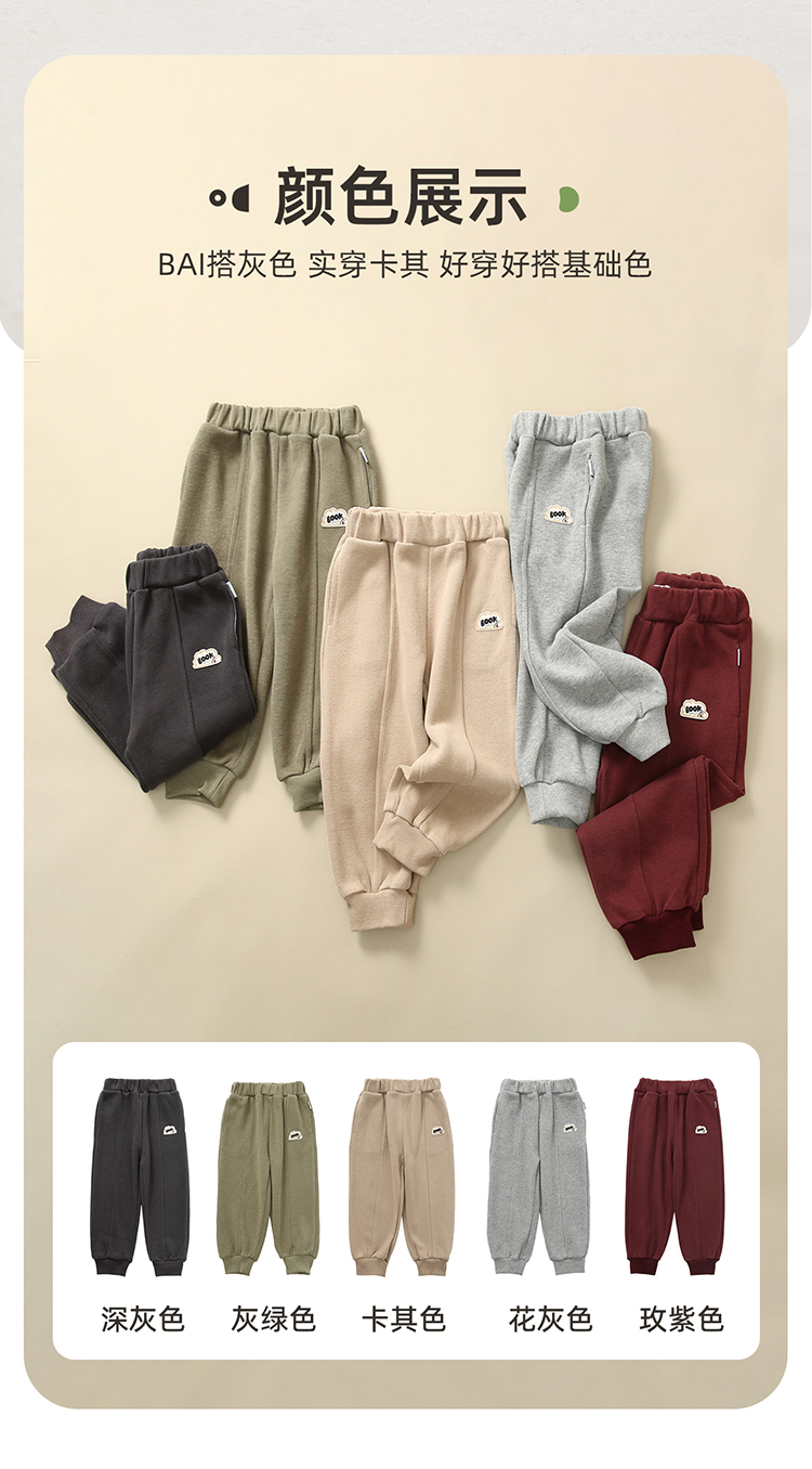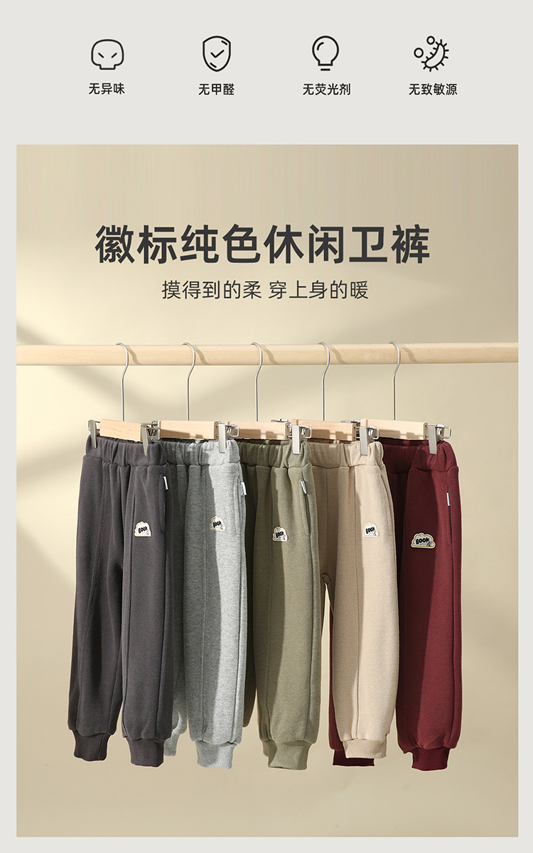 【100元任选5件】【米尼刷毛绒面料】徽标纯色休闲卫裤PQK2215