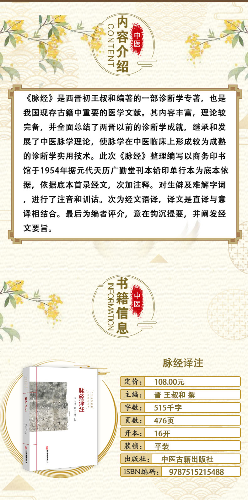 脉经译注 中医必读典籍白话译注丛书 晋 王叔和 撰 牛兵占等 注译 脉形状指下秘诀 肝胆脾胃部等 9787515215488中医古籍出版社