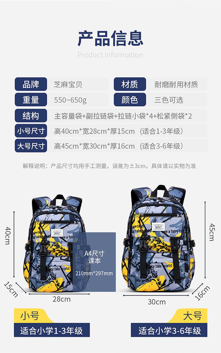 新款芝麻宝贝小学生书包 男1-3年级迷彩书包儿童轻便休闲双肩包