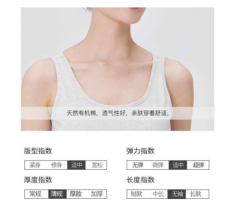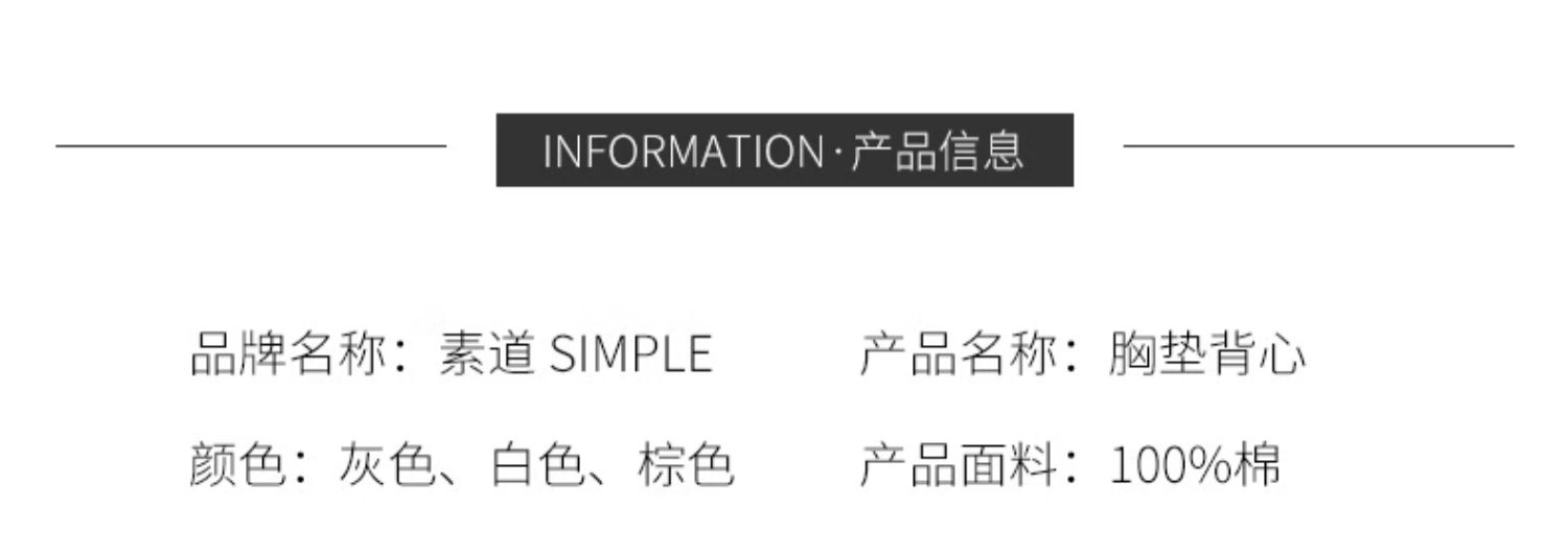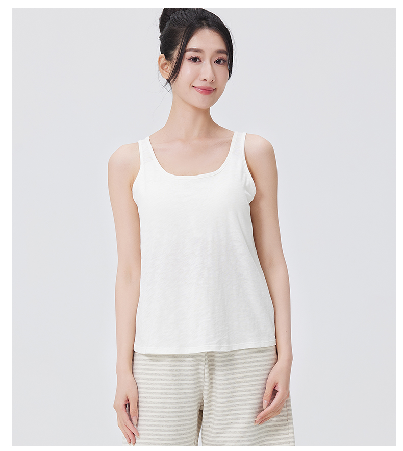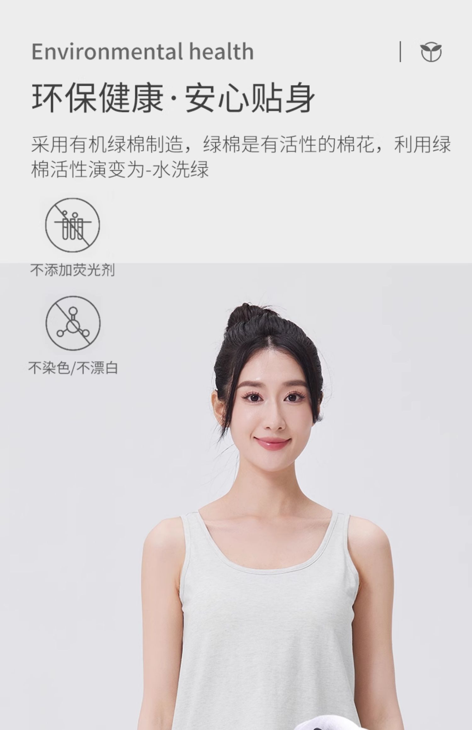 素道有机彩棉女士无袖胸垫背心 免穿内衣运动衫 纯色固定胸垫内衣