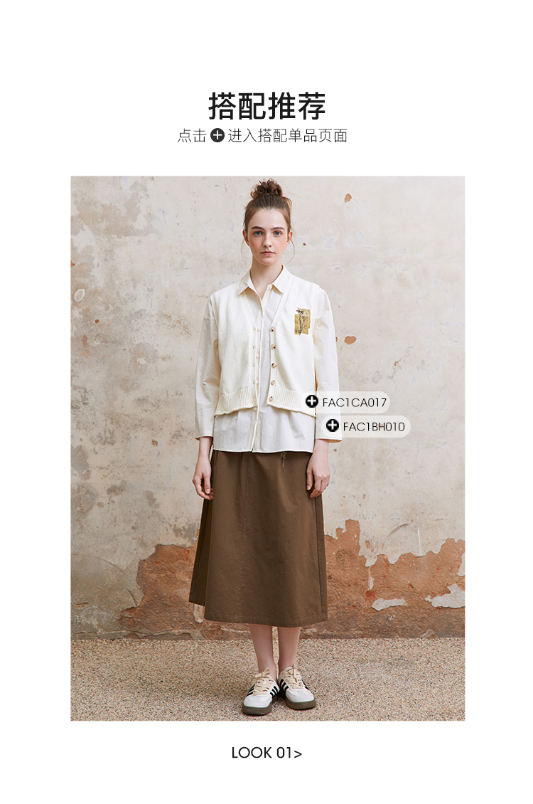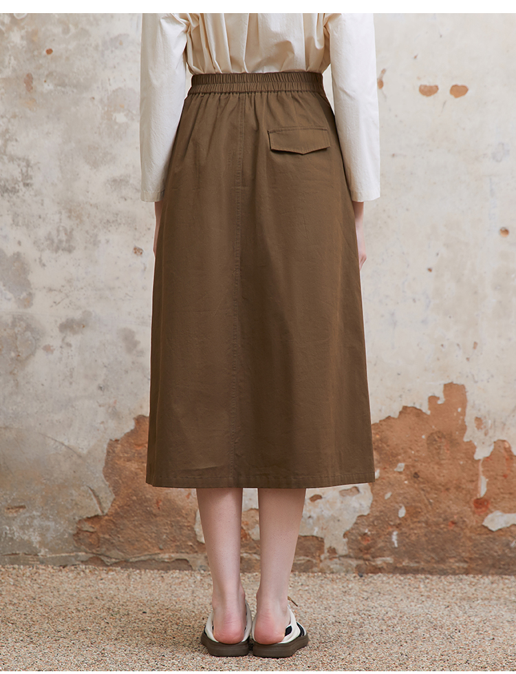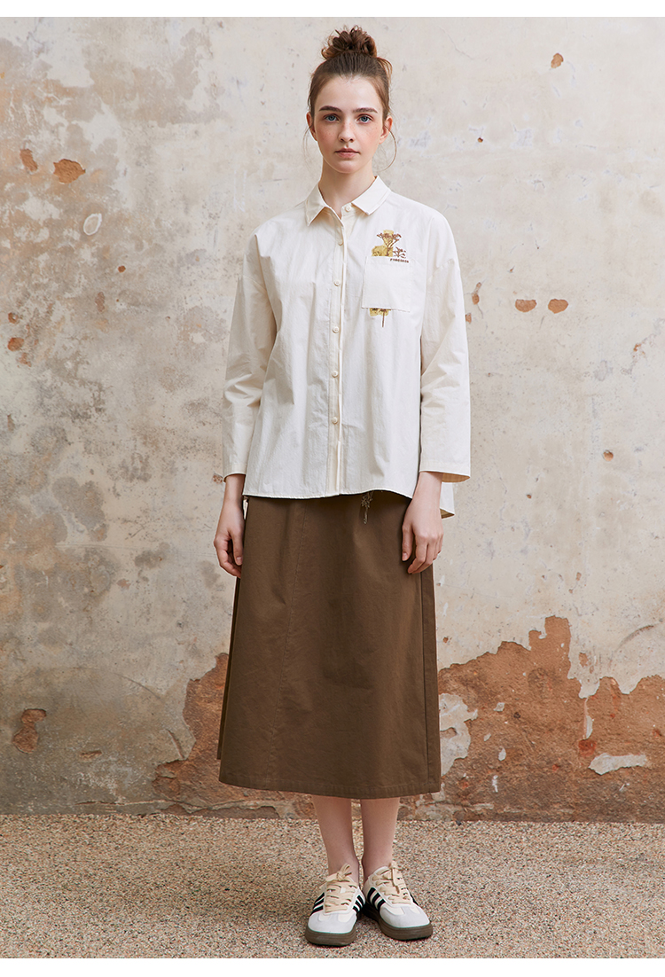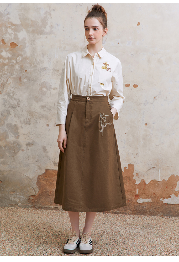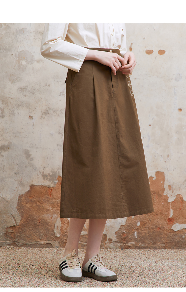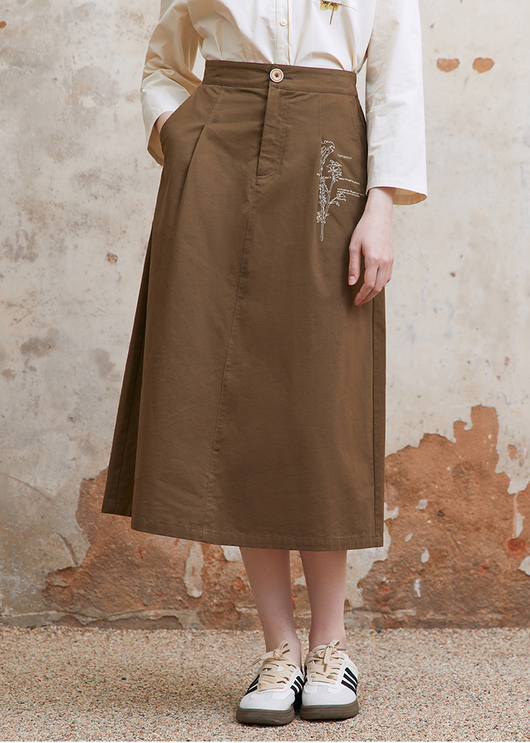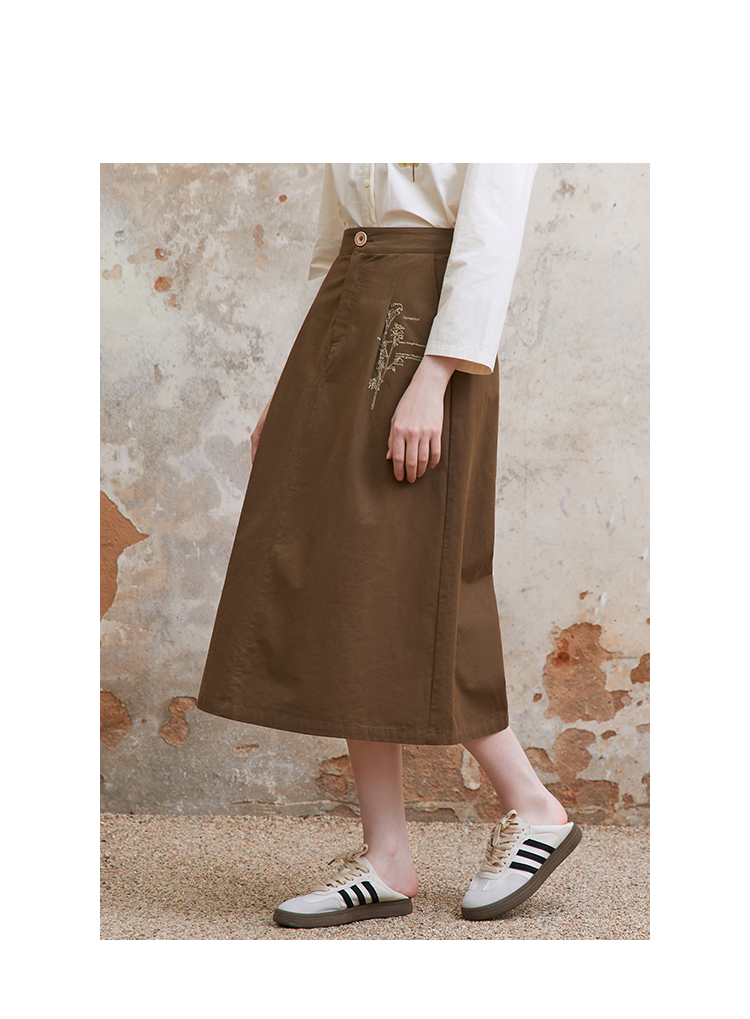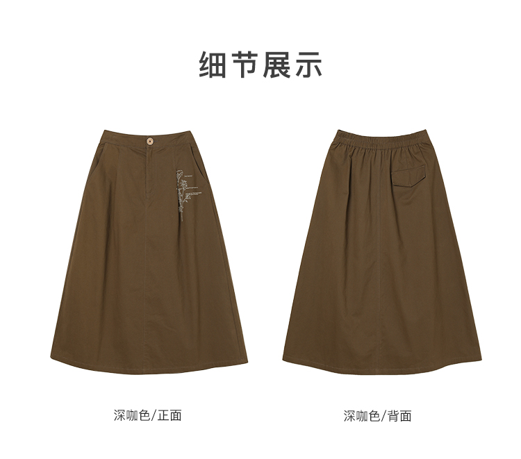 famecoco范可儿植物刺绣半身裙女松紧腰纯棉a字裙子FAC1HA011