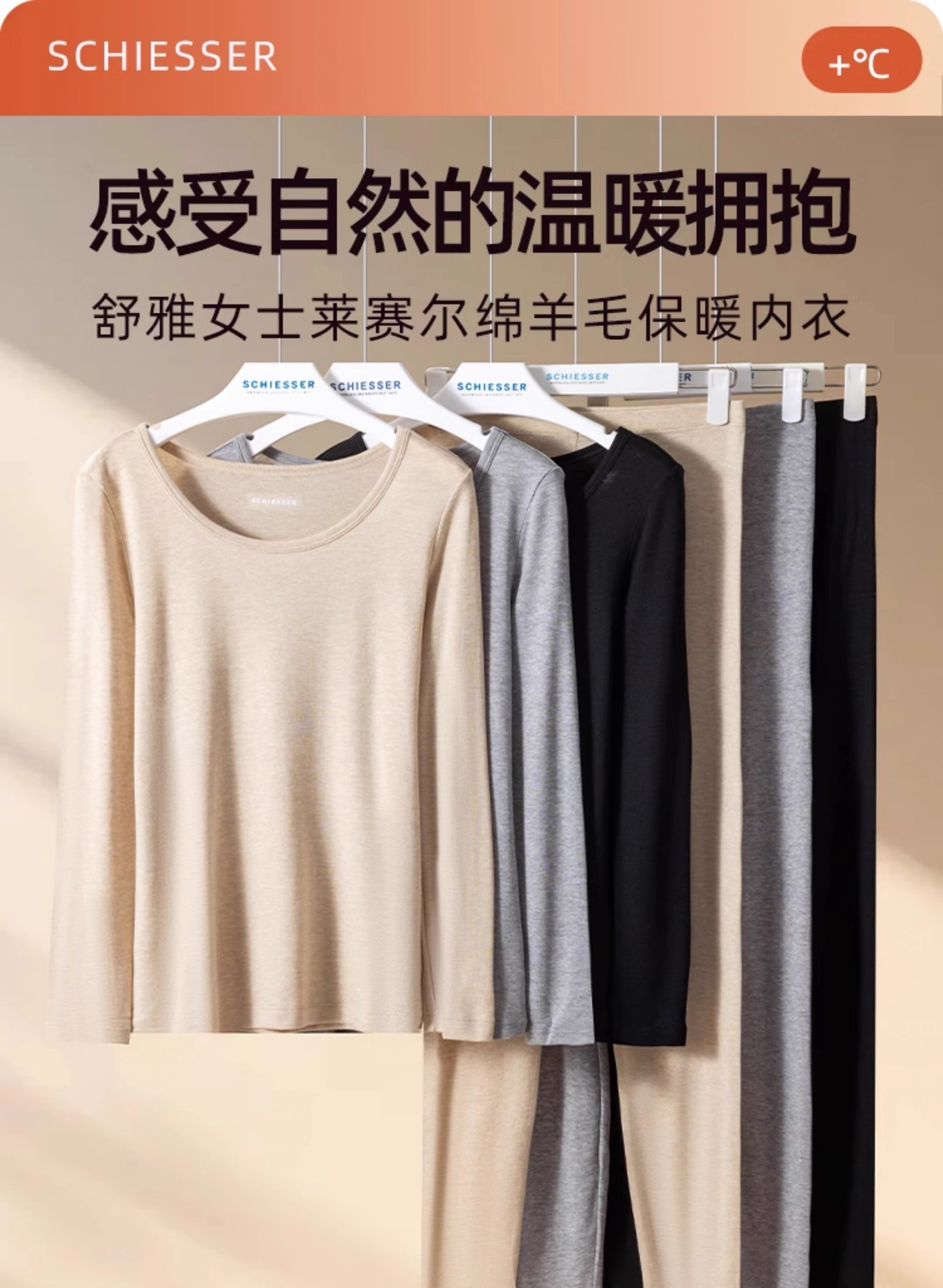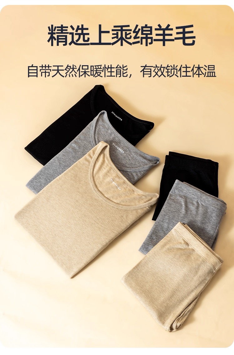 【罗纹天丝羊毛】SCHIESSER德国舒雅女士螺纹羊毛大圆领保暖套装30/23827W