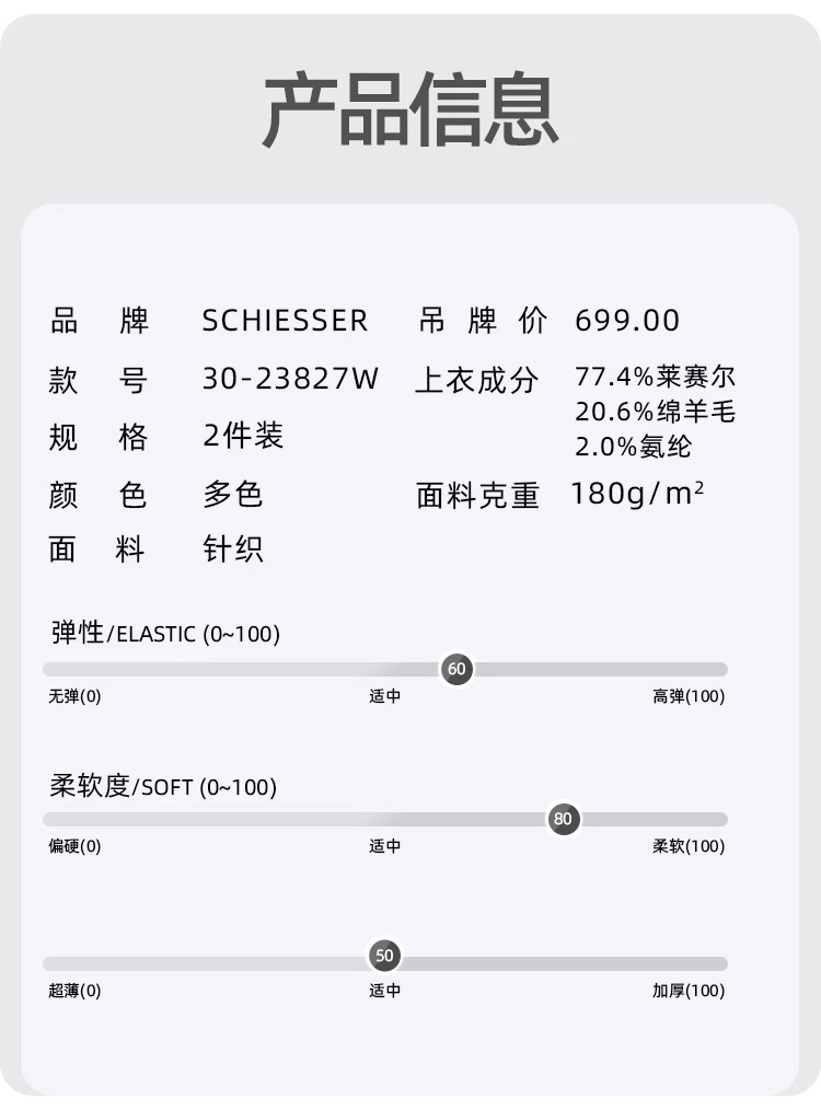 - 来自德国的SCHIESSER舒雅,专注做内衣一百四十余年,不遗余力的材料创新,因材而异的专业剪裁,健康环保的加工技术以及充满文化关注的时尚主题,做你认识之外的舒适内衣。