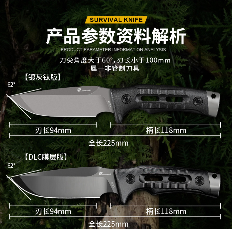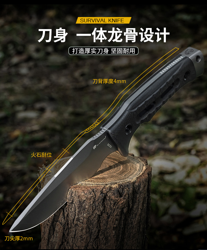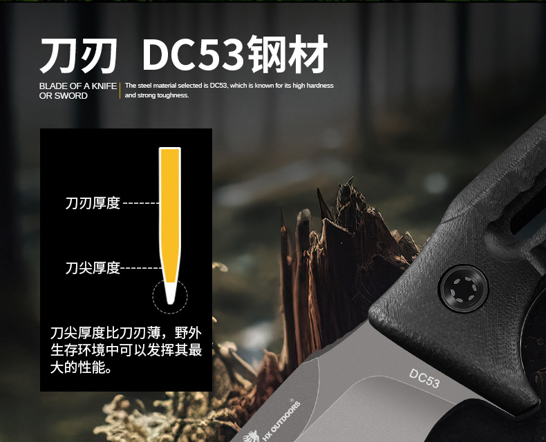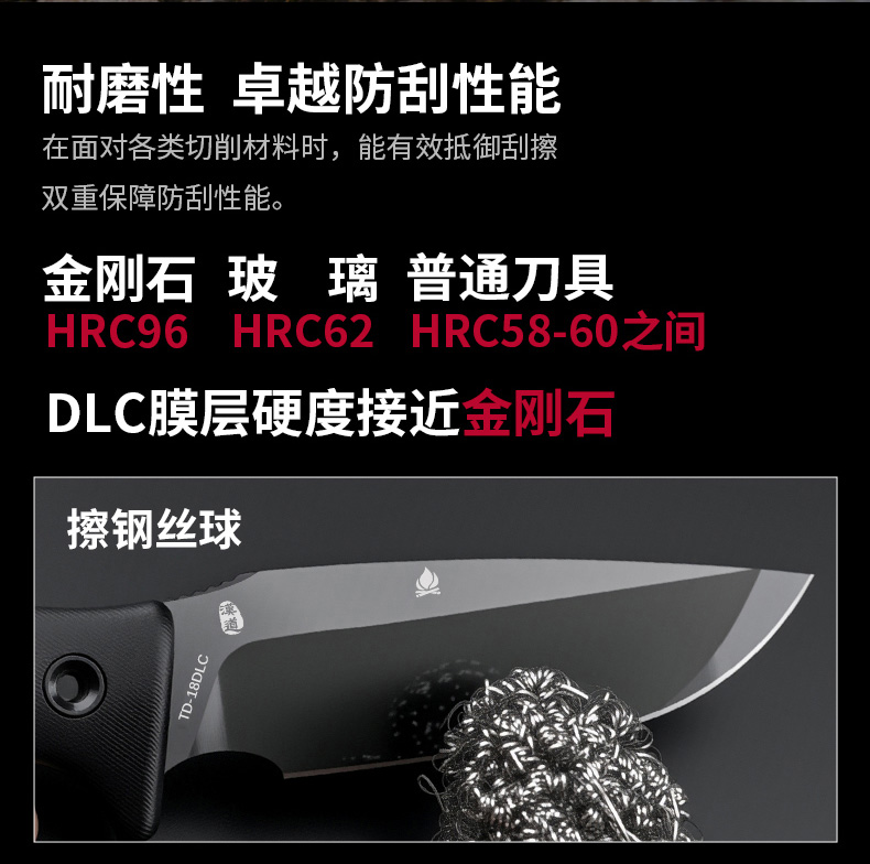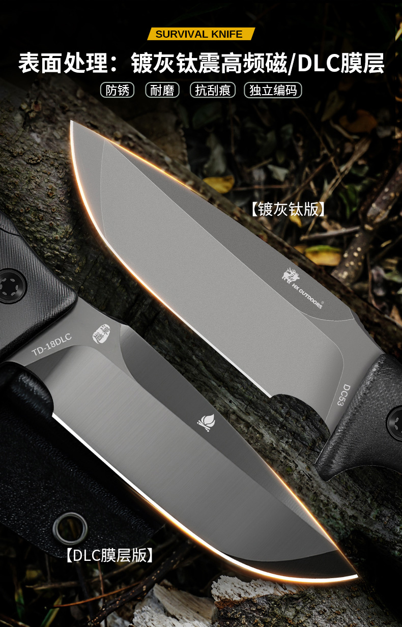 汉道洛克DC53版户外水果刀DLC涂层