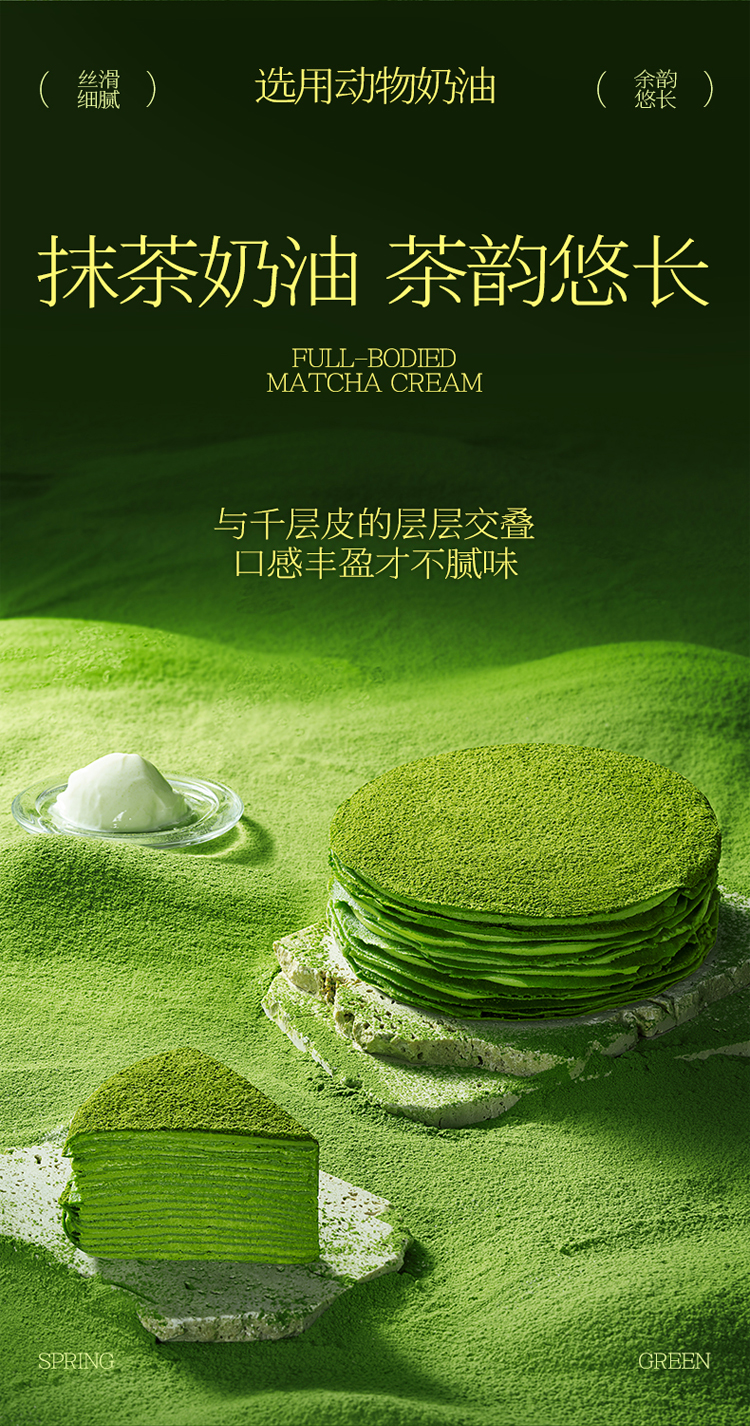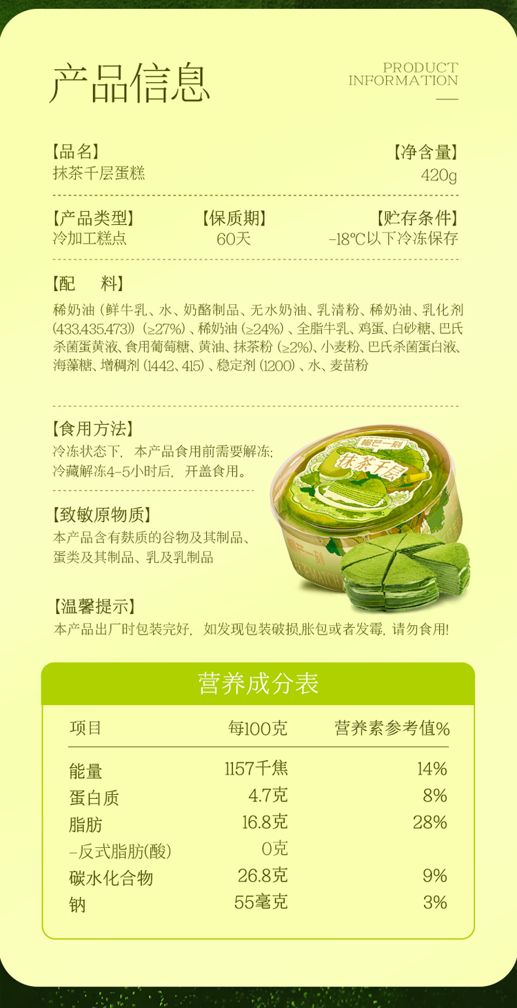 抹茶千层蛋糕动物奶油420g/盒-生日蛋糕甜品高品质抹茶 | 榴芒一刻
