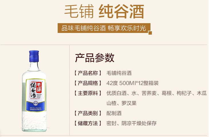 毛铺纯谷酒 42度 500ml*12瓶(送1支本品)