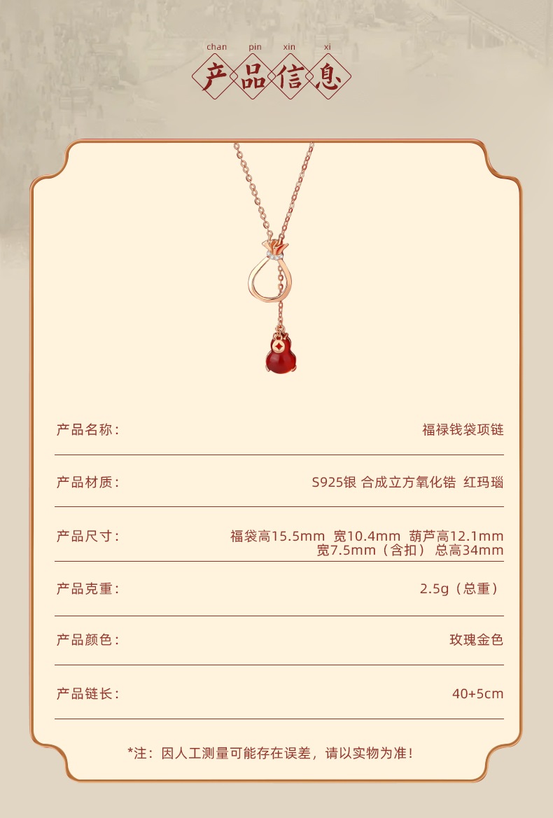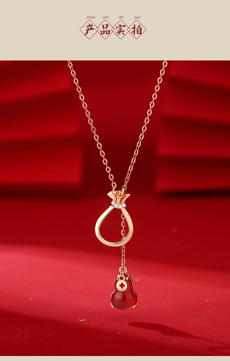 【钱来钱来】卡蒂罗/KADER 好运福禄国风转运锁骨链 新中式福气满满本命年钱袋流苏吊坠 招财进宝小葫芦项链