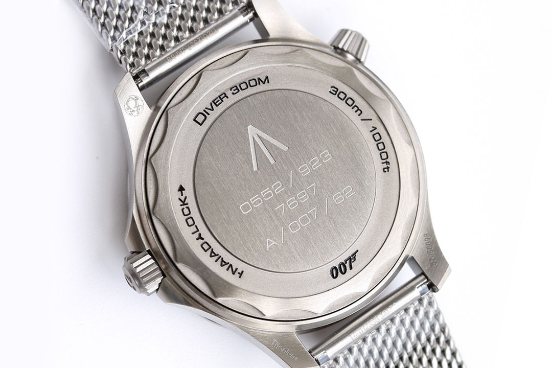 vs厂欧米茄海马007无暇赴死开模尺寸与原装42mm一致单向可拧动黑色外圈,3点位置表冠,11点位置排氧阀。不过仔细一看其实这款海马还是非常明显区别于其他款海马300的,首先是镜面上。这款海马300镜面是拱起的,蓝宝石镜面拱形的设计,在灯光下凸显质感,复刻表的好坏细节是第二,第一的是给人的质感,如果质感不做到位那么就给不了第一眼“正品”的效果。