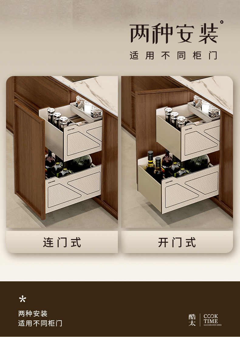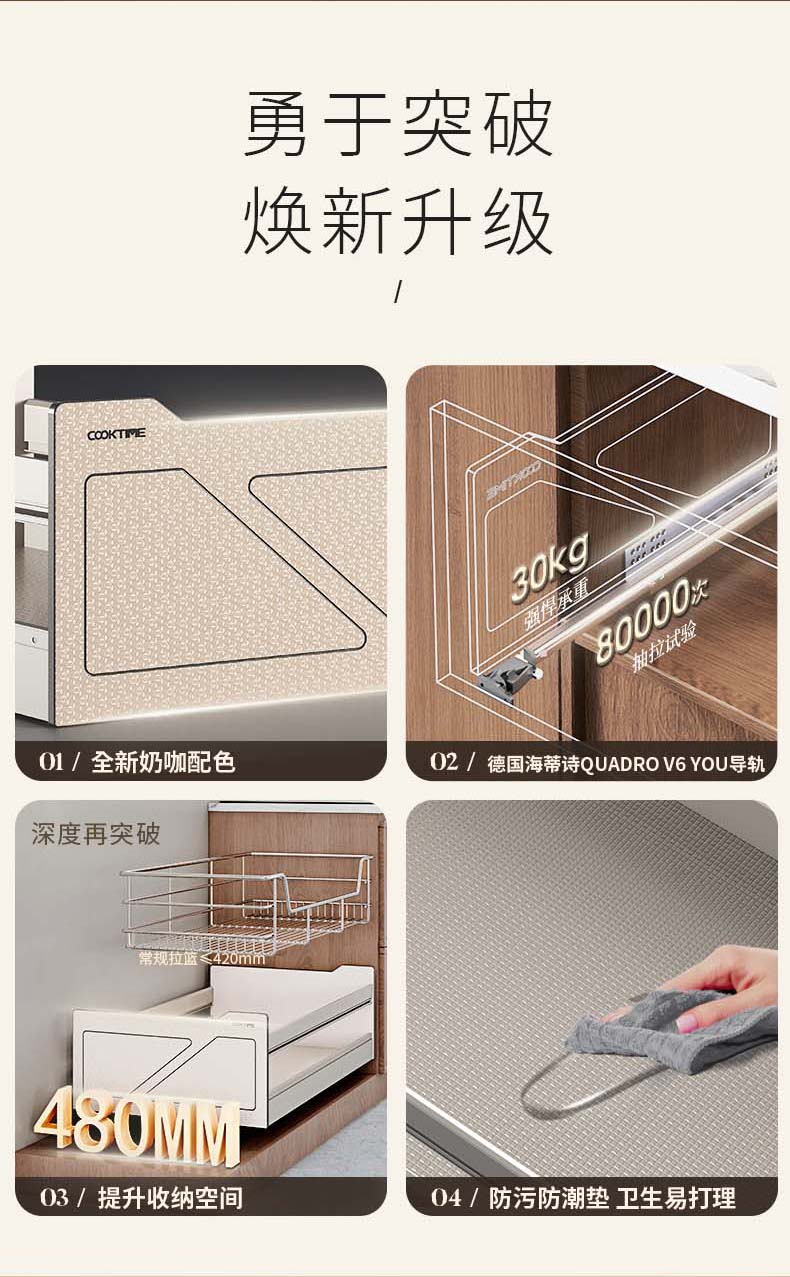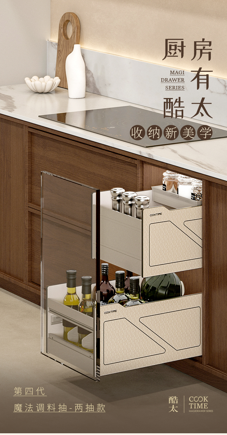 - 酷太坚持8年自主研发,已获得专利证书130项,拥有一套领先市场的厨房收纳系统,为千万中国家庭解决厨房脏乱差,缔造厨房新生活。