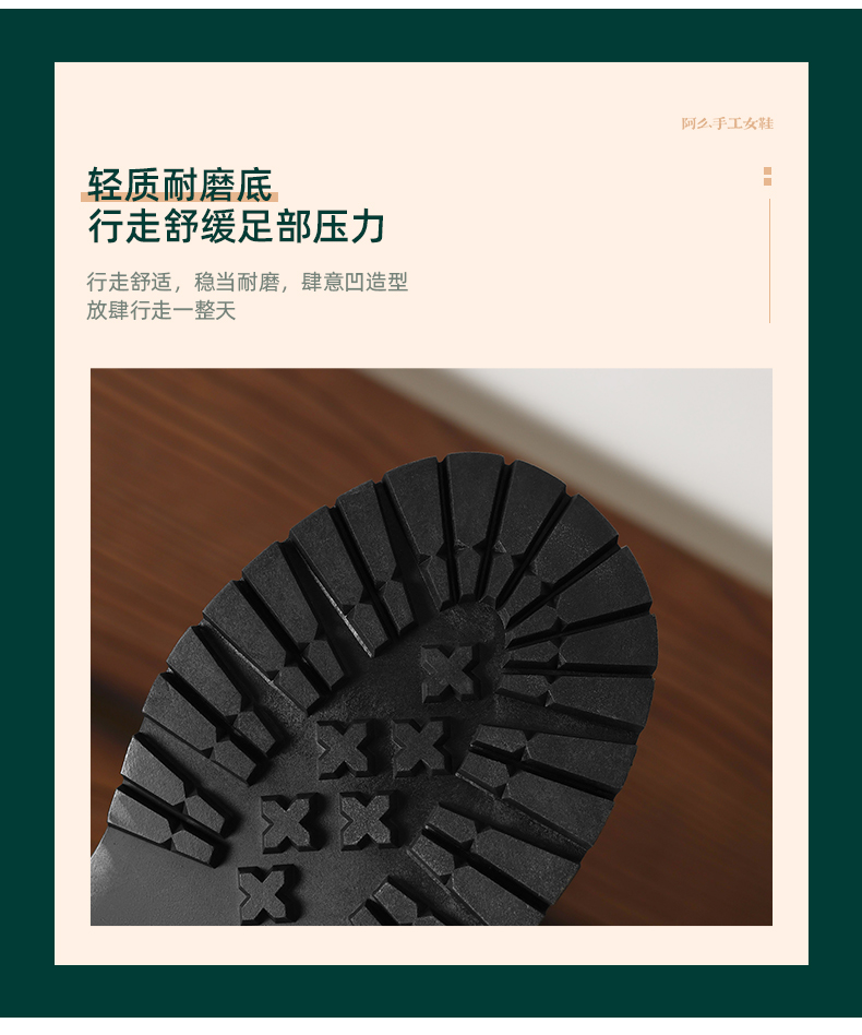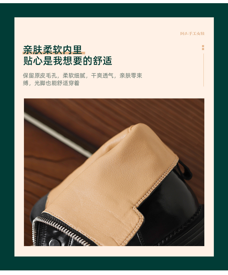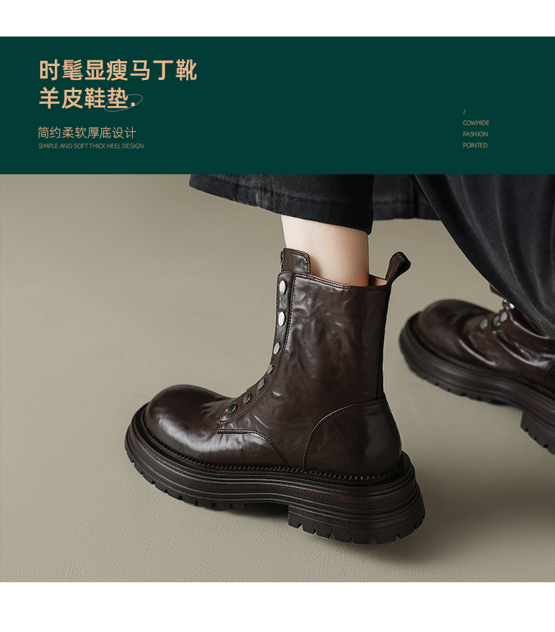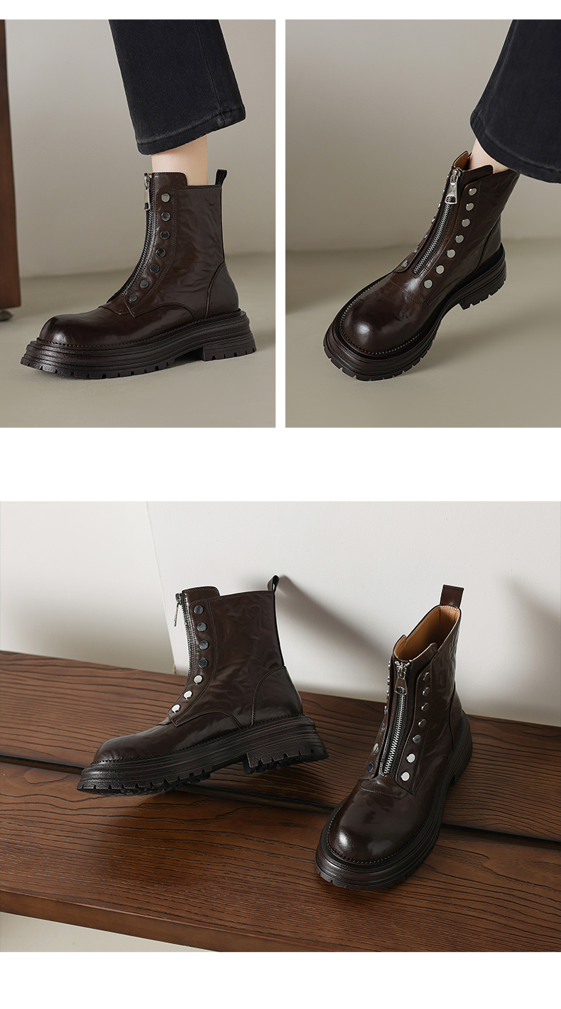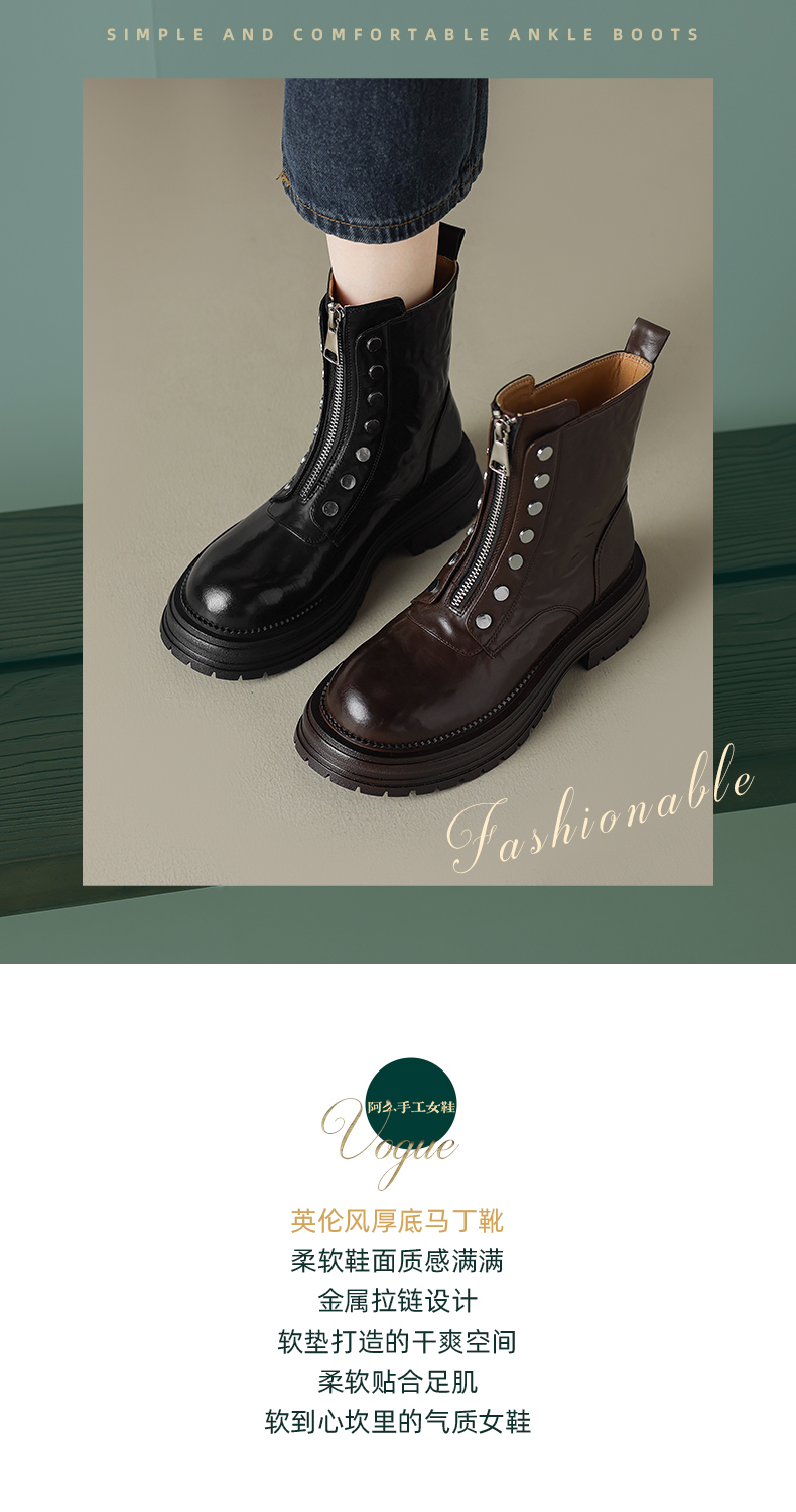 阿么手工女鞋铆钉前拉链真皮短靴女厚底显瘦英伦风复古小众4.5CM