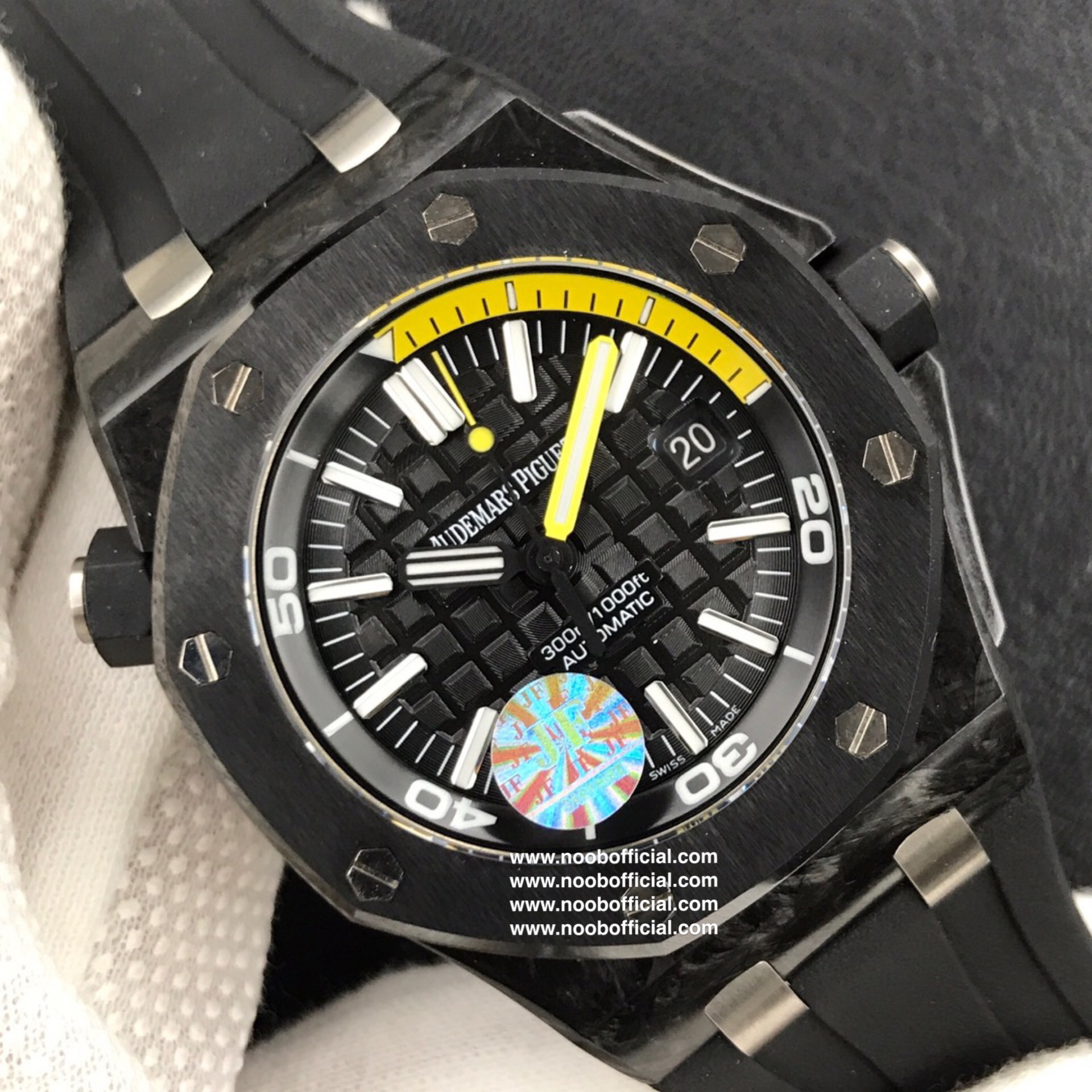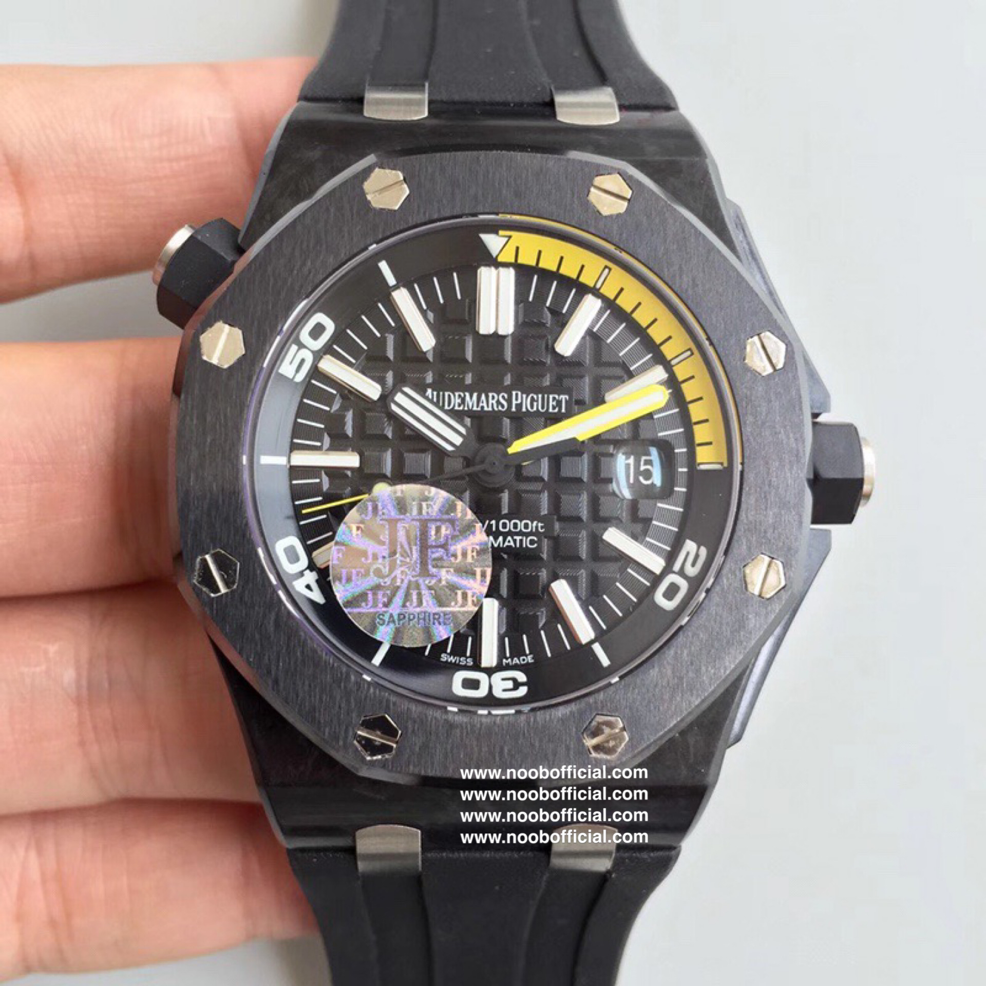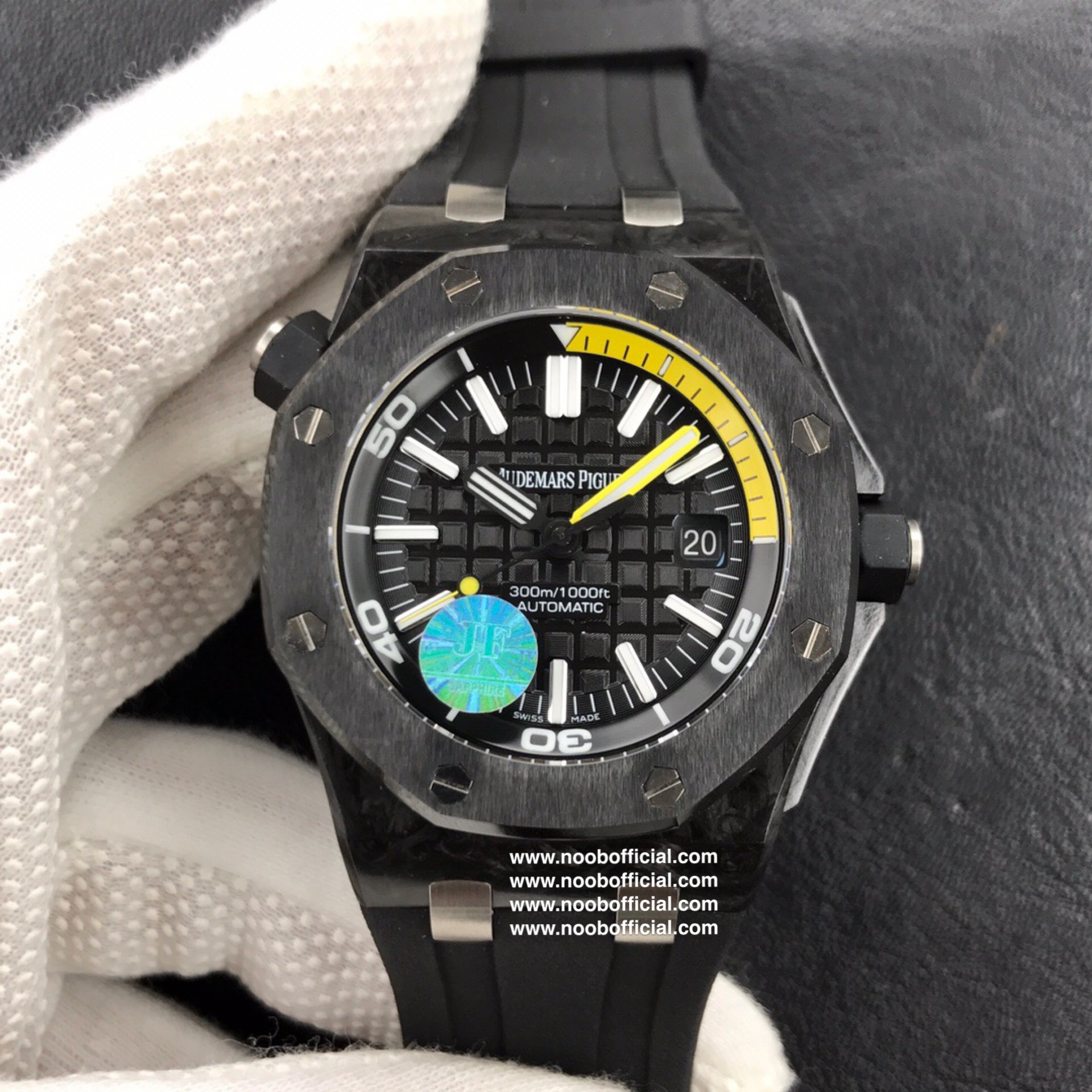 JF厂神器 爱彼AP 皇家橡树离岸型DIVER潜水腕表,升级版锻造碳纤维 15706,其升级特点:1.面玻璃升级为超通透性2.圈口内影升级更接近正品3.表面升级为CD纹效果