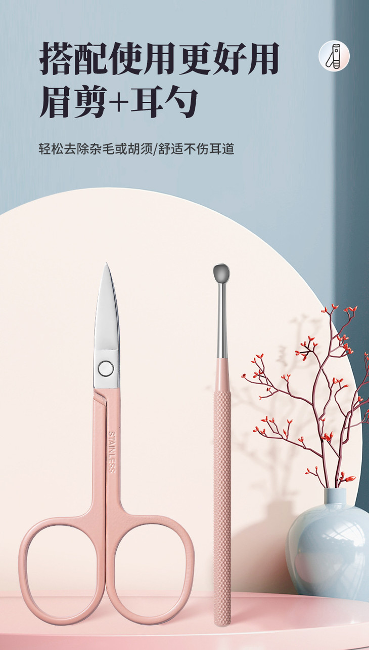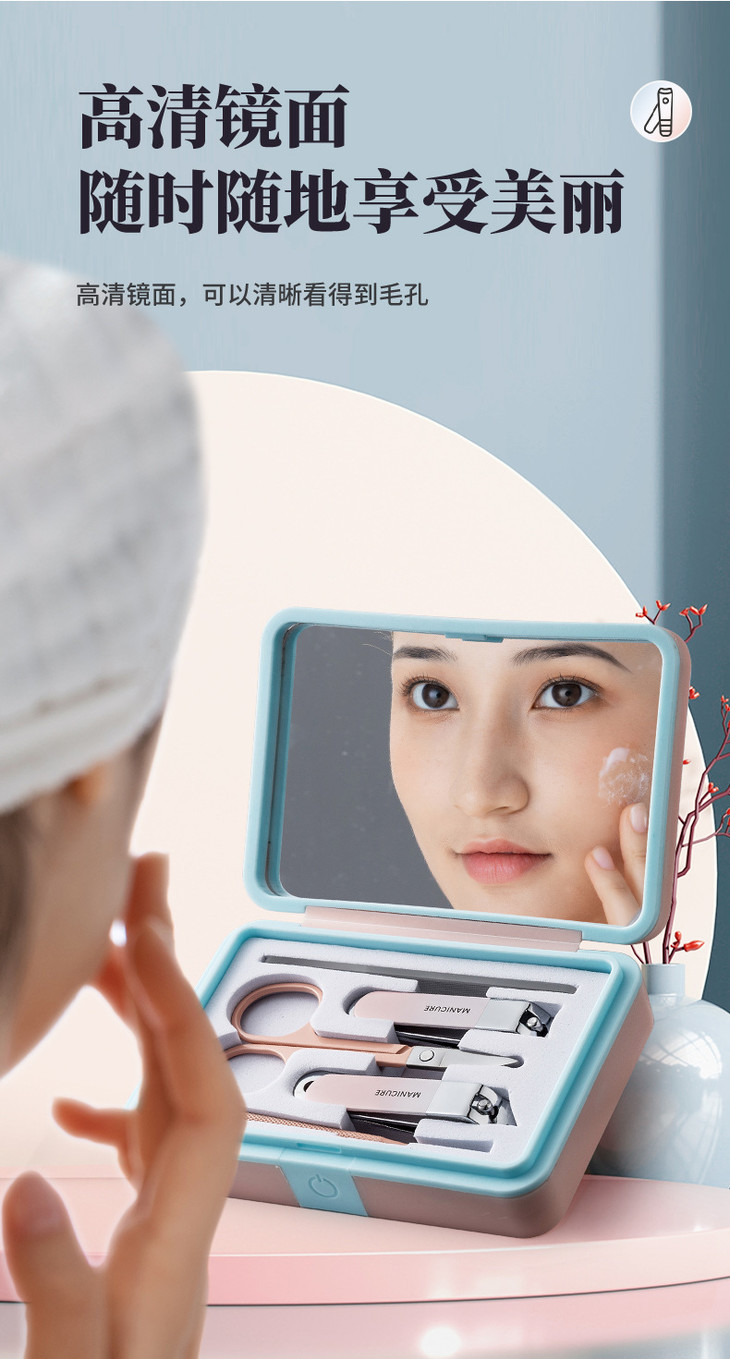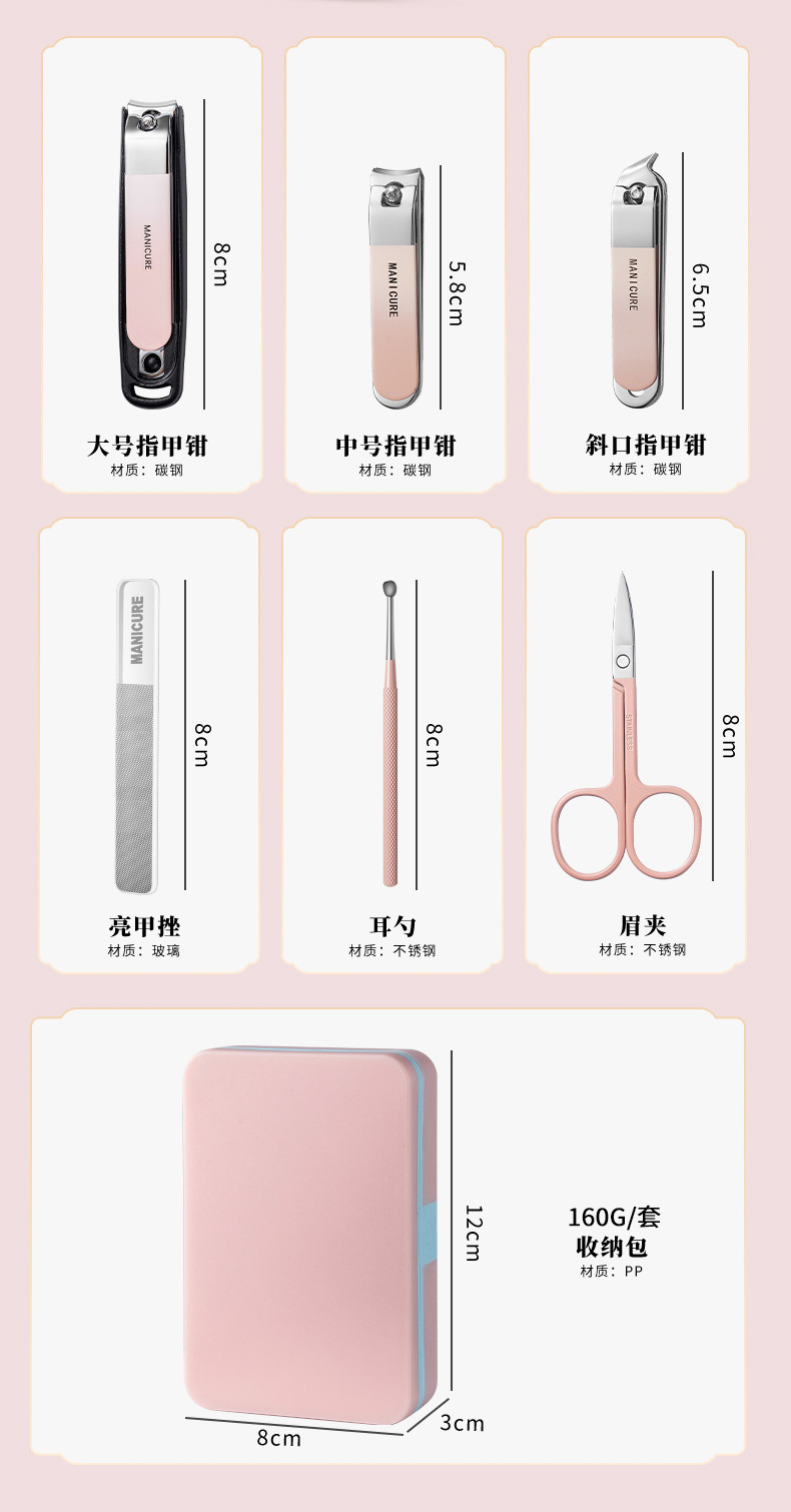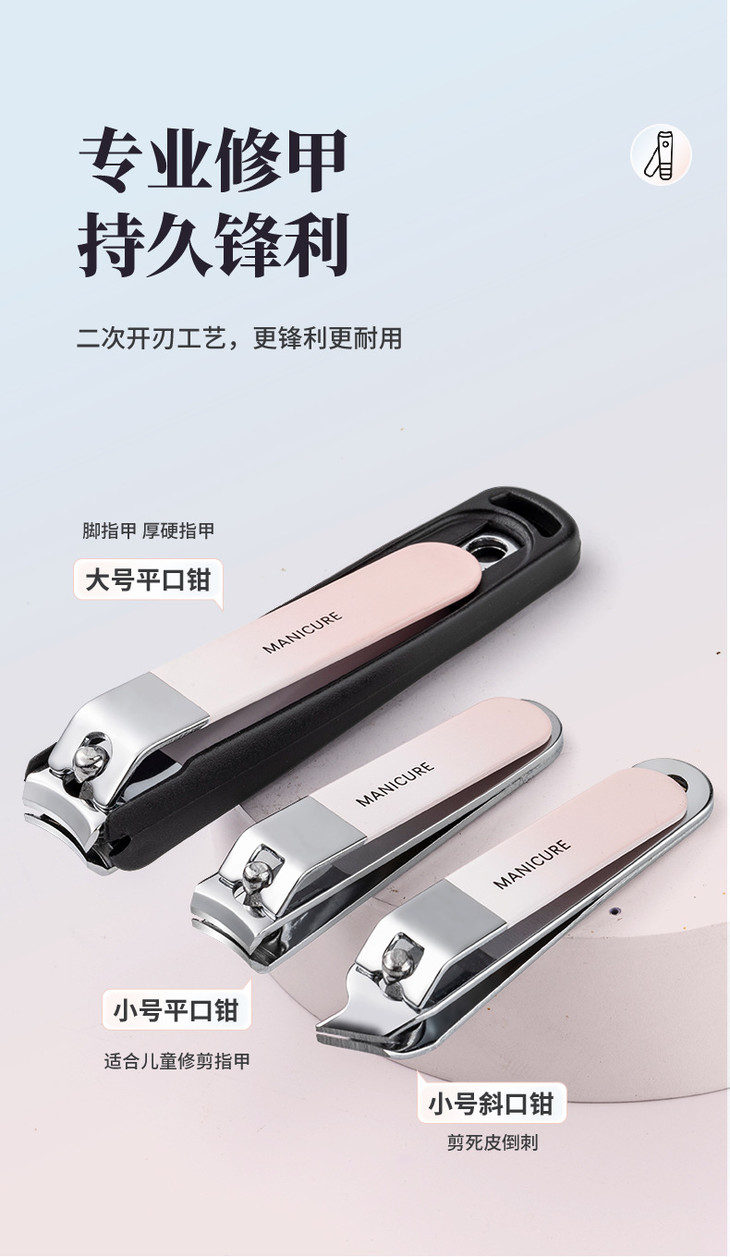 【不锈钢指甲刀套装】指甲钳全套带镜子家用便携修甲美甲工具