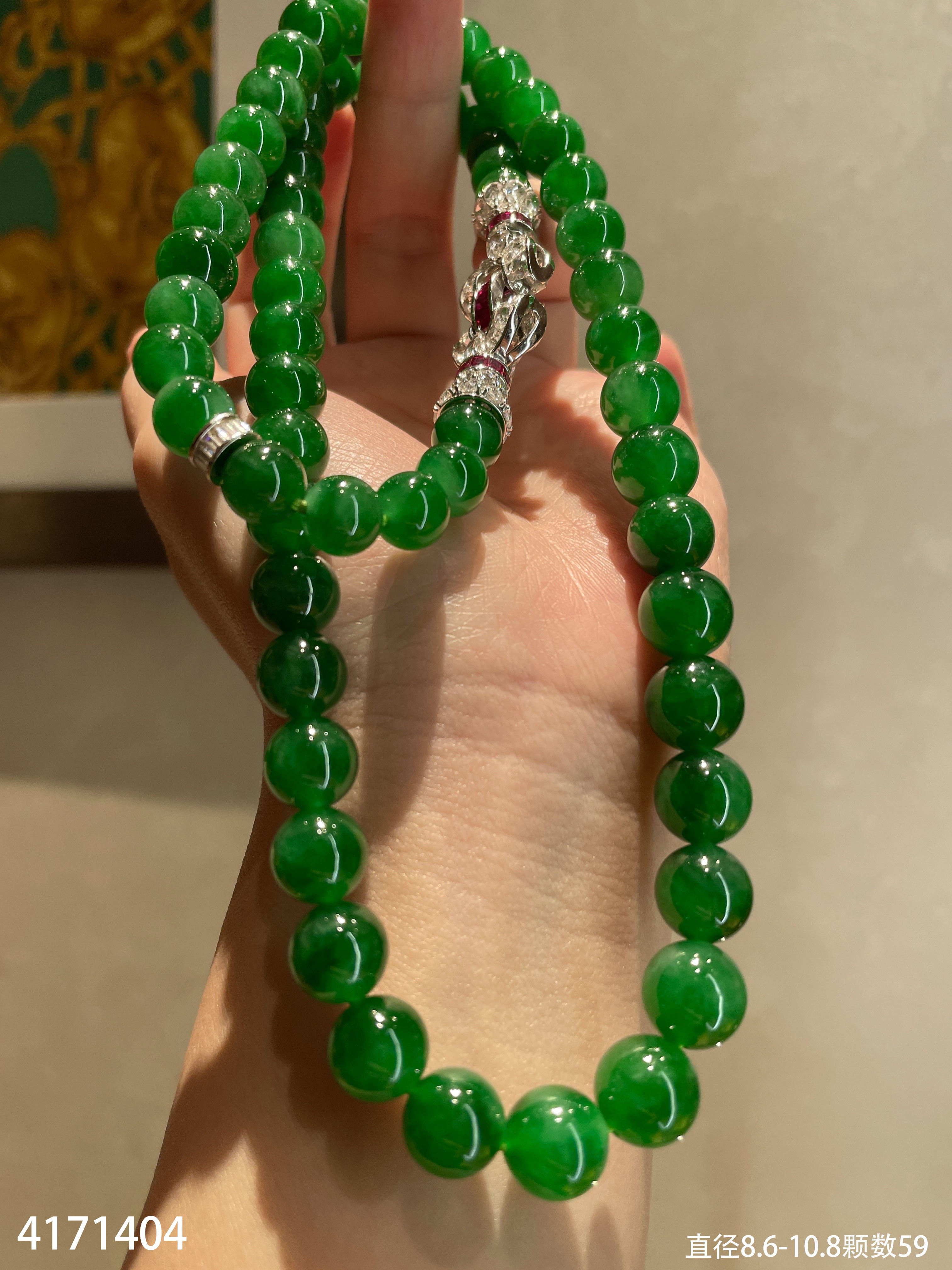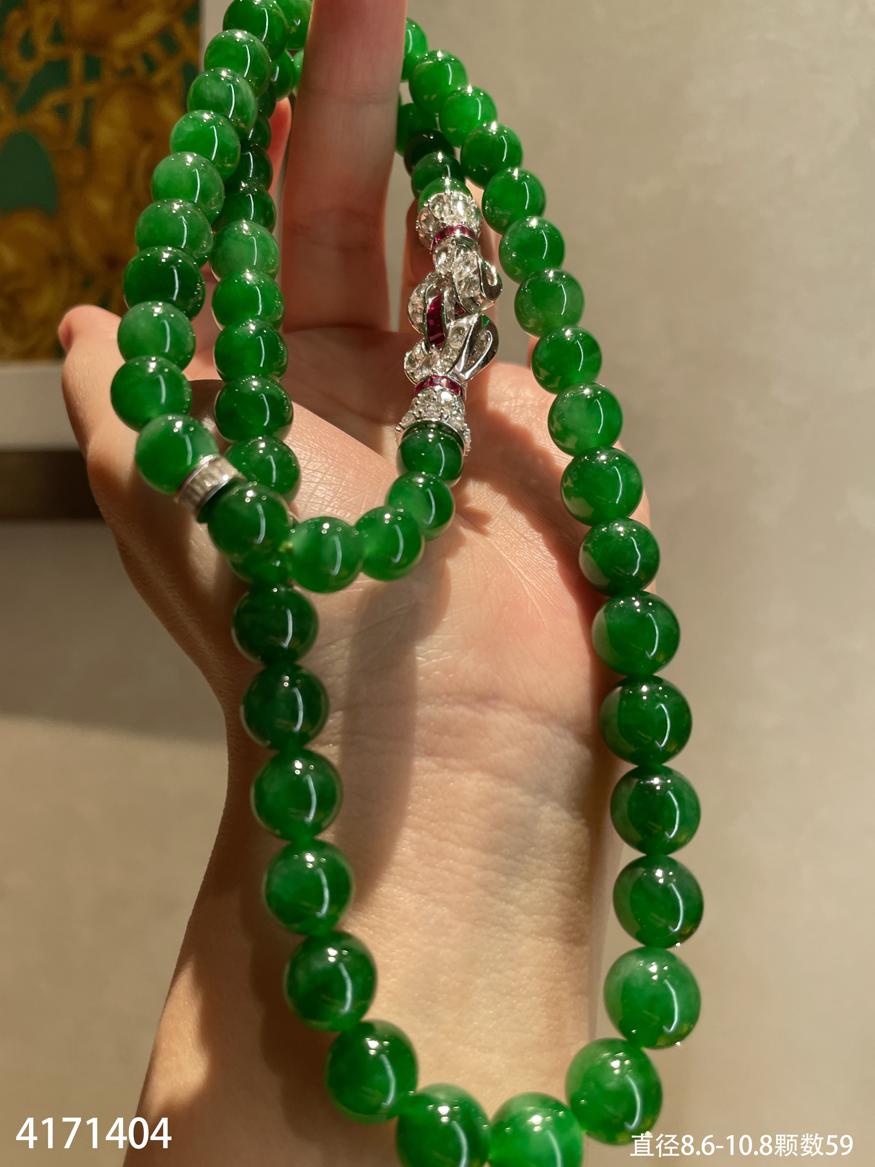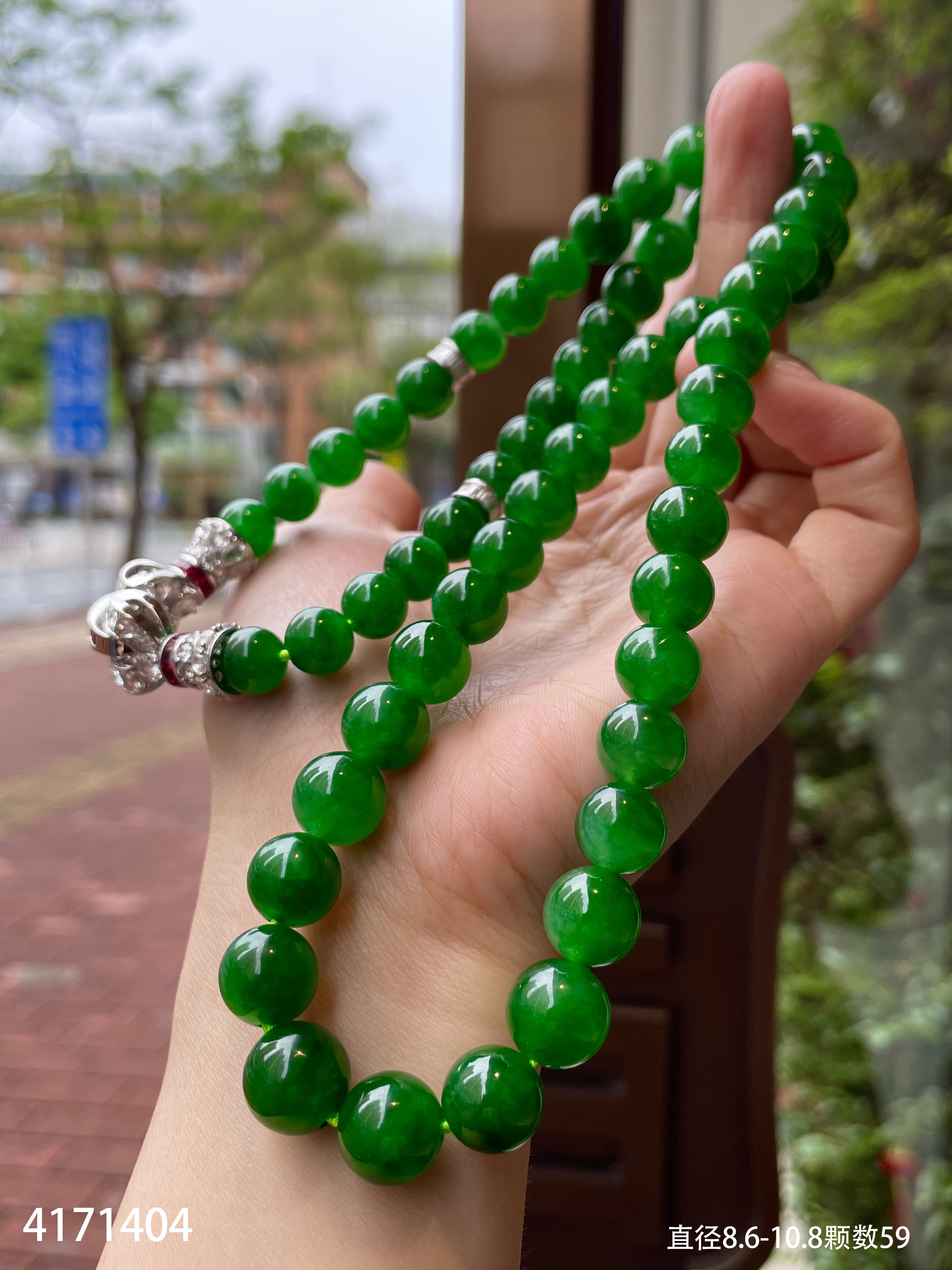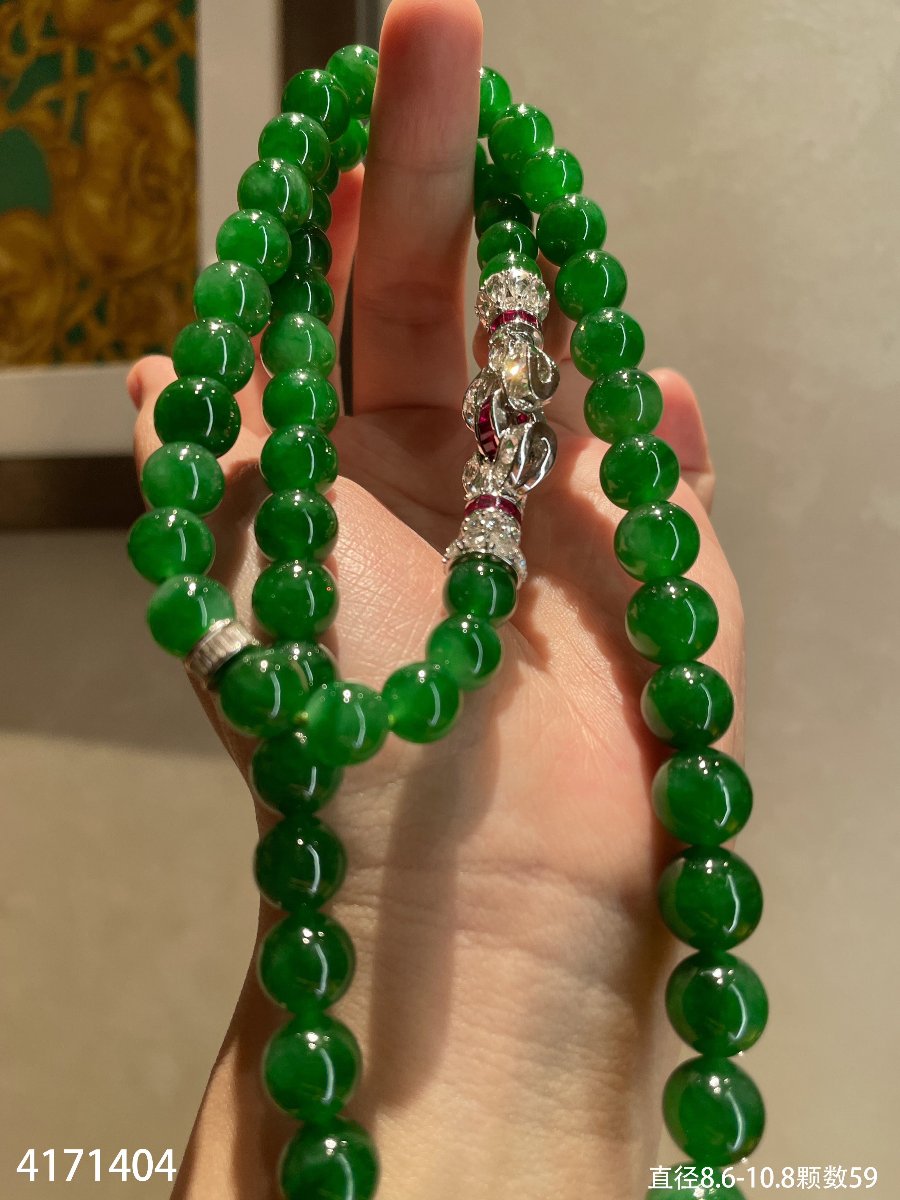 老坑辣绿珠链【4171404】具体价格微信咨询