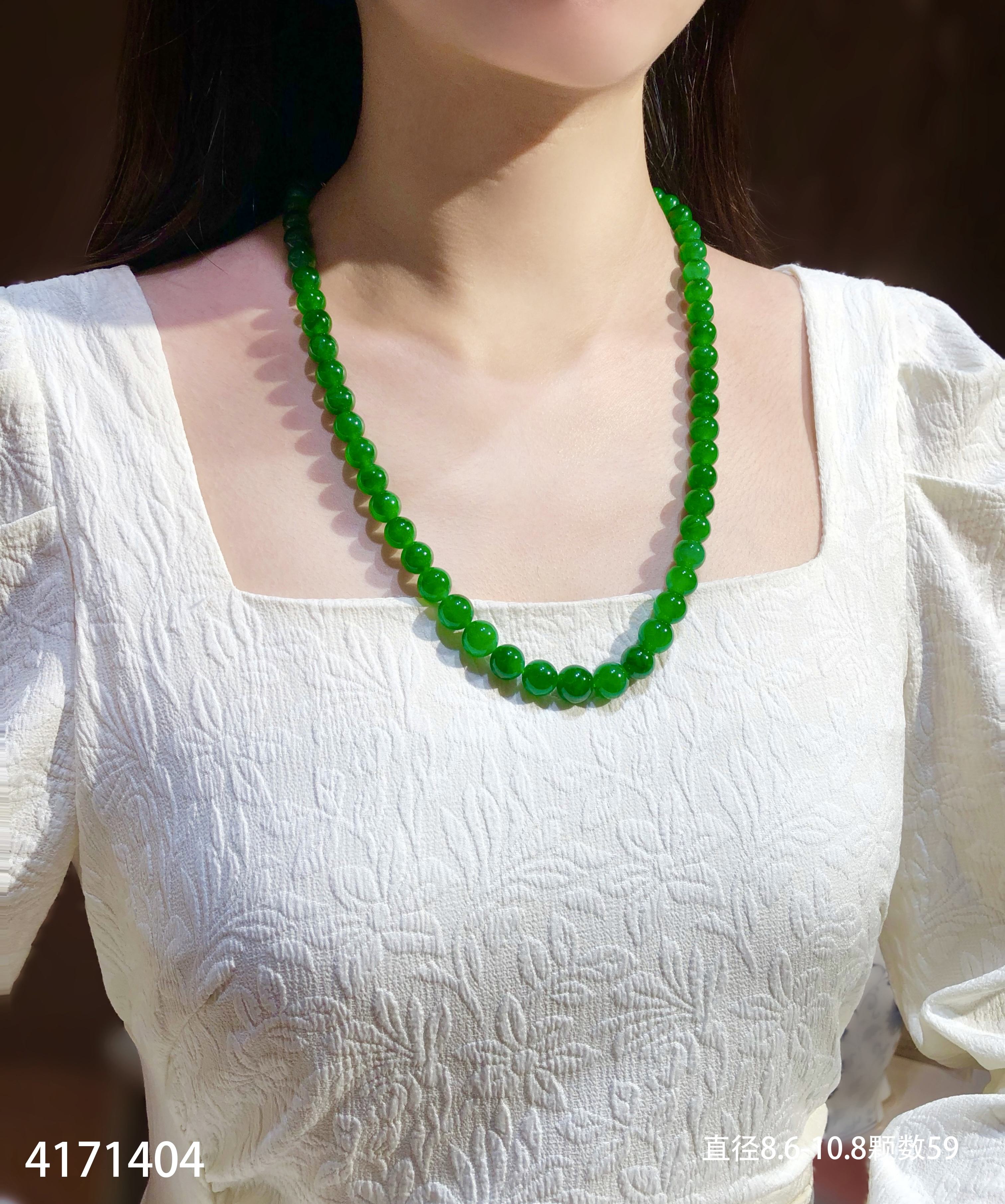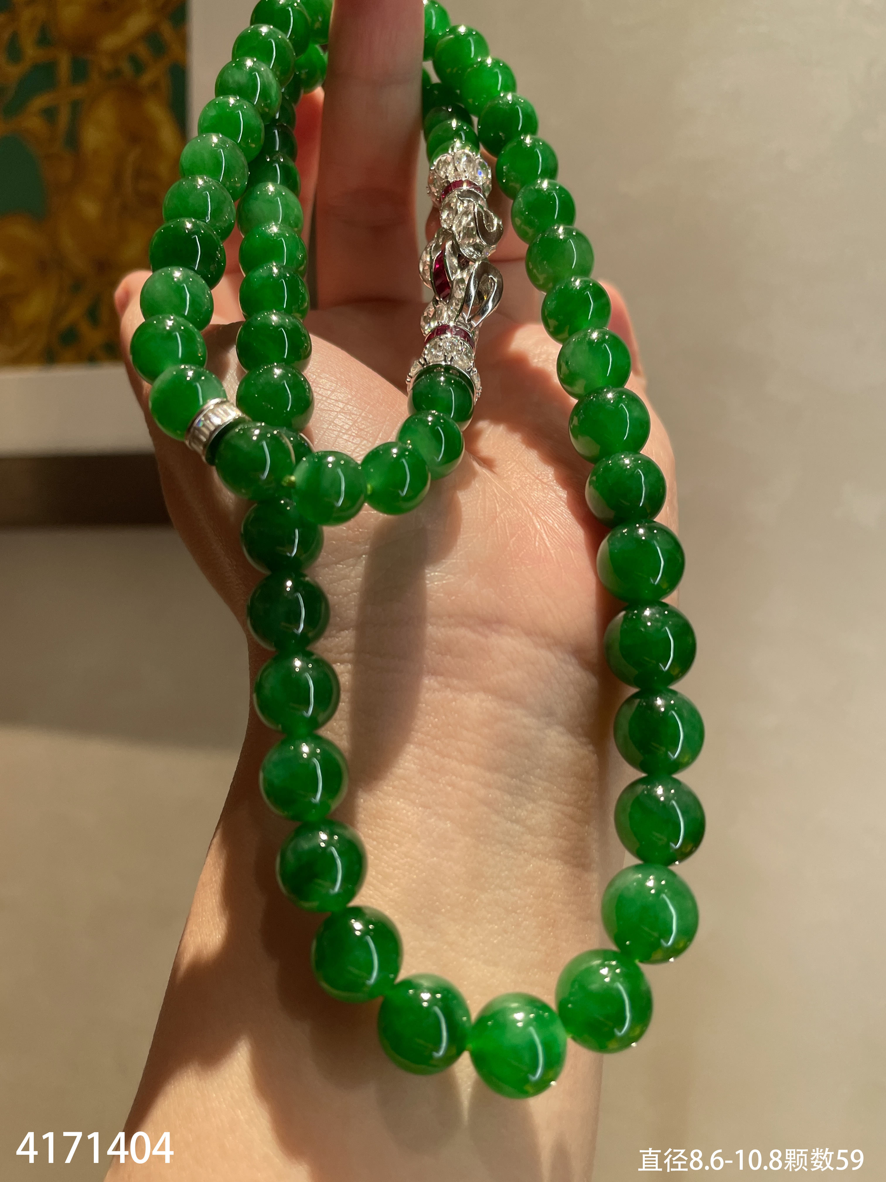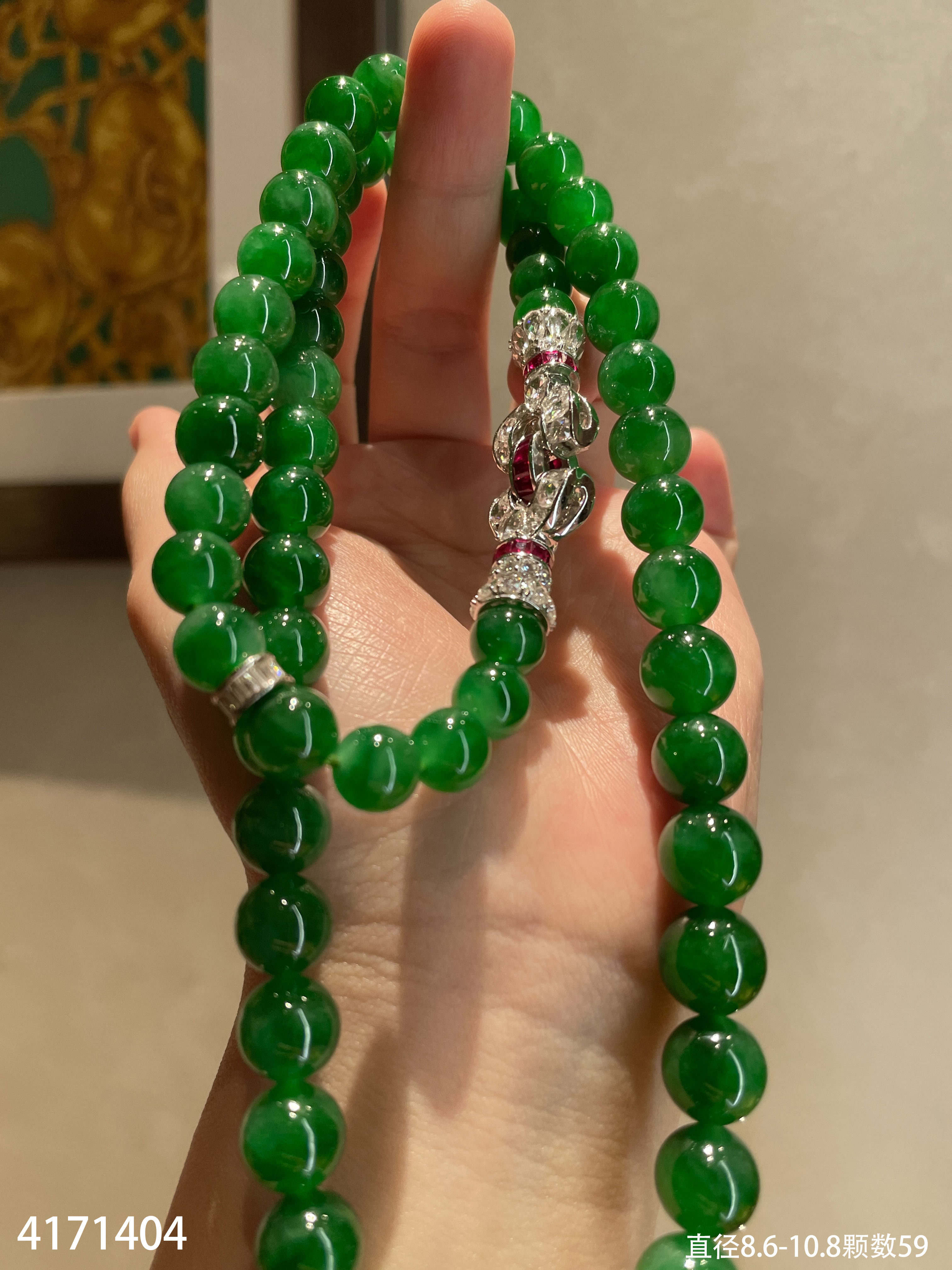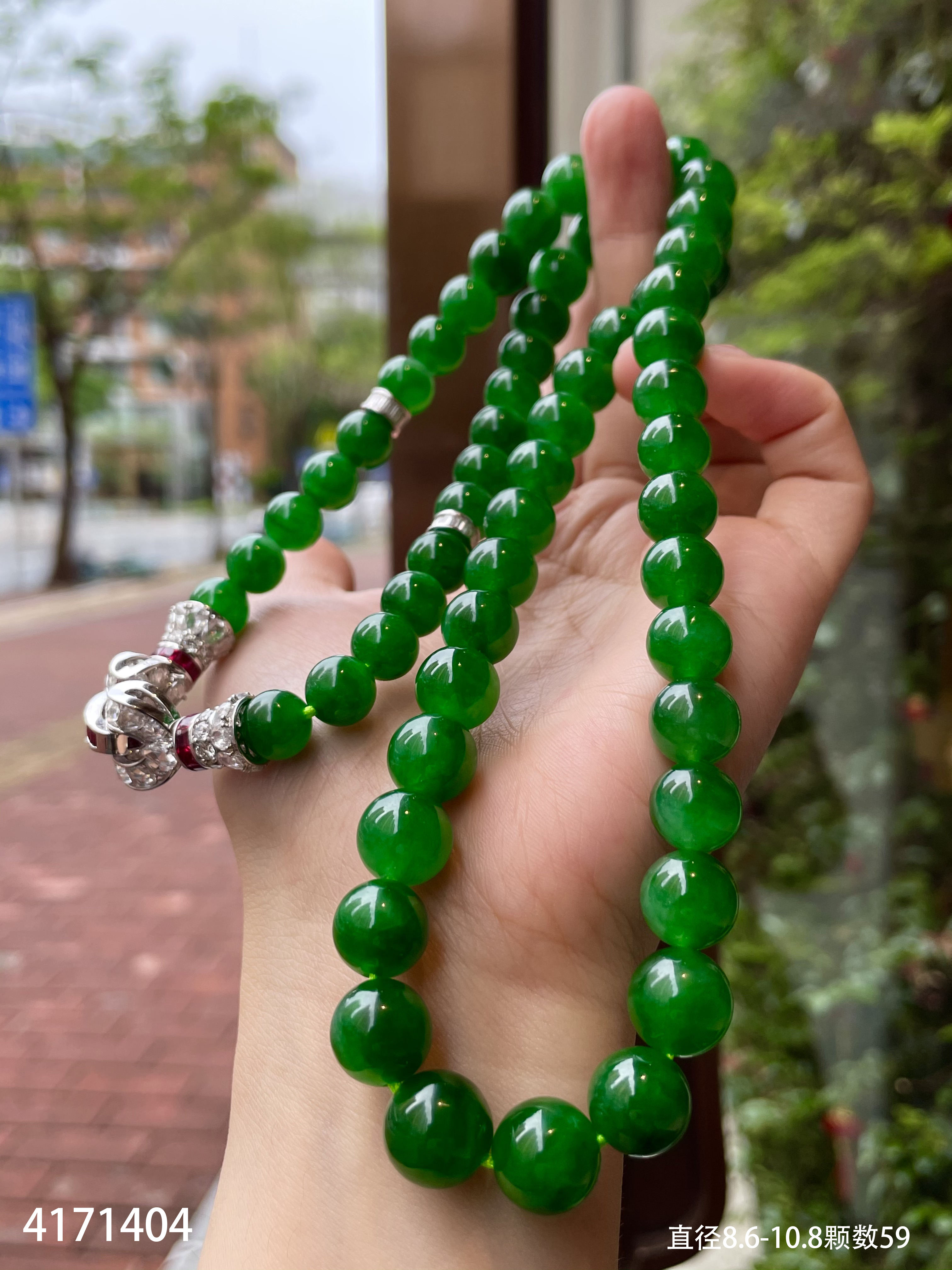 老坑辣绿珠链【4171404】具体价格微信咨询
