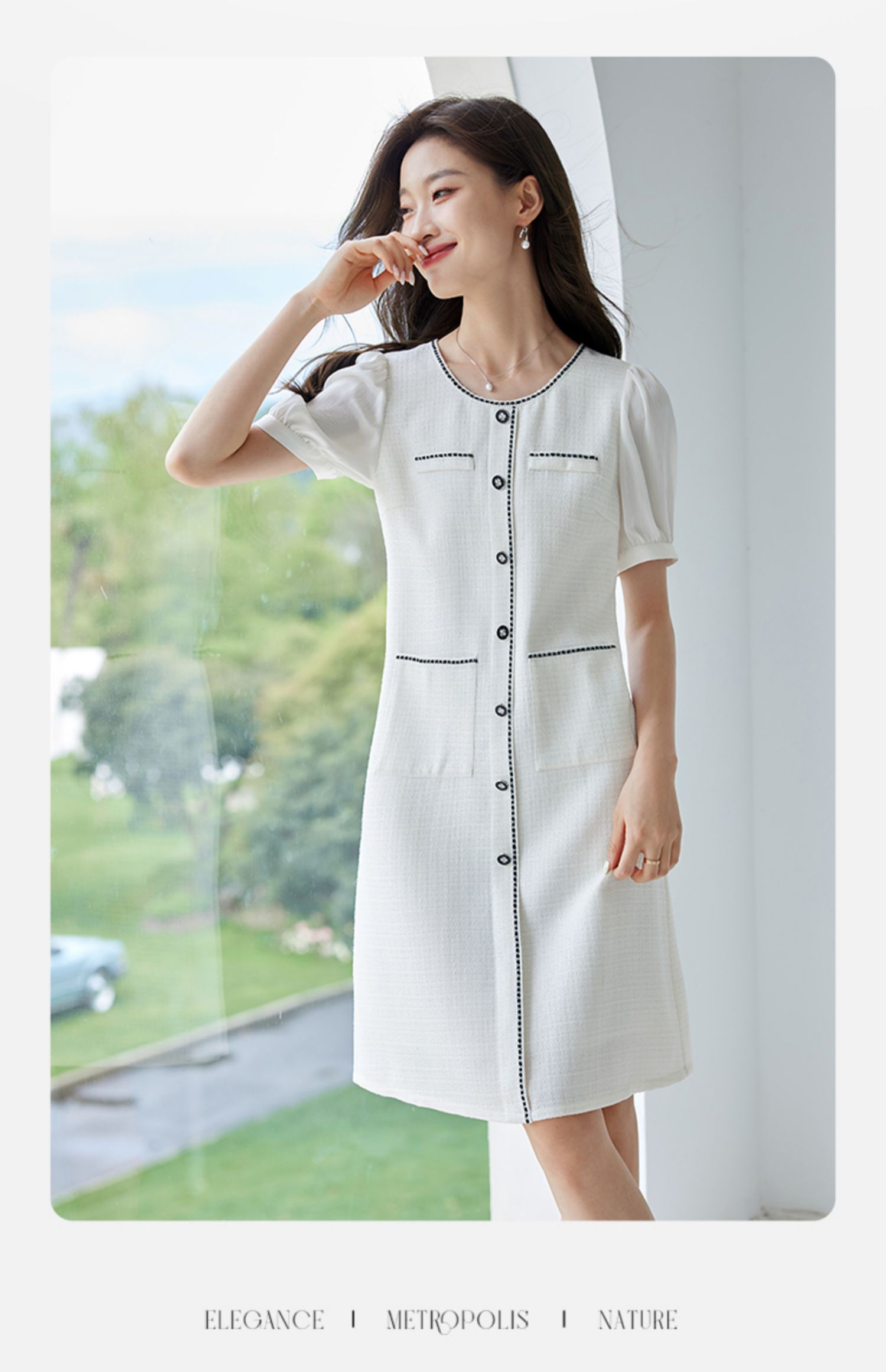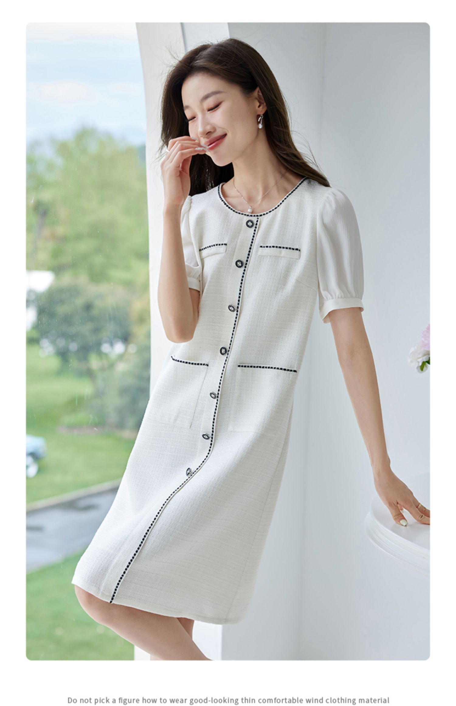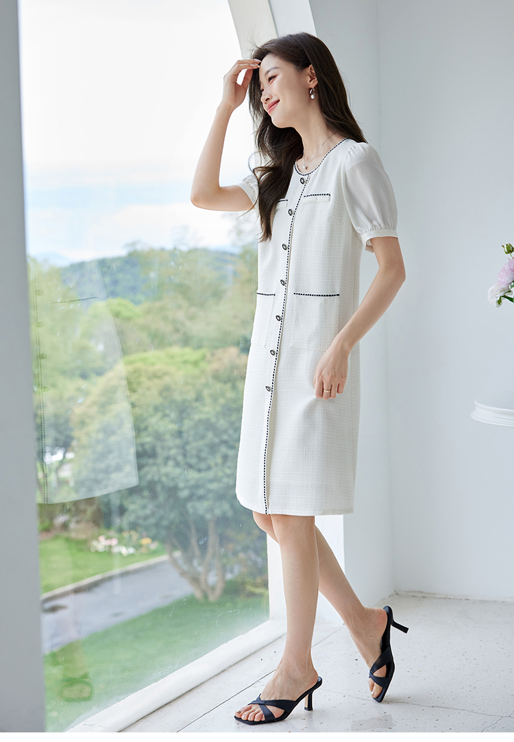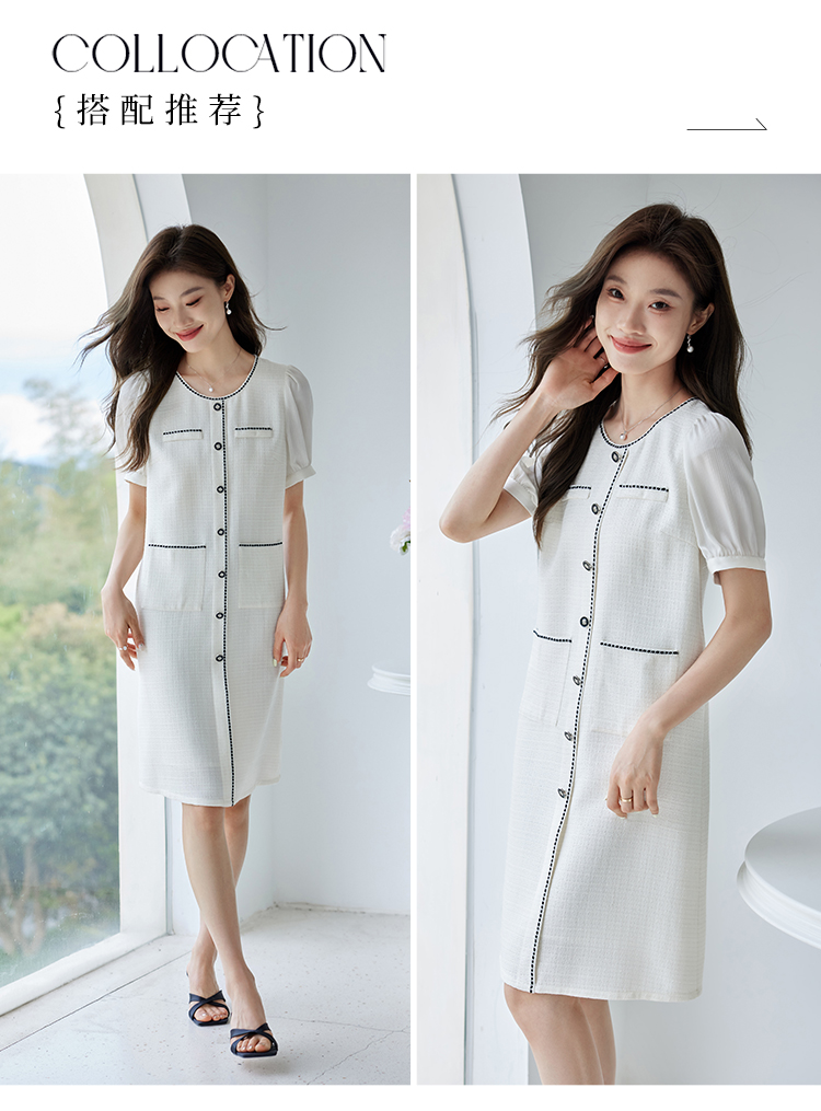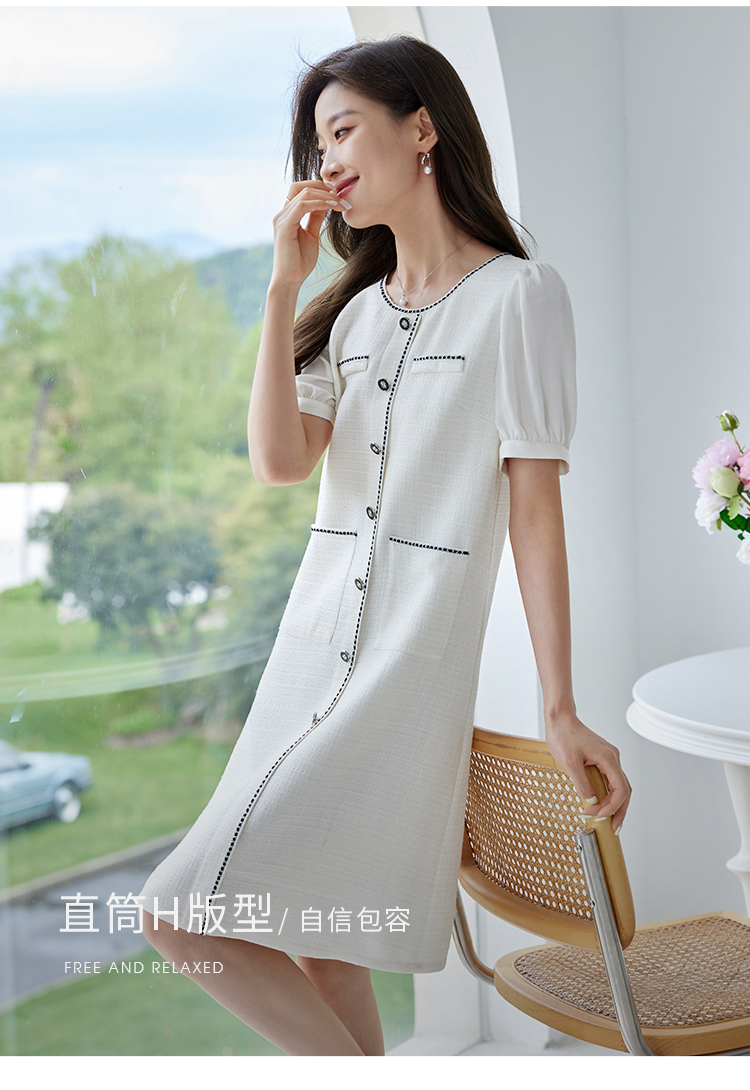 【专属特价】熙世界2025夏季法式小香风白色连衣裙高级感宽松遮肚子直筒裙子
