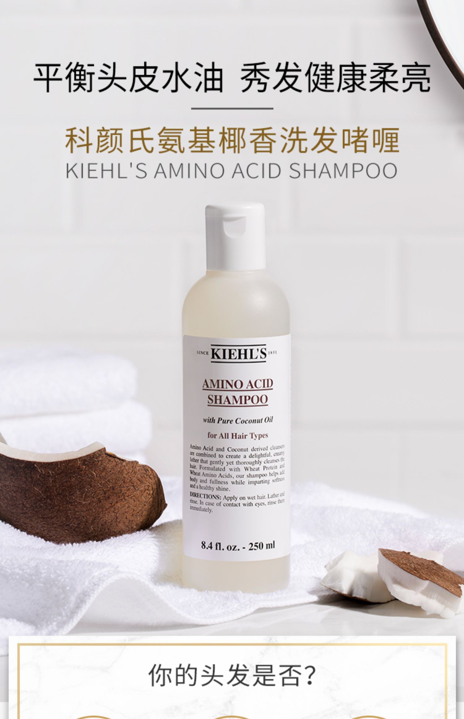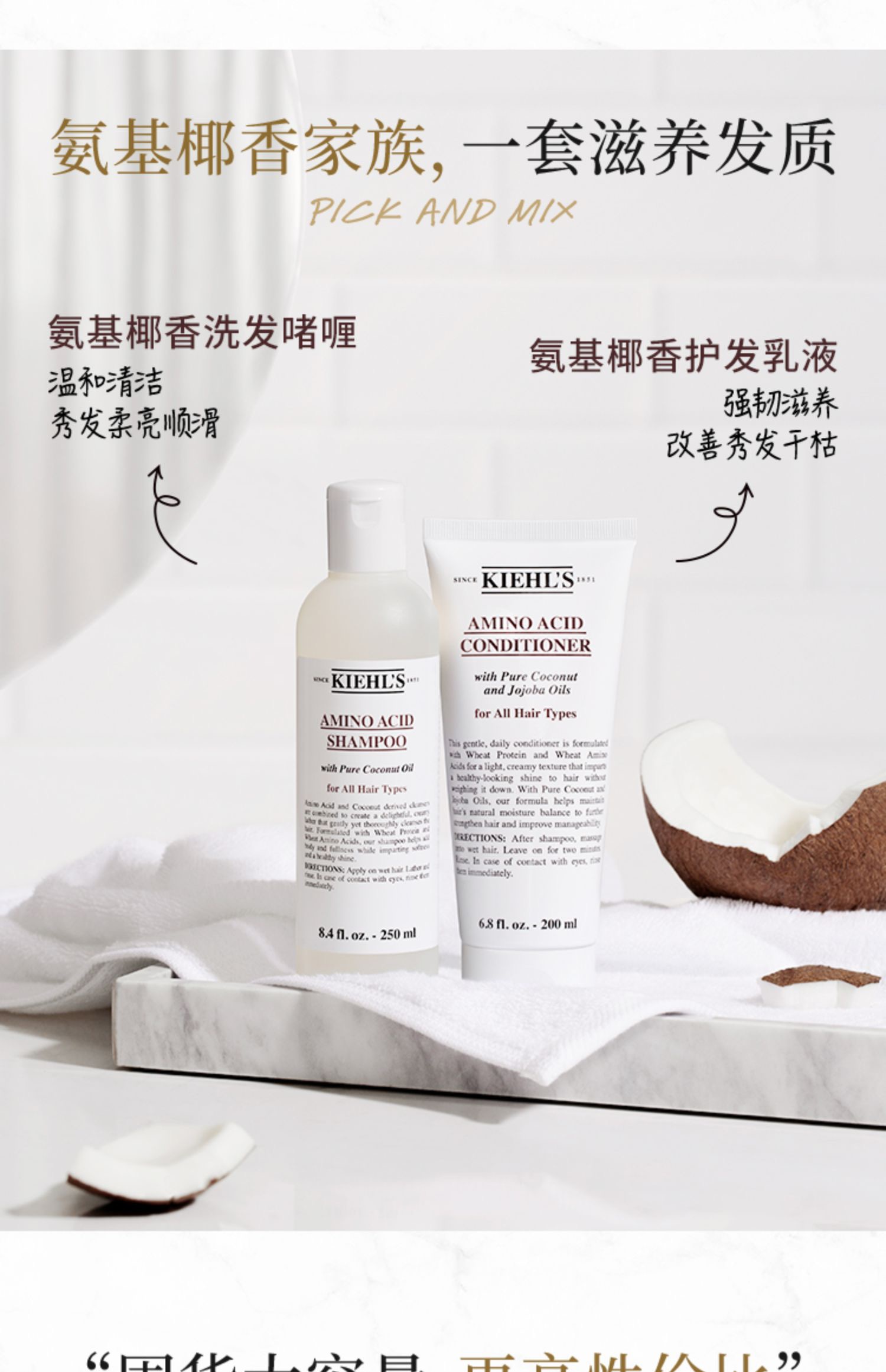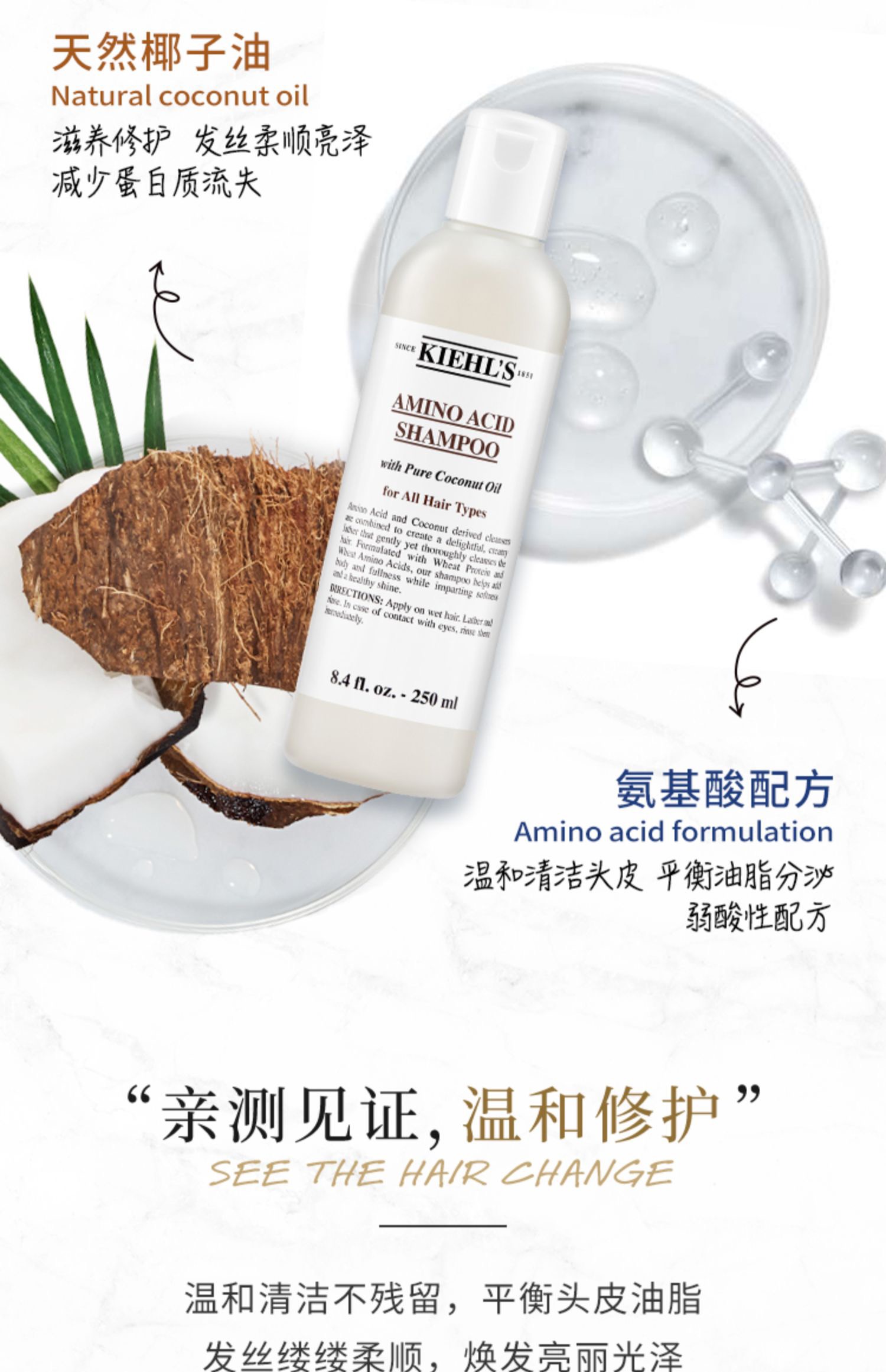 Kiehl's/科颜氏新氨基椰香洗发啫喱 蓬松柔顺深层洁净洗发水500ml
